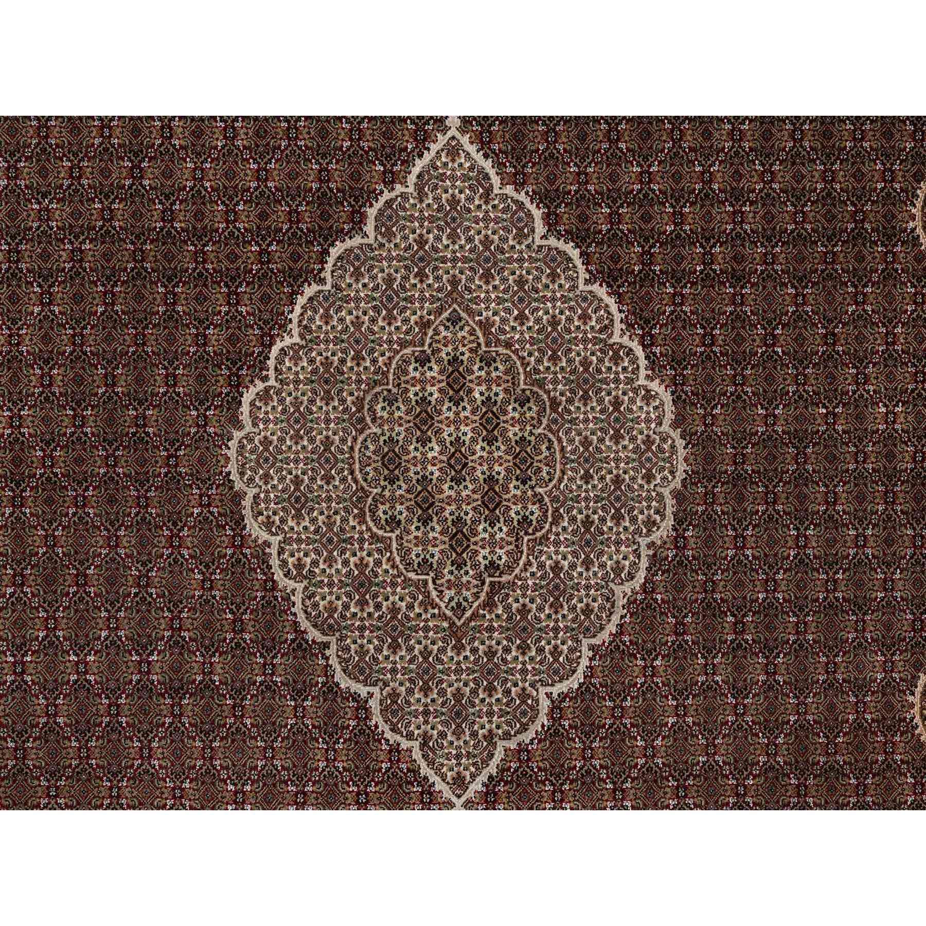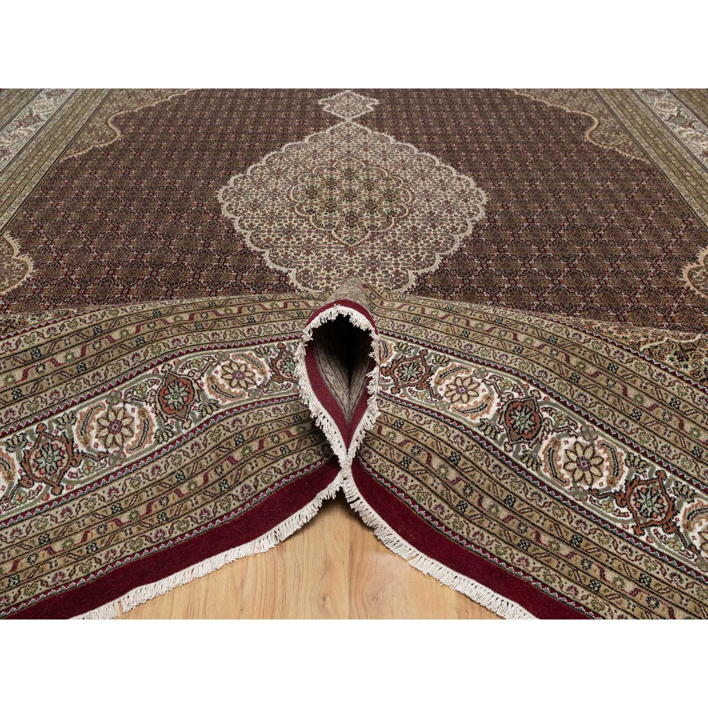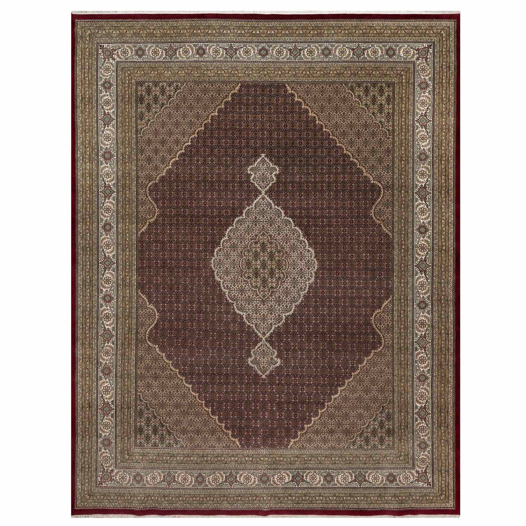 11'9"x15'1" Carmine Red, Tabriz Mahi With Fish Medallion Design, Soft Wool, Hand Knotted, Densely Woven, Oversized, Oriental Rug FWR546360