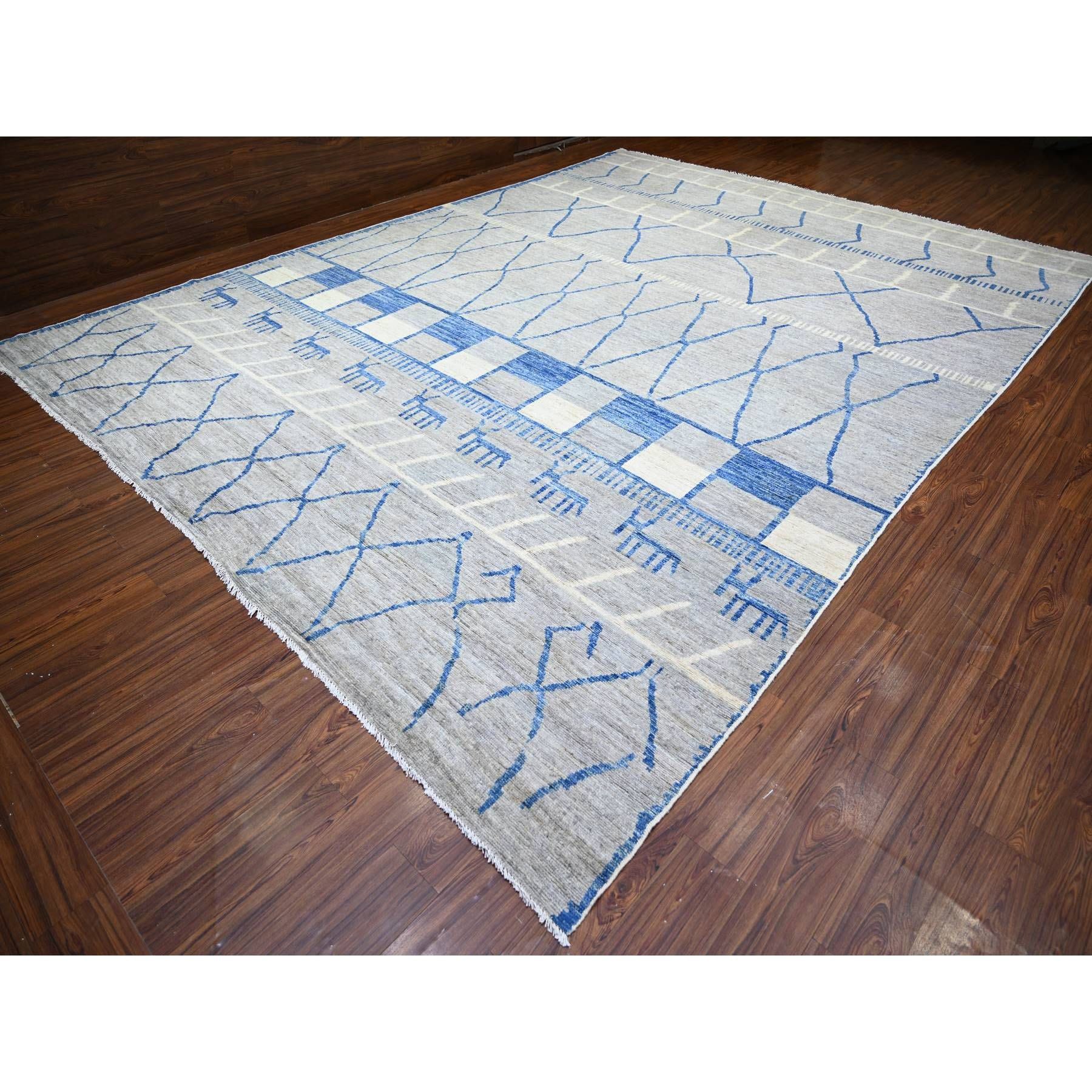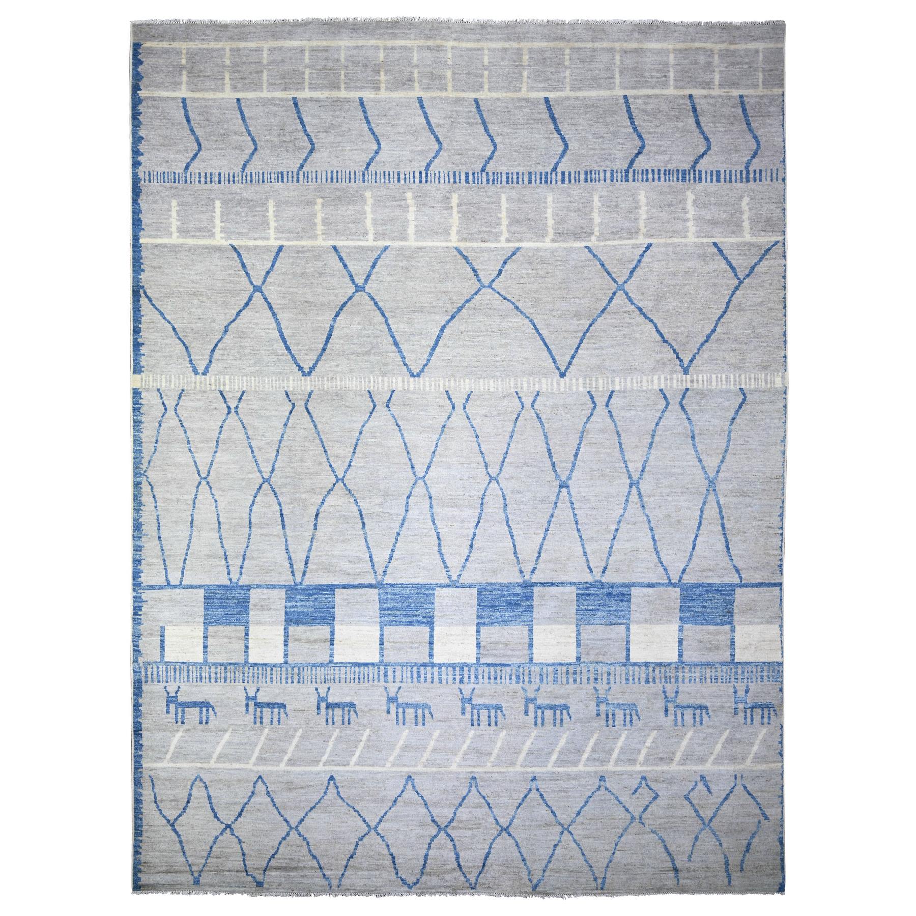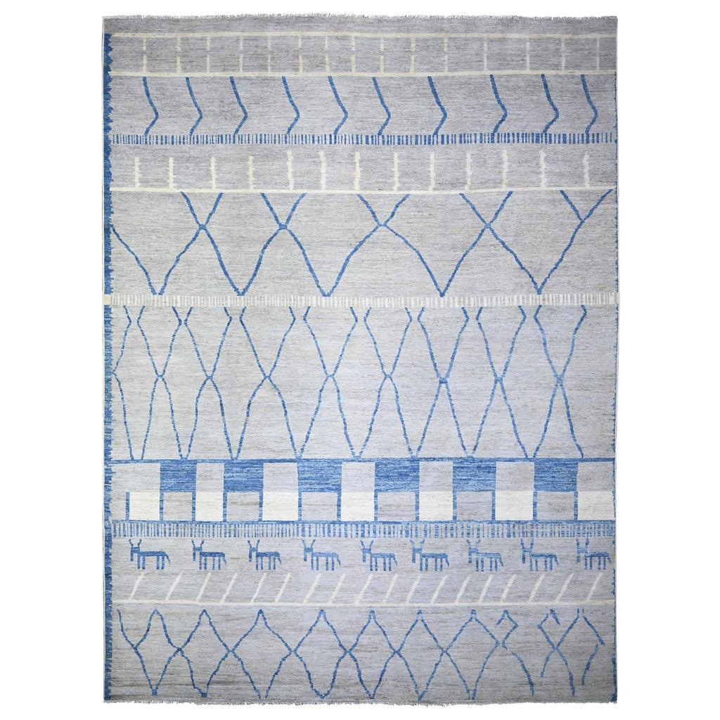 11'9"x15'7" Cloud Gray, Pure Wool Hand Knotted, Boujaad Moroccan Berber Design Vegetable Dyes, Oversized Oriental Rug FWR440946