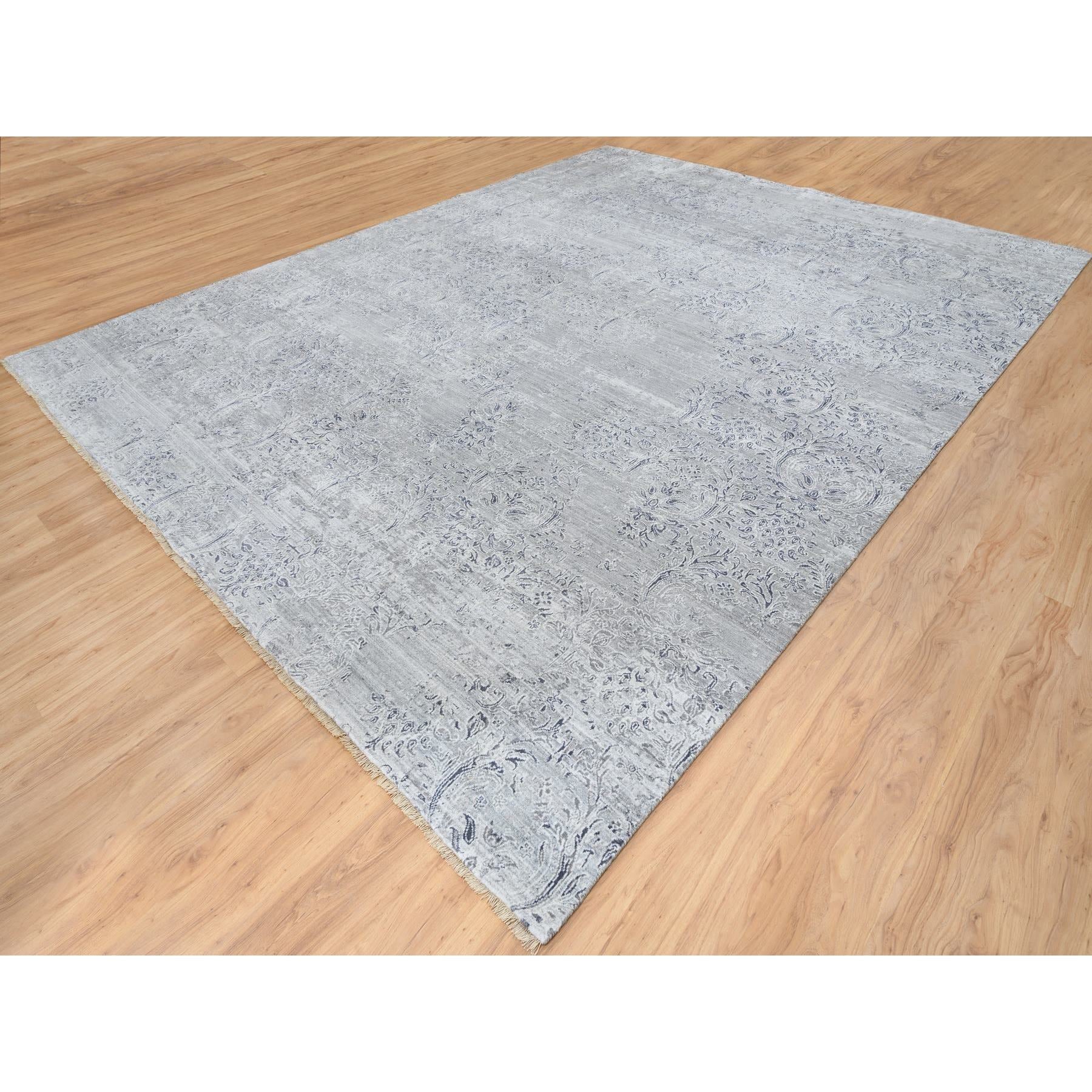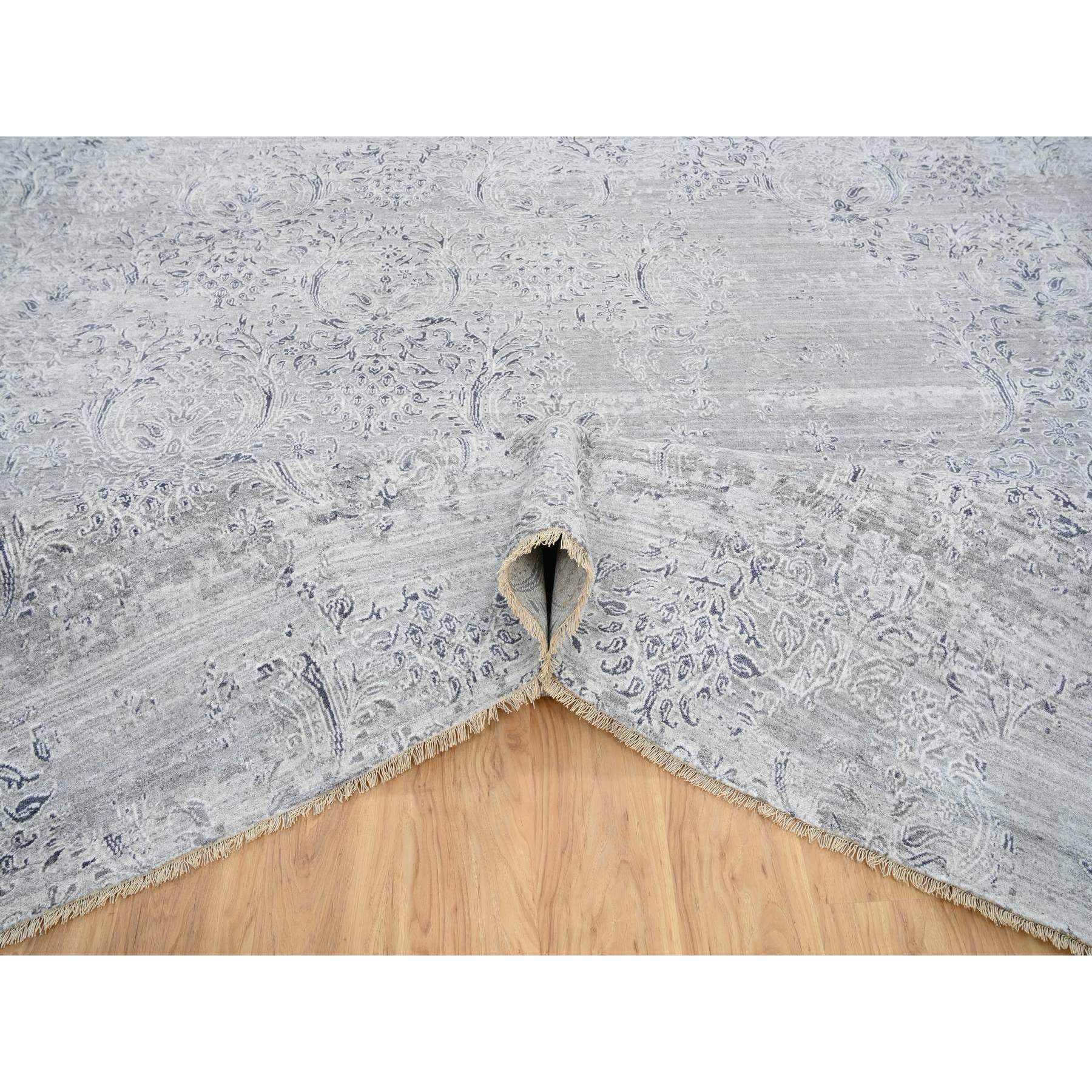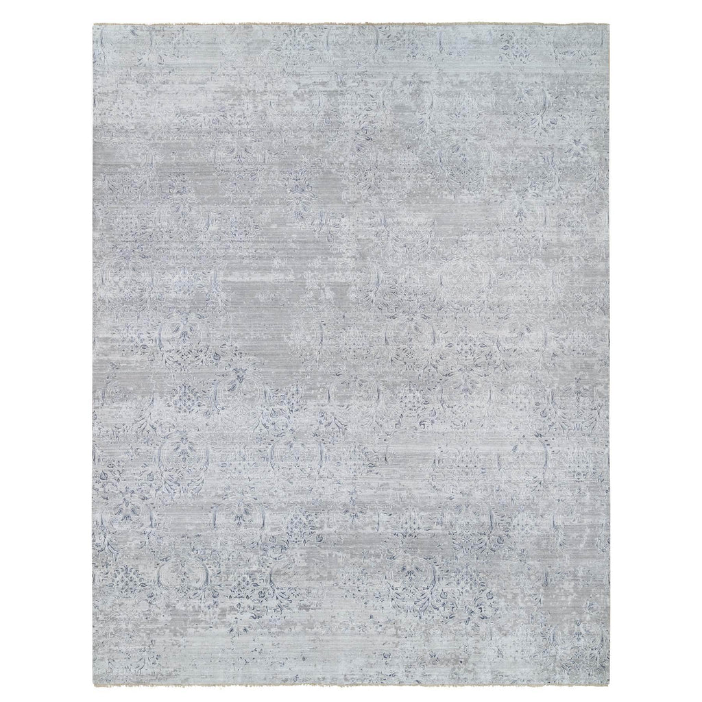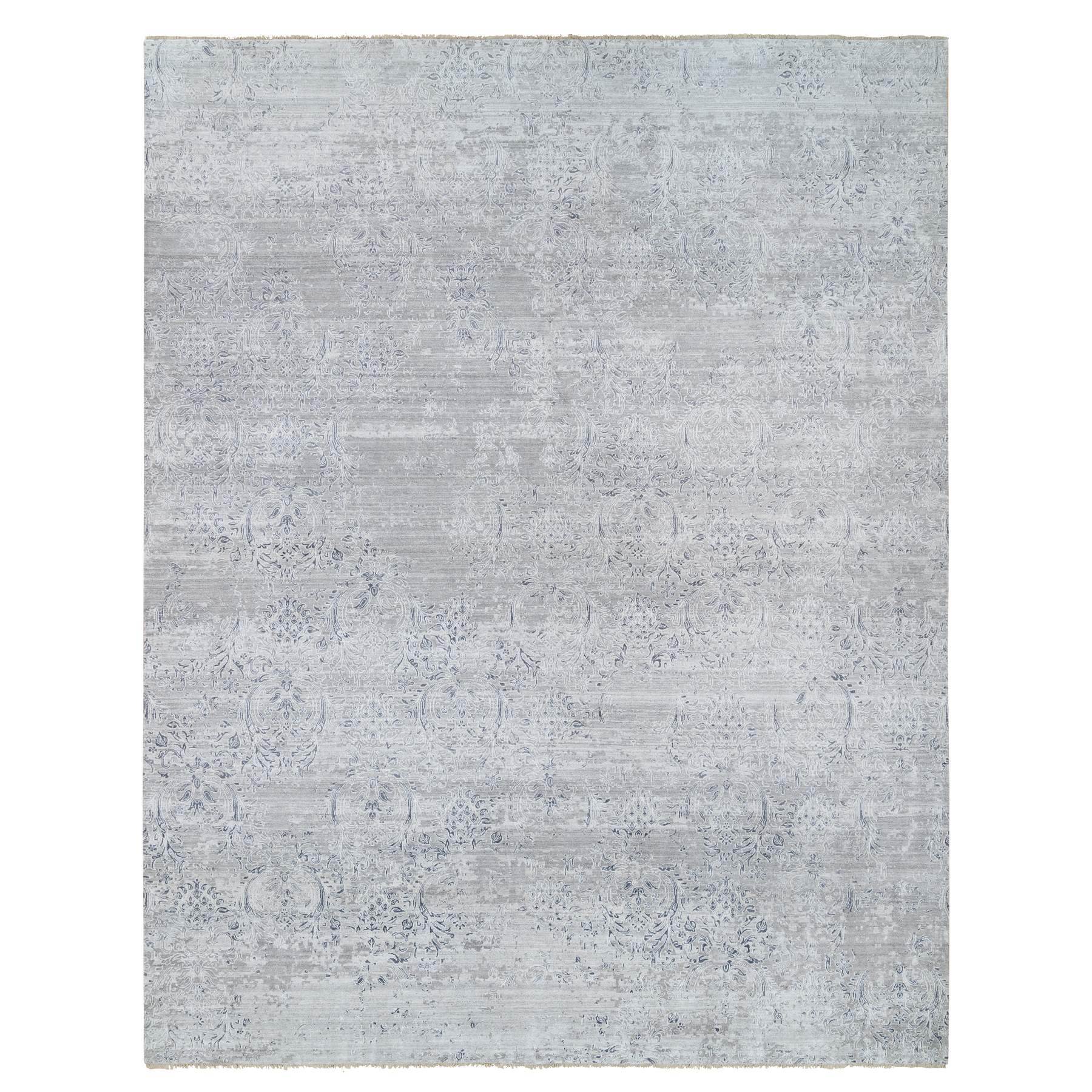 11'9"x15' Ivory, Hand Knotted Damask Design, Tone On Tone Wool And Plant Based Silk, Oversized Oriental Rug FWR390252