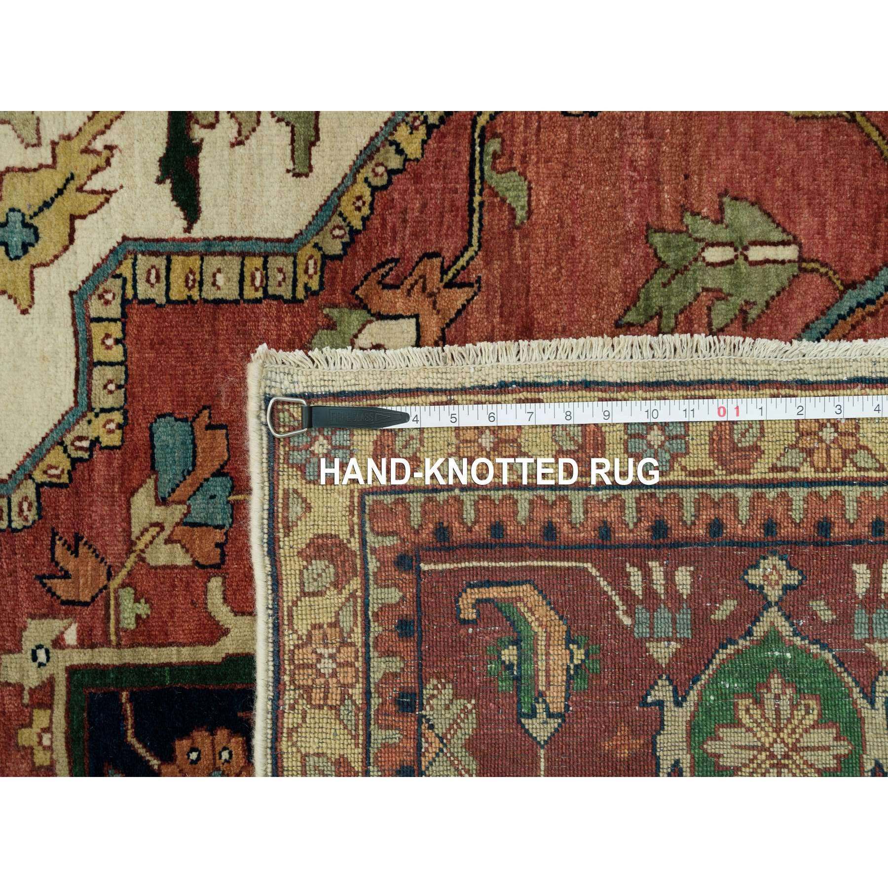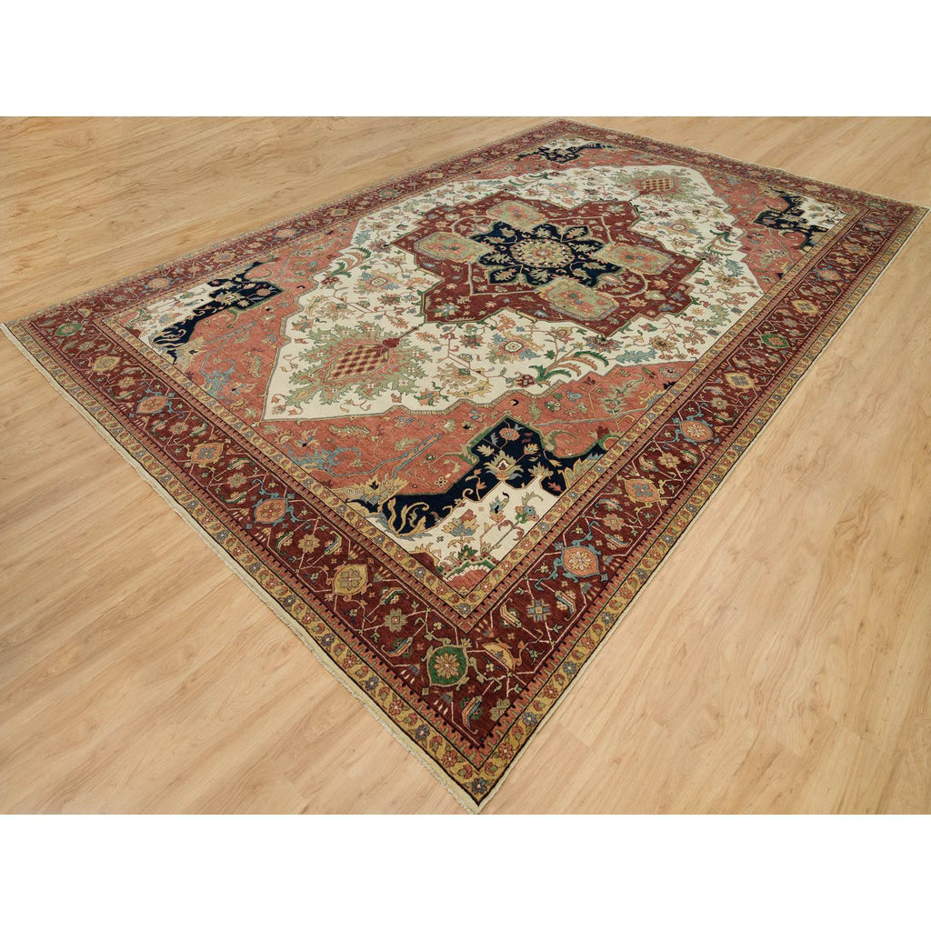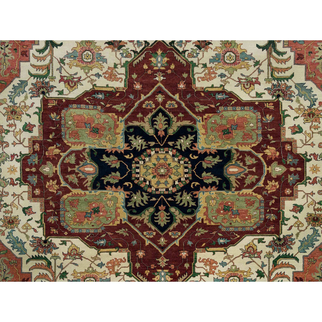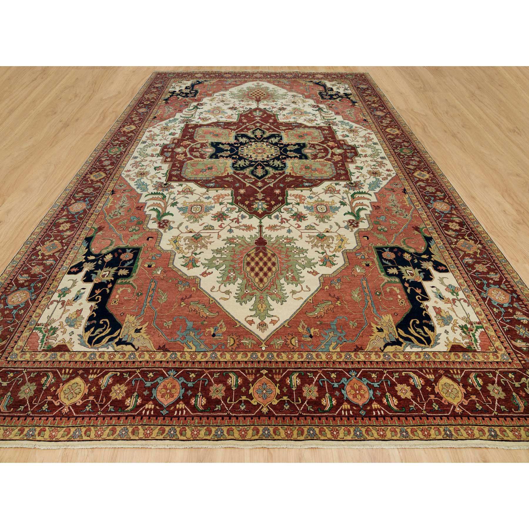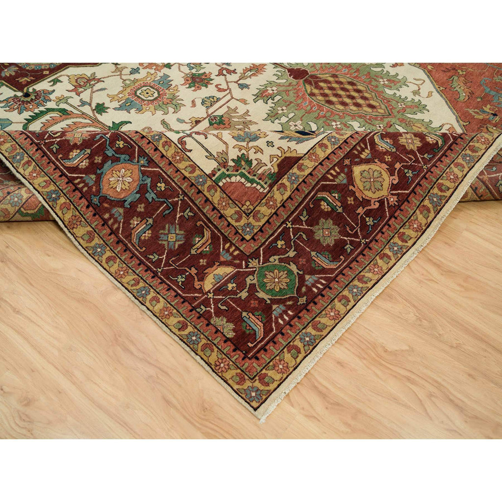 11'9"x18'2" Seedpearl White, Antiqued Fine Heriz, Re-creation Hand Knotted 100% Wool Large Medallion Design, Natural Dyes Densely Woven, Oversized Oriental Rug FWR541746