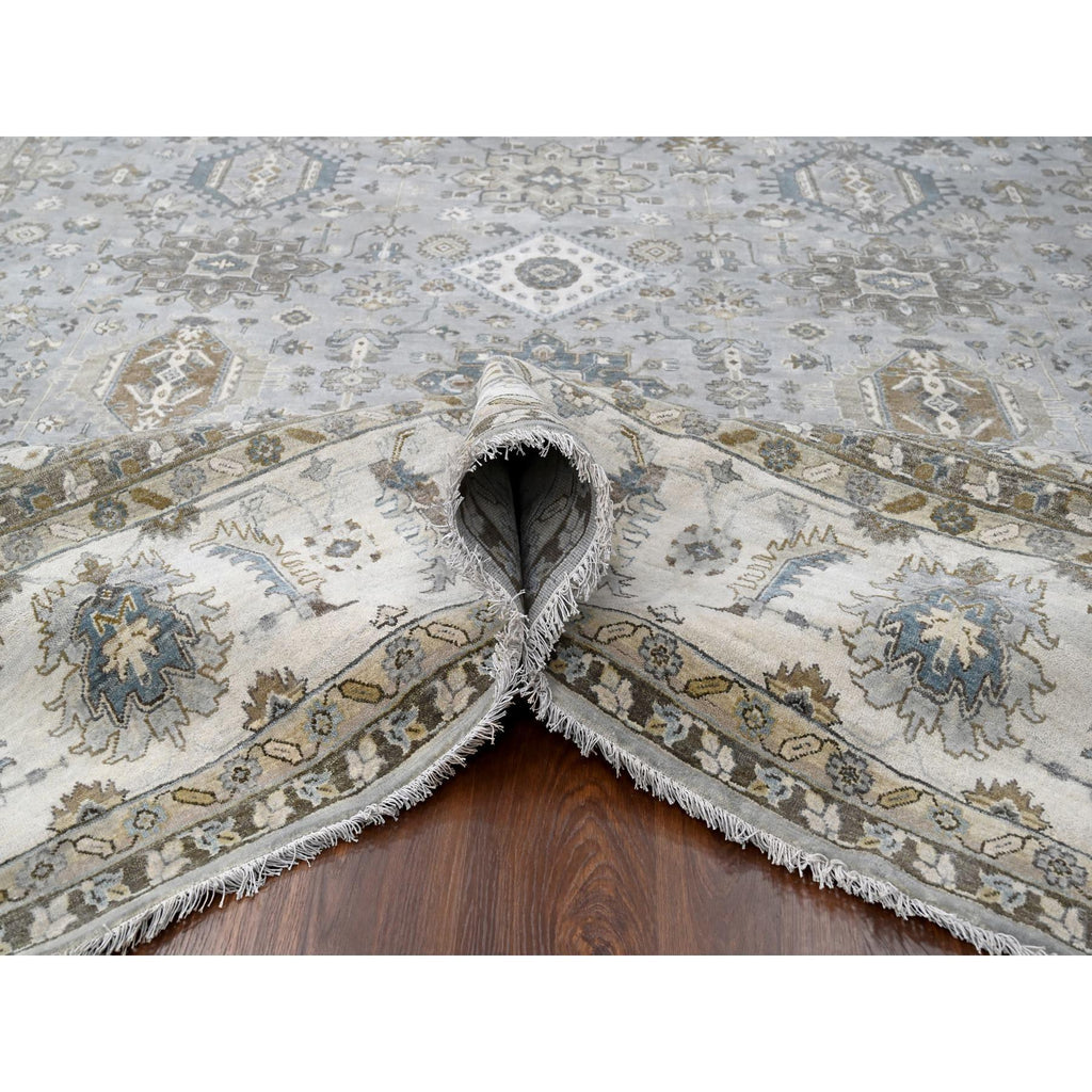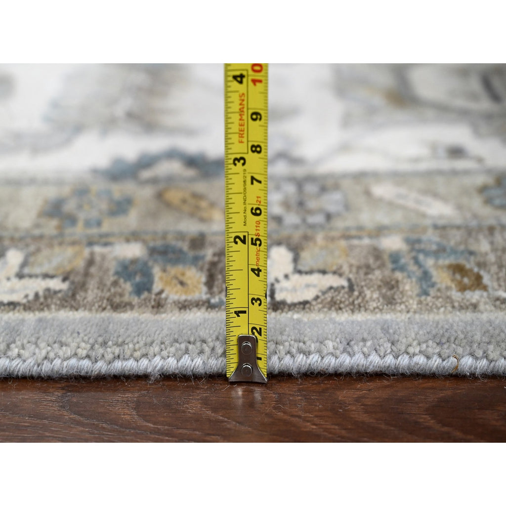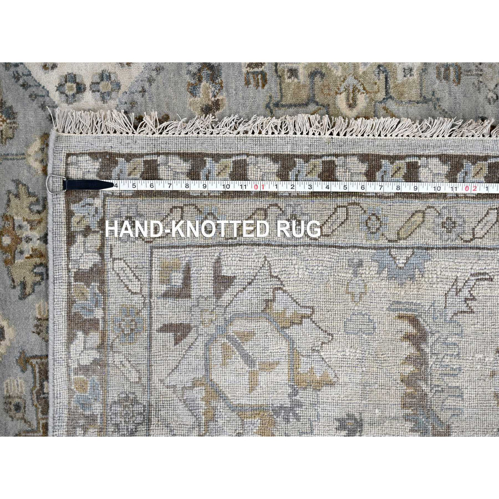 11'x11' Agreeable Gray And Delicate White, Karajeh With All Over Geometric Design, Hand Knotted, Squarish Oriental 100% Wool Rug FWR508788