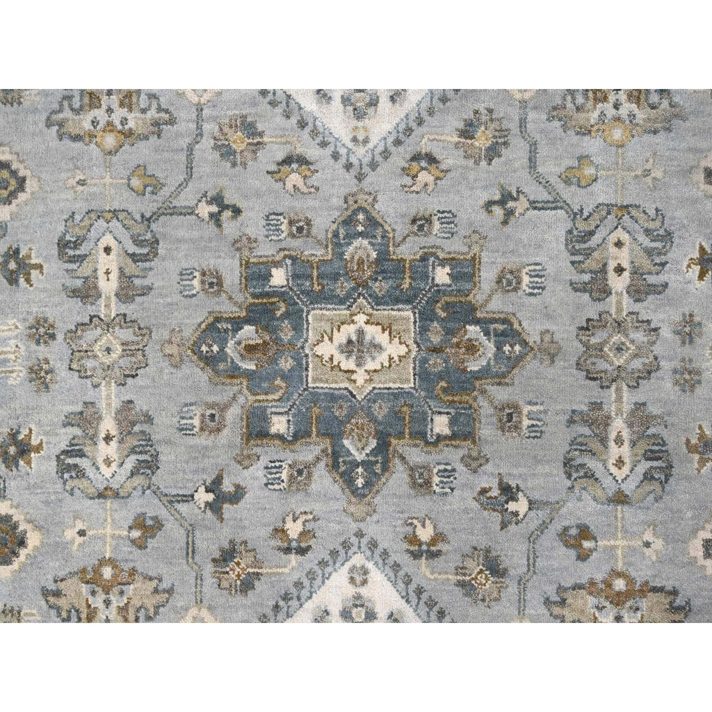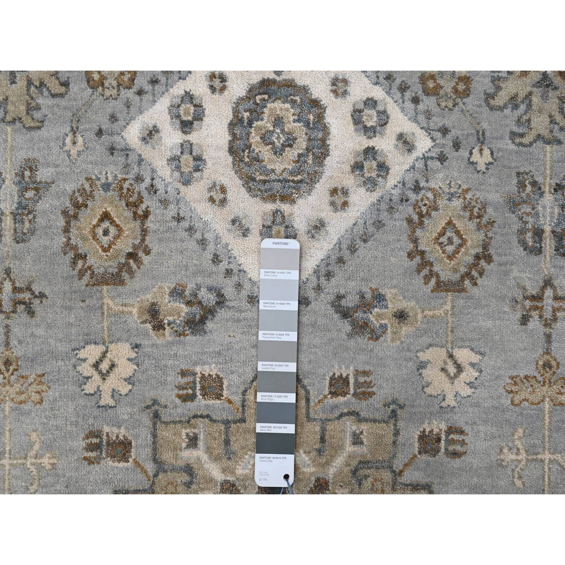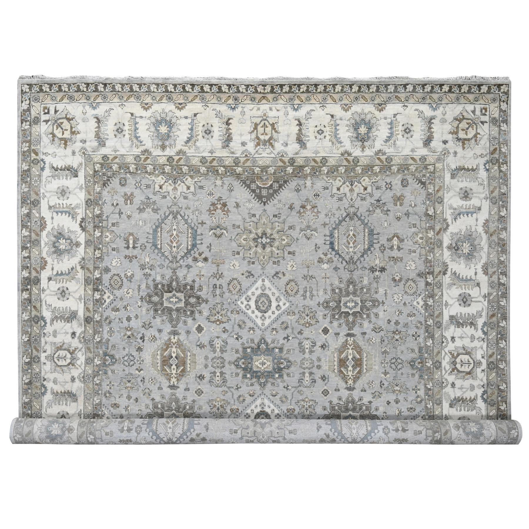 11'x11' Agreeable Gray And Delicate White, Karajeh With All Over Geometric Design, Hand Knotted, Squarish Oriental 100% Wool Rug FWR508788