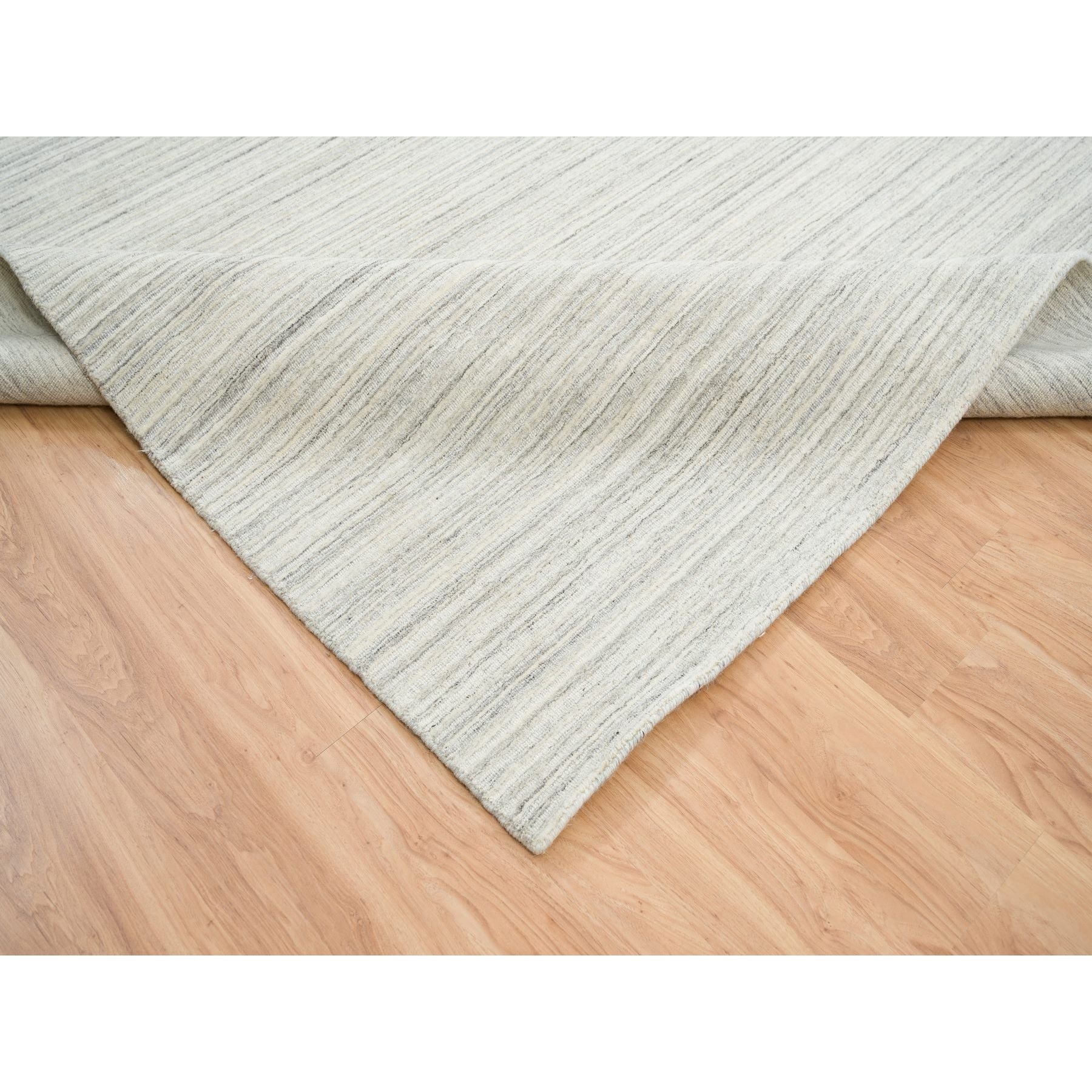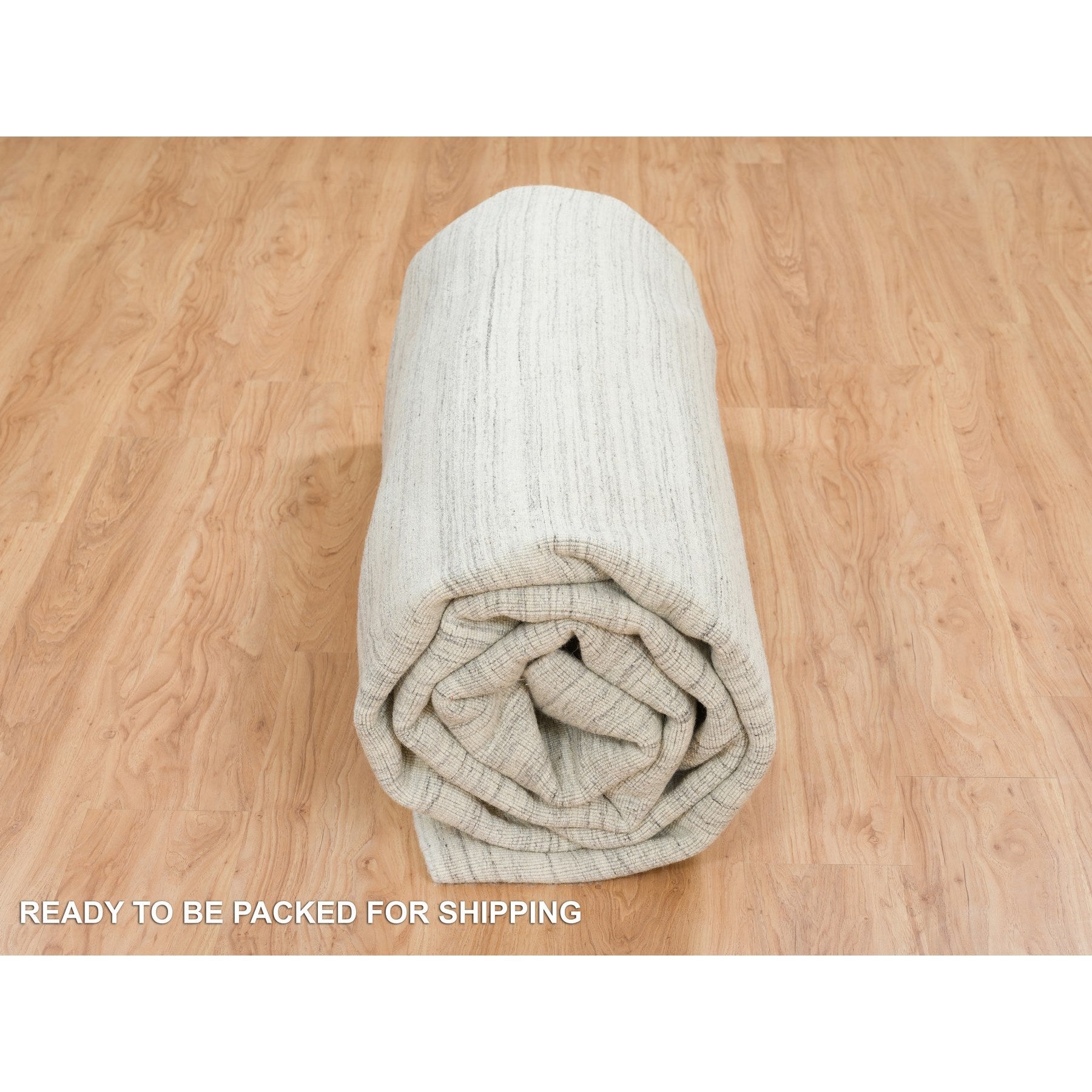 12'1"x12'1" Ivory And Cream, Undyed Natural Wool Modern Design, Thick And Plush Plain Hand Loomed, Square Oriental Rug FWR389964