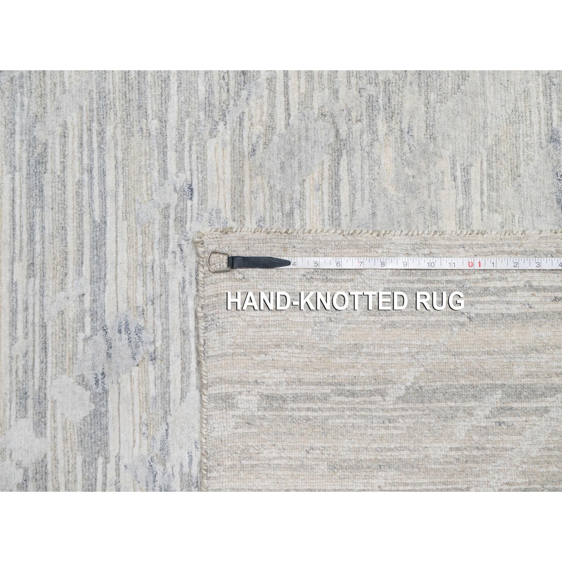 12'1"x12'1" Platinum Gray, Modern Design, Hand Spun, Undyed Natural Wool, Cut And Loop Pile, Hand Knotted, Square, Oriental Rug FWR545100