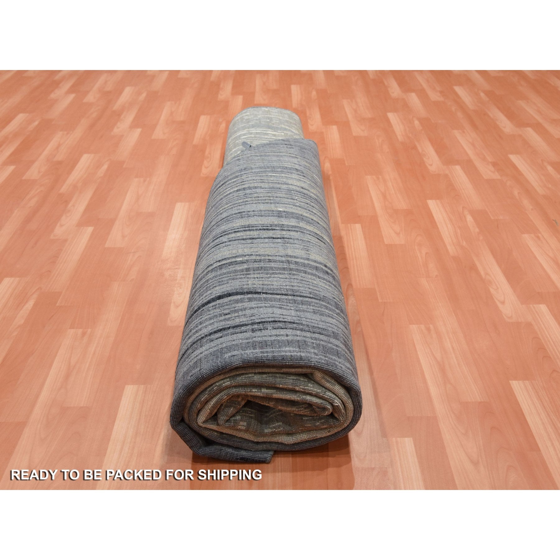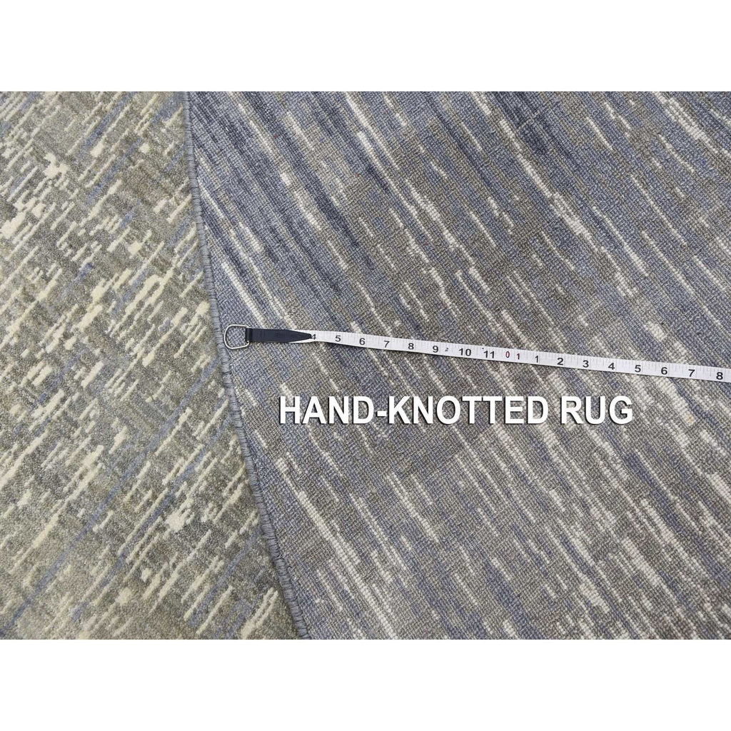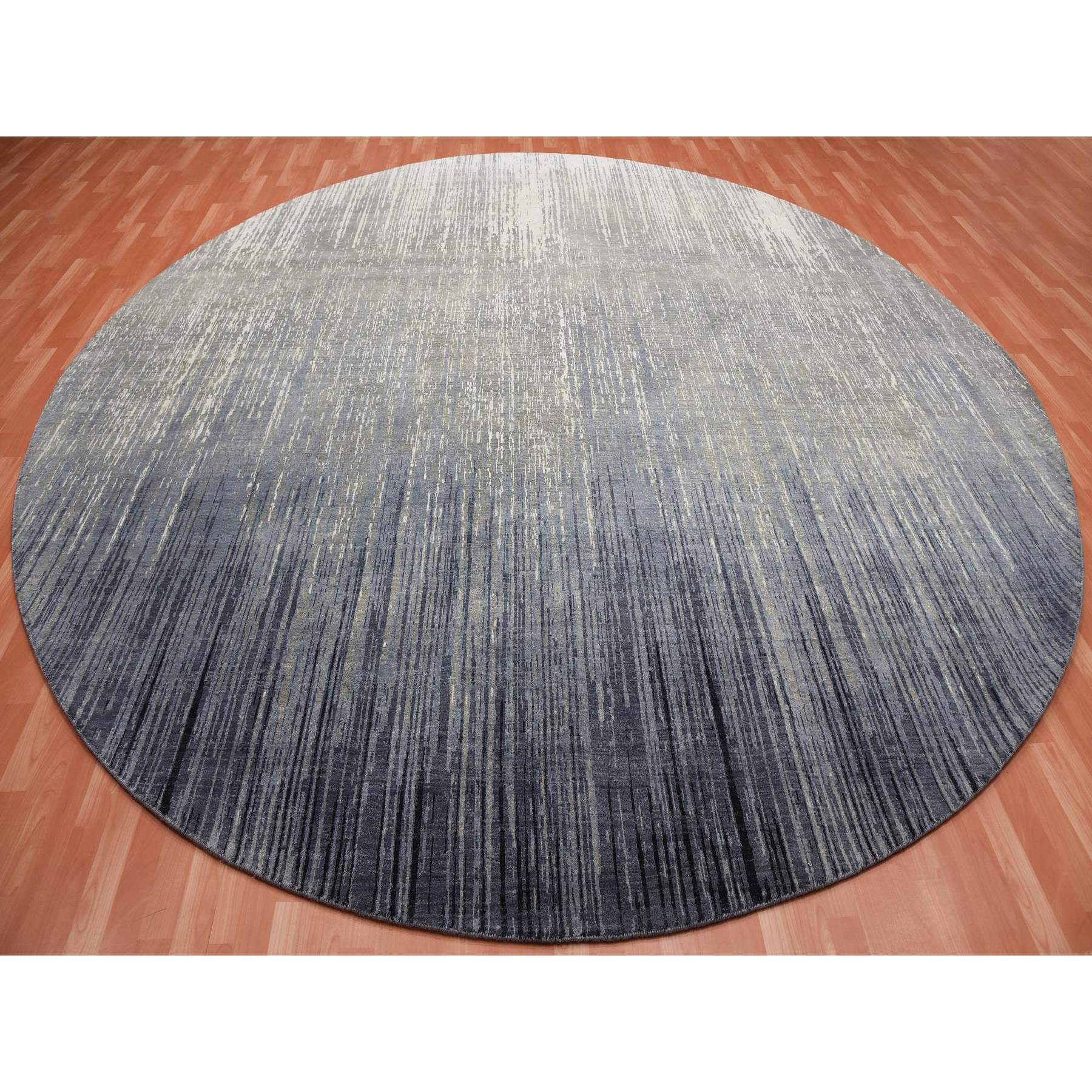12'1"x12'2" Gray And Black Hand Knotted Modern Ombre Design Densely Woven Pure Wool Round Oriental Rug FWR450714