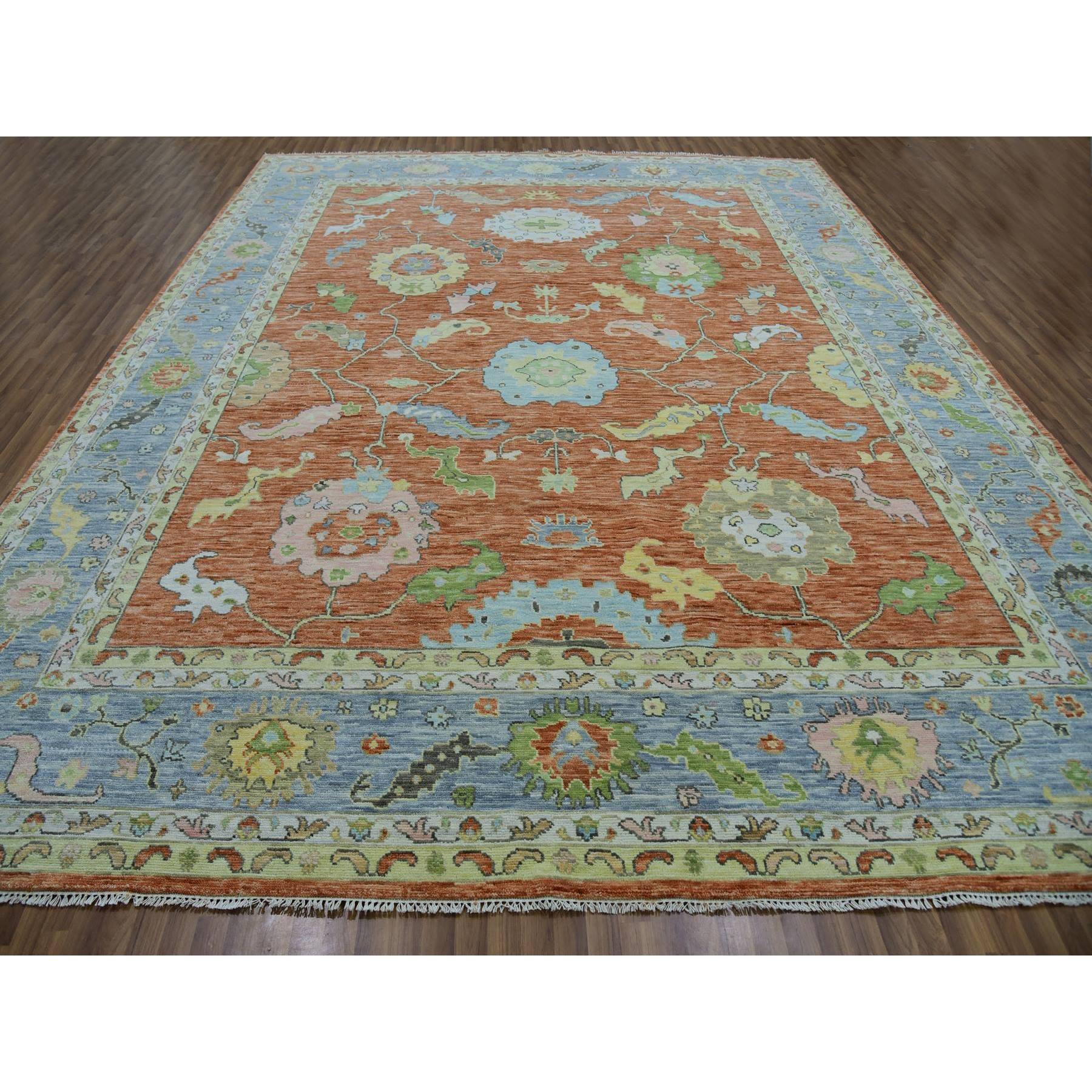 12'1"x14'7" Rustic Red, Colorful Oushak Weave, All Over Pattern With Large Elements, 100% Wool, Hand Knotted, Oversized, Oriental Rug FWR479406