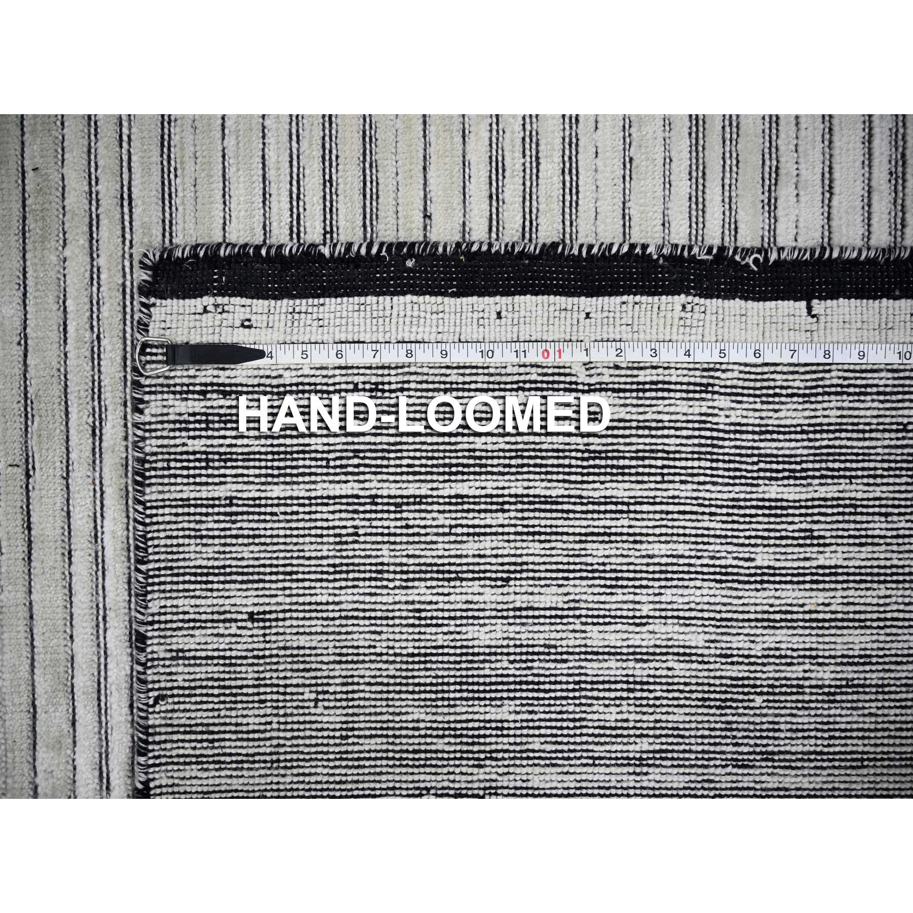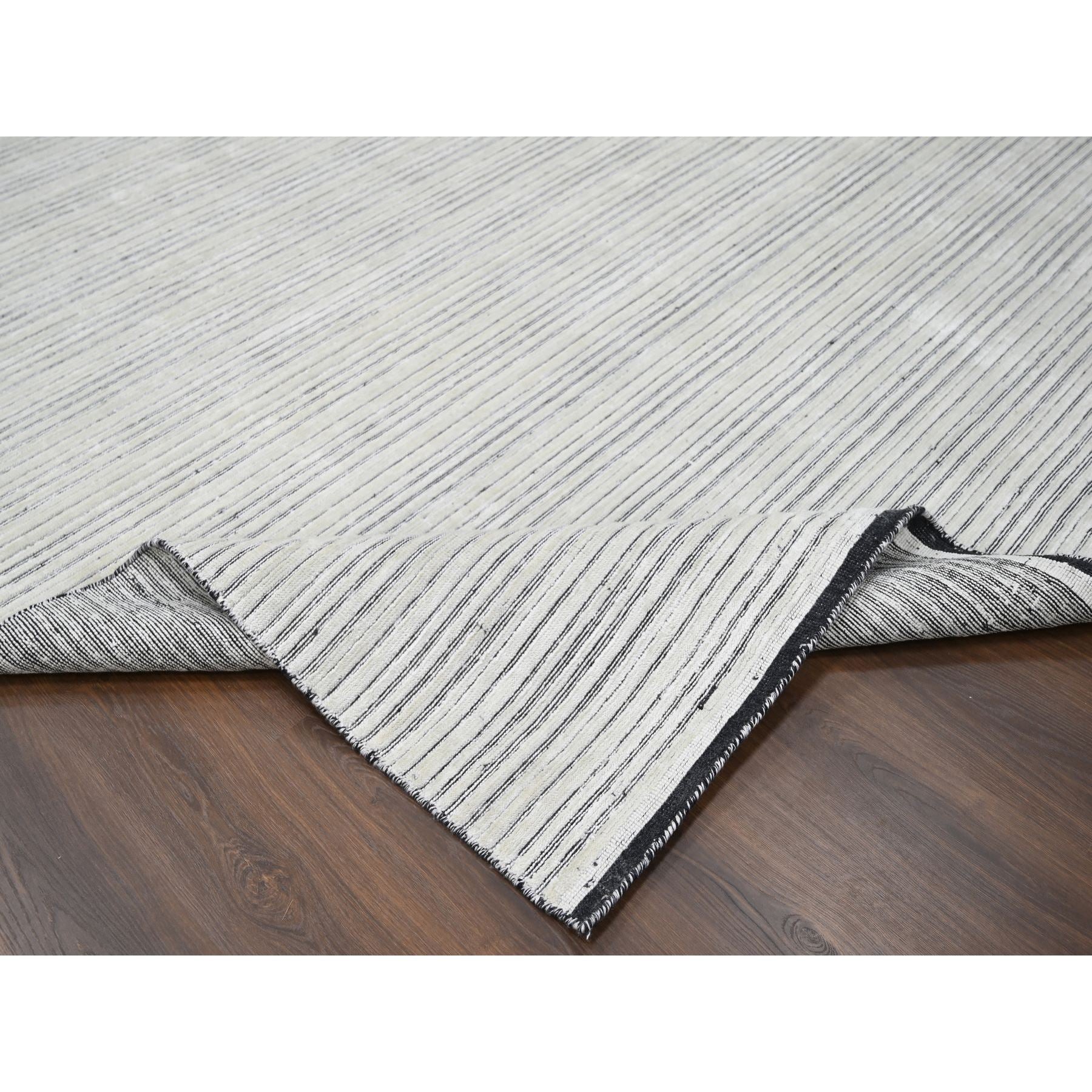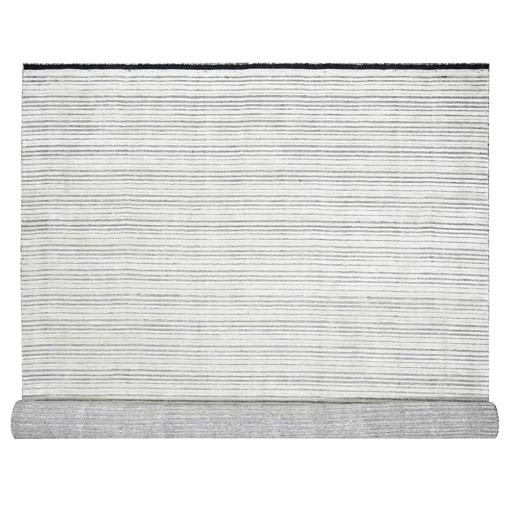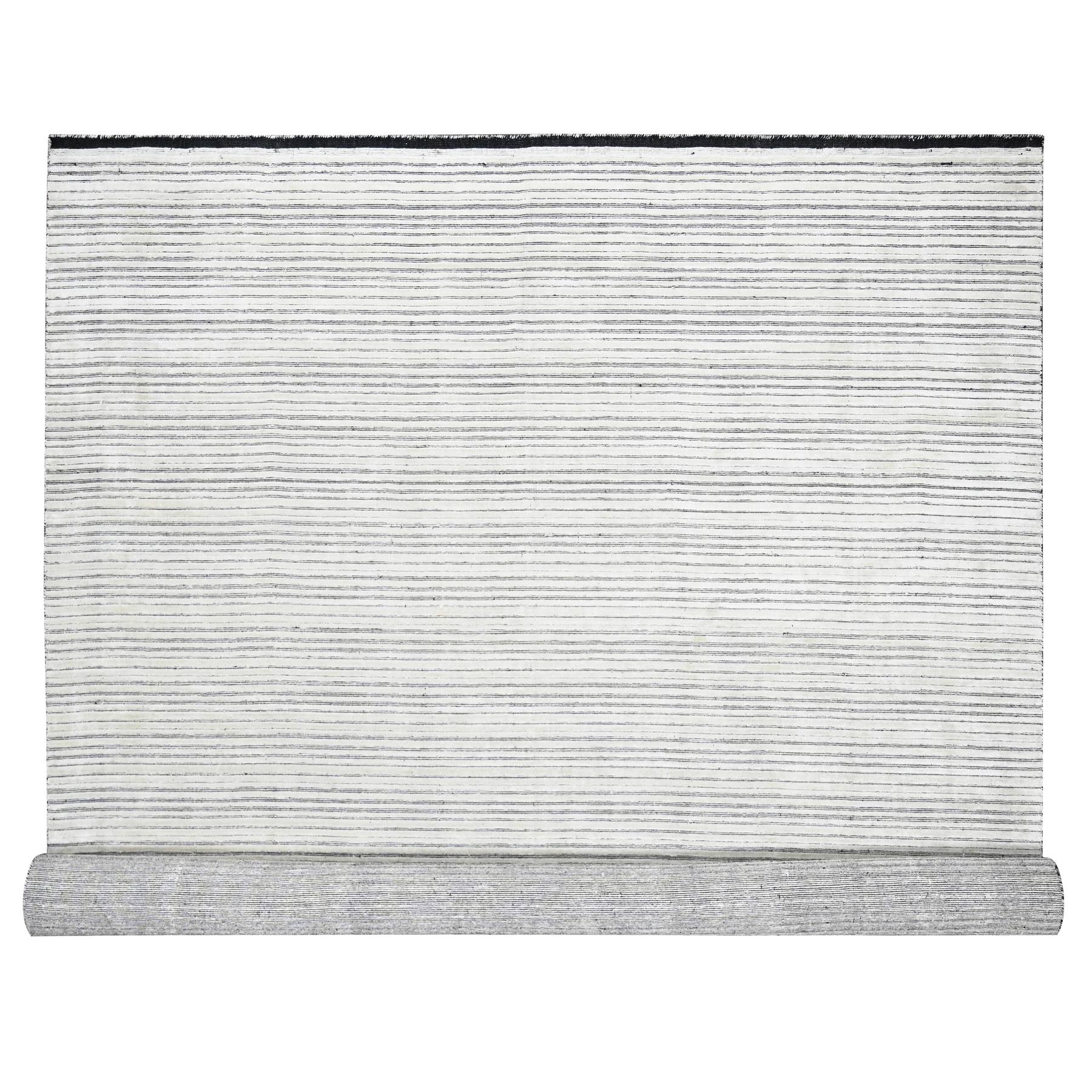 12'1"x15'1" Black And Ivory, Modern Textured And Variegated Line Design, Wool And Plant Based Silk, Hand Loomed, Oversized Oriental Rug FWR505008