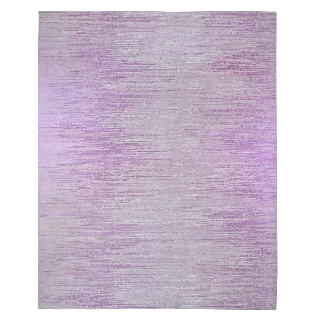 12'1"x15'2" Oversized Pink Thick And Plush Organic Wool Horizontal Ombre Design Hand Knotted Oriental Rug FWR398796