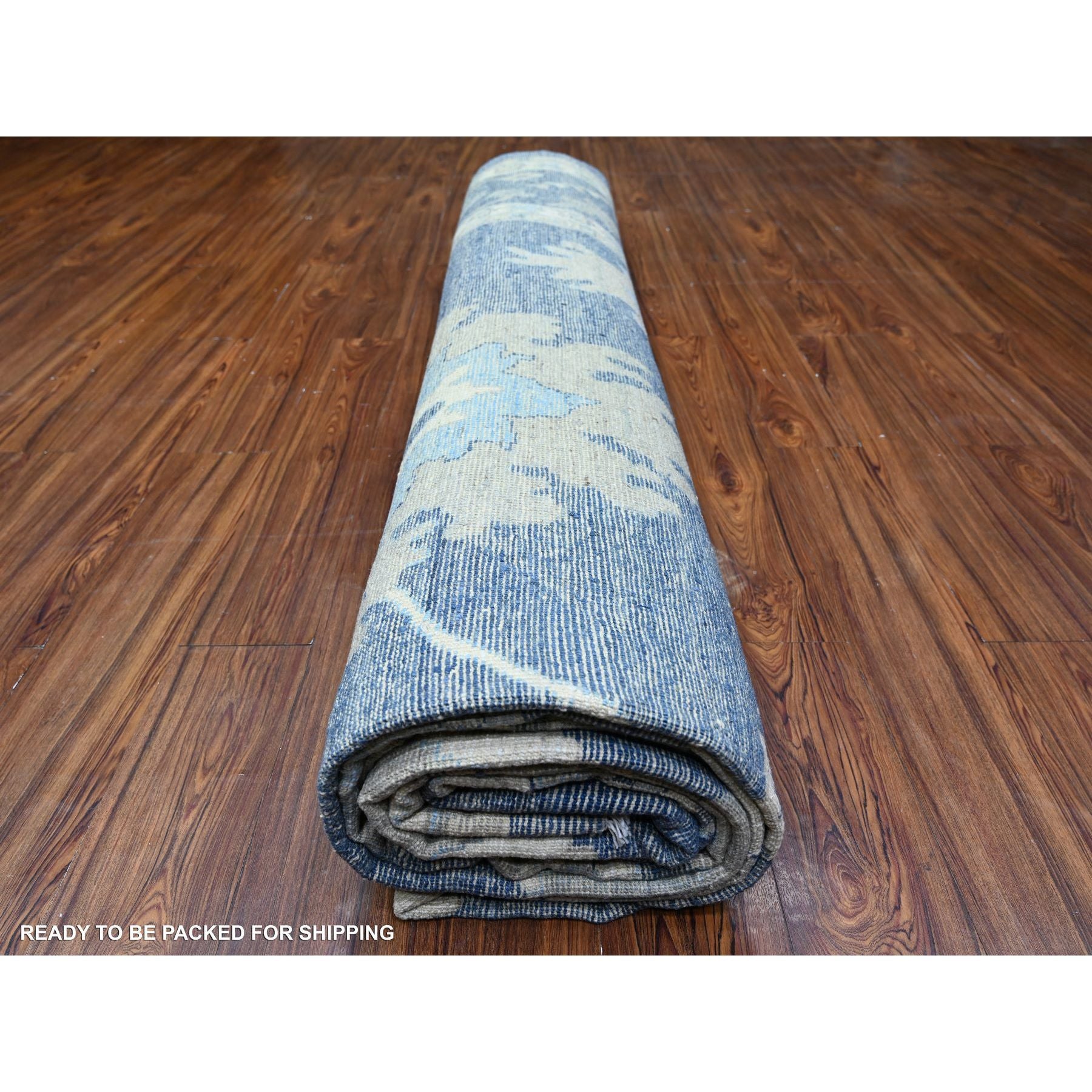 12'1"x15'7" Everton Blue, Hand Knotted, Afghan Angora Oushak With All Over Motifs, Pure Wool, Oversized Oriental Rug FWR449994