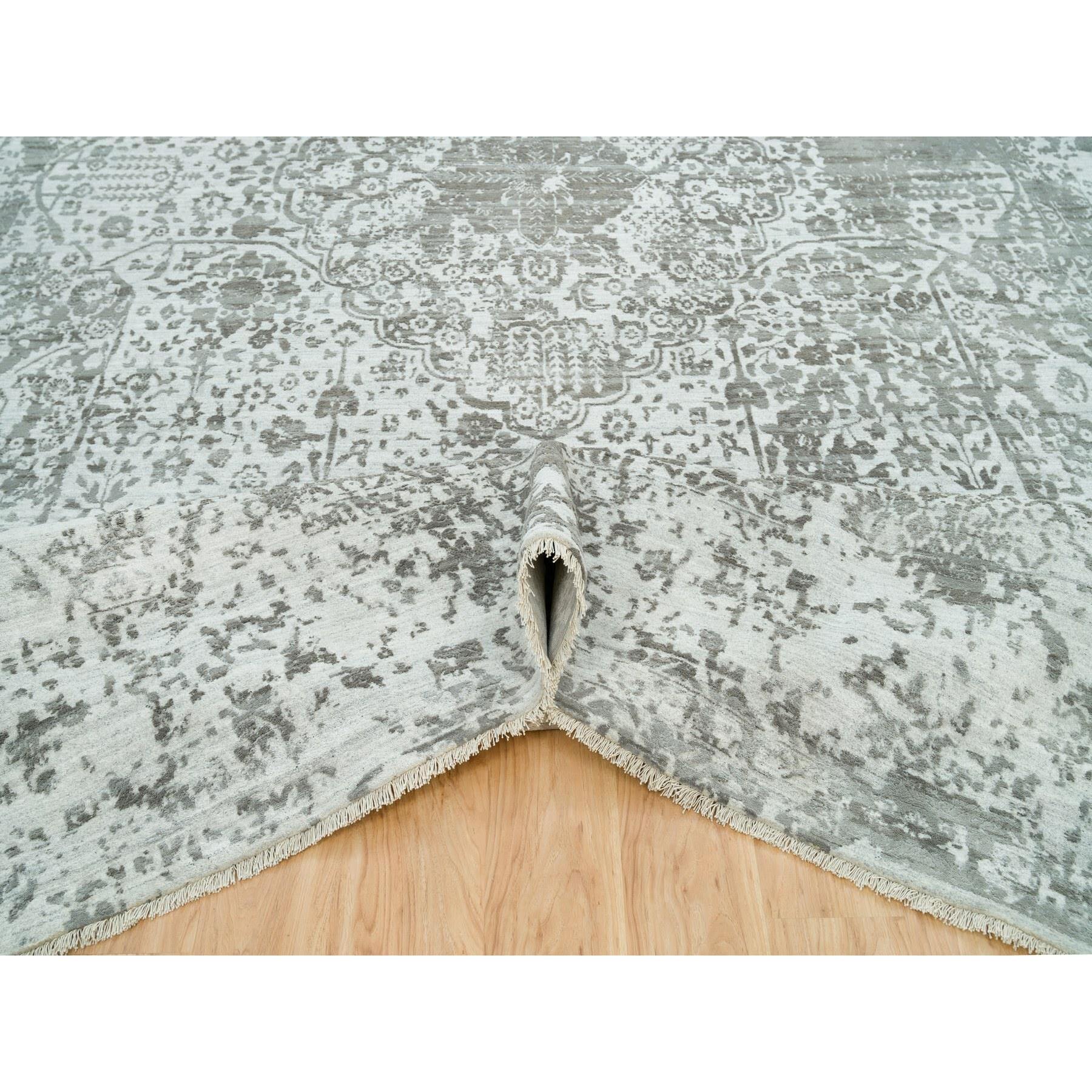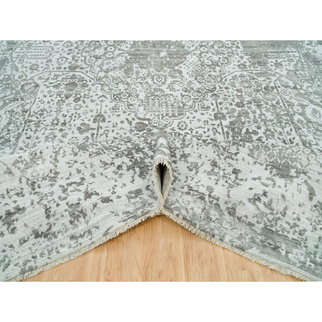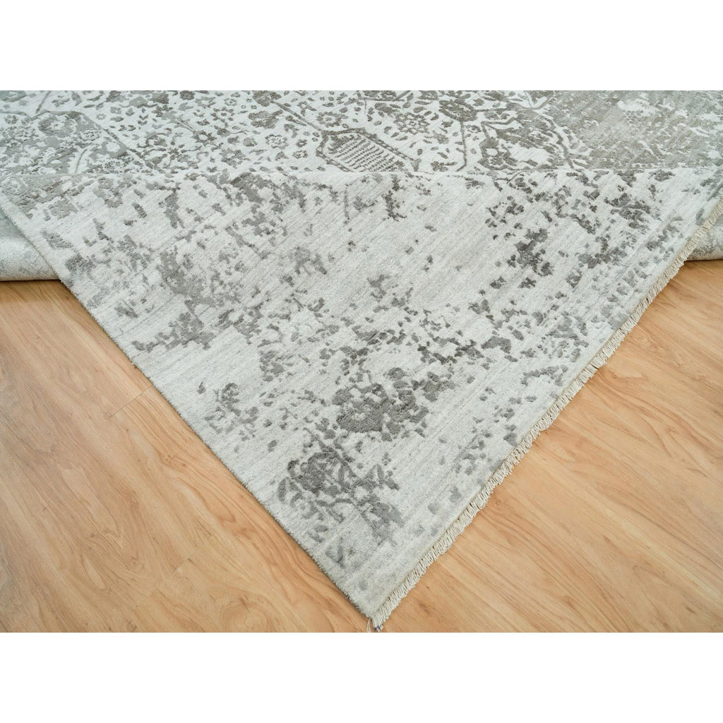 12'1"x17'10" Chrome With Battleship Gray, Broken Persian Design, Hand Knotted, Wool And Silk, Oversized Oriental Rug FWR395250