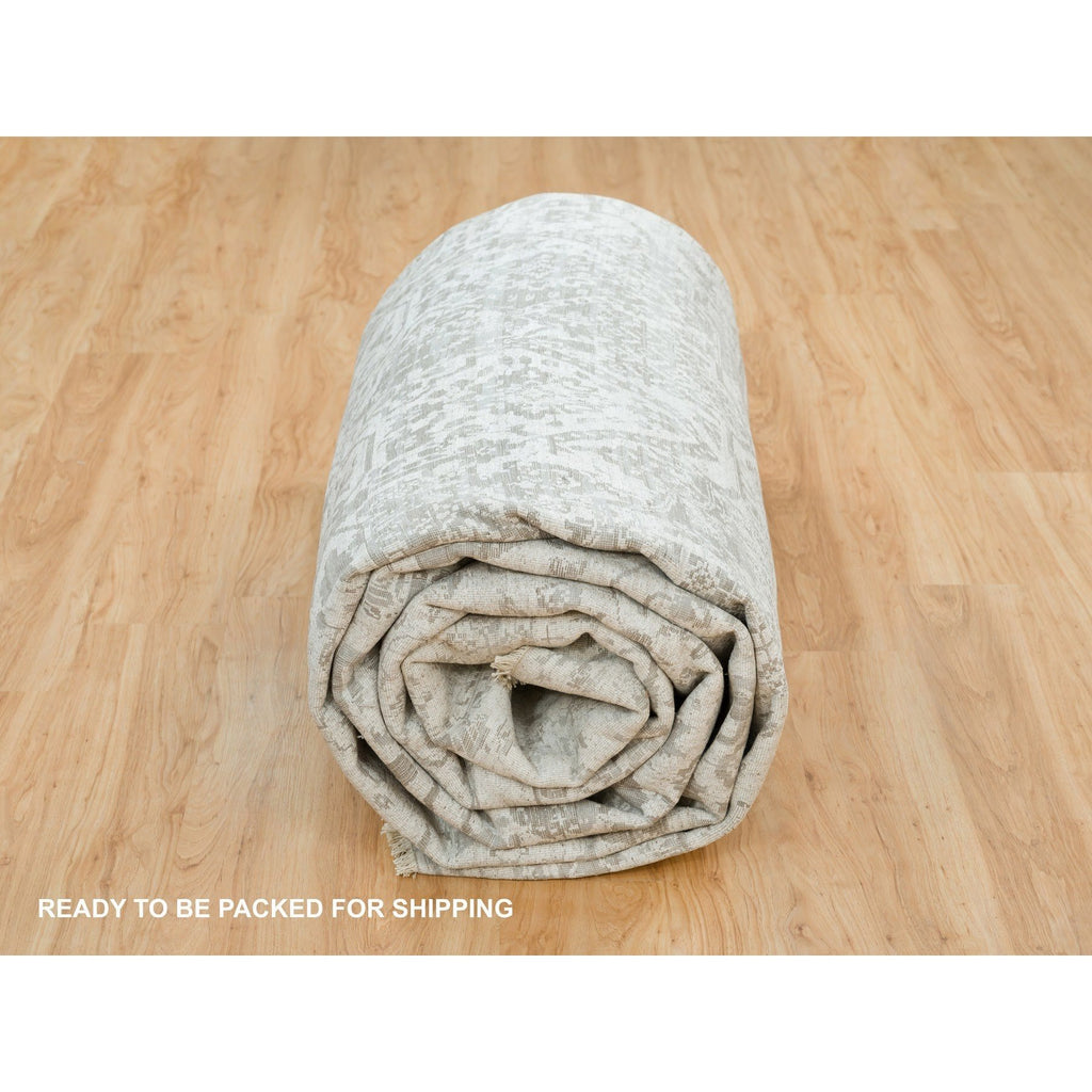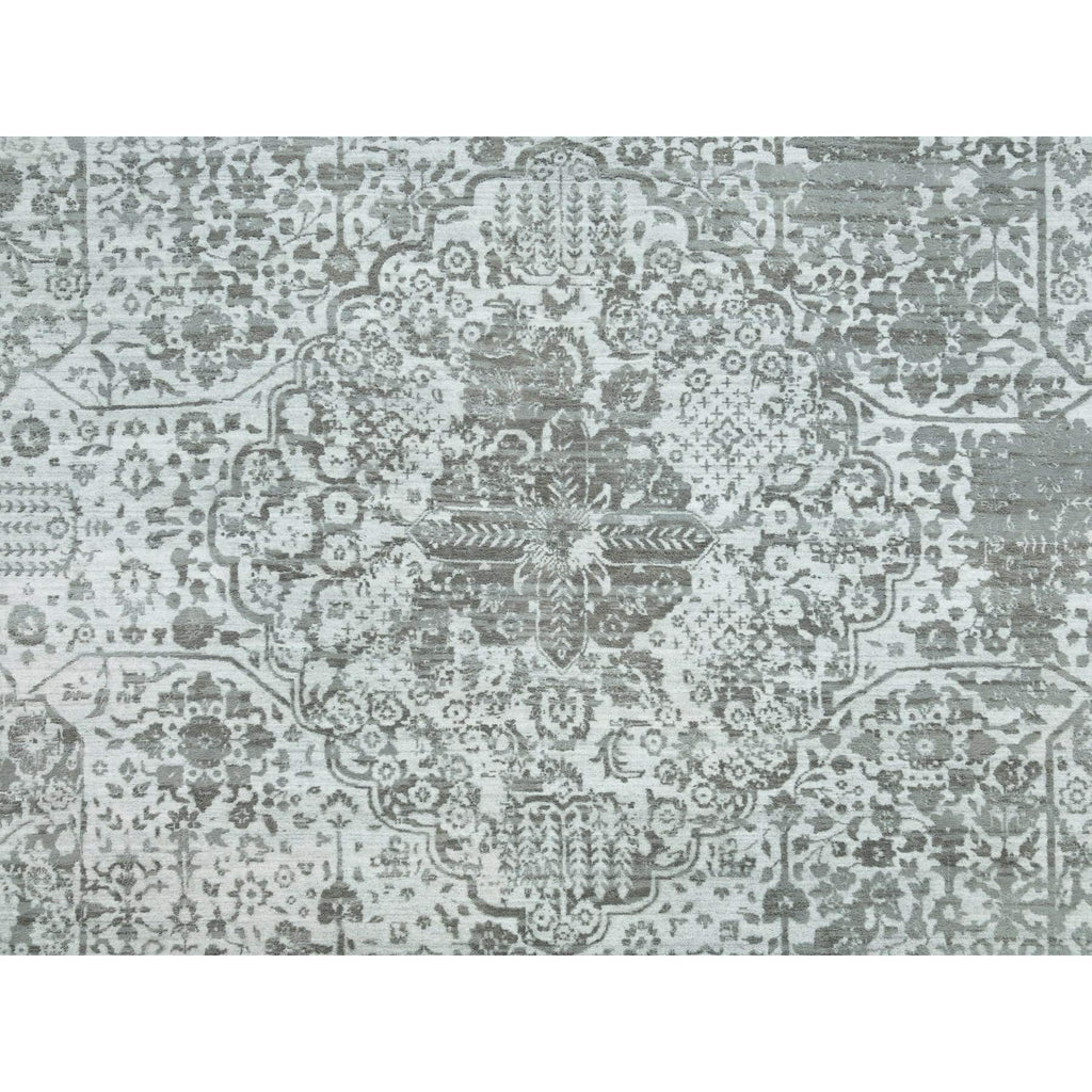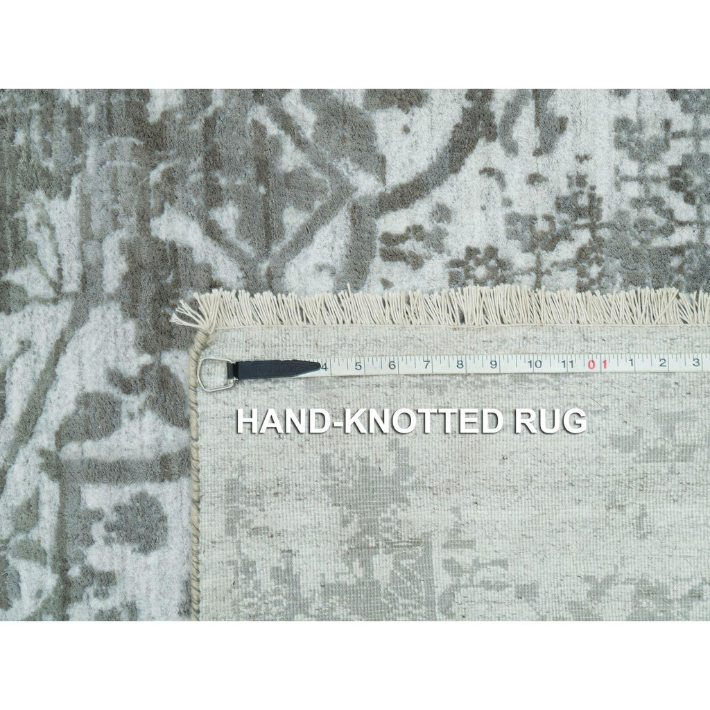 12'1"x17'10" Chrome With Battleship Gray, Broken Persian Design, Hand Knotted, Wool And Silk, Oversized Oriental Rug FWR395250