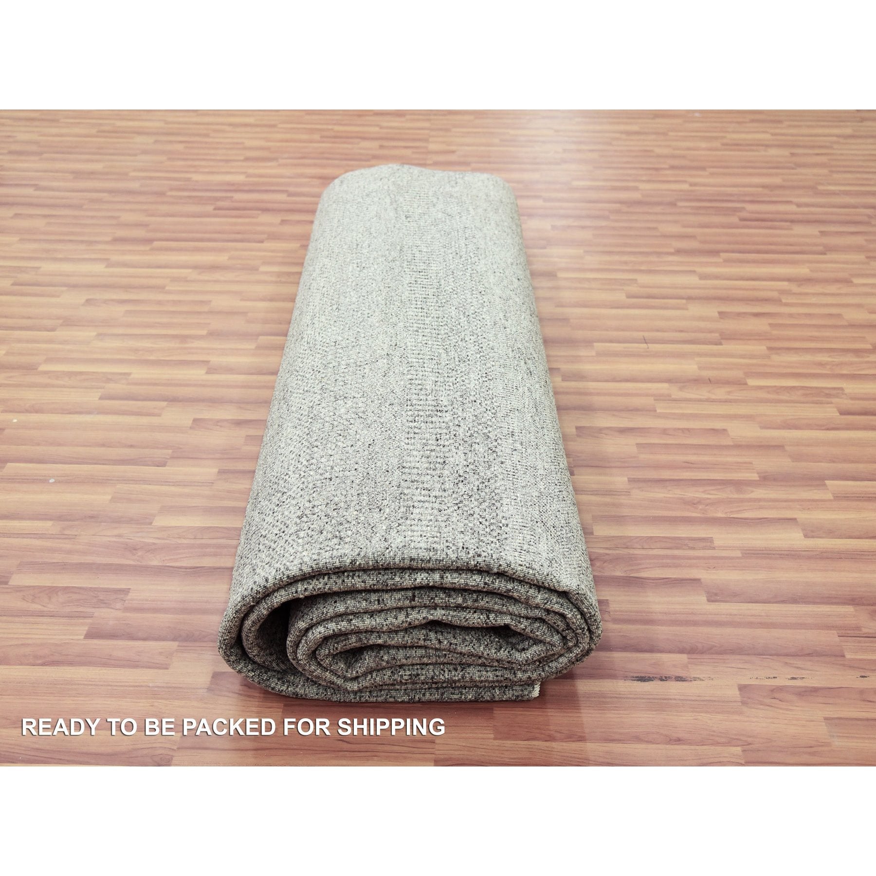 12'1"x18'2" Medium Gray, Modern Grass Design, Natural Undyed Wool, Hand Knotted, Oversized Oriental Rug FWR476700