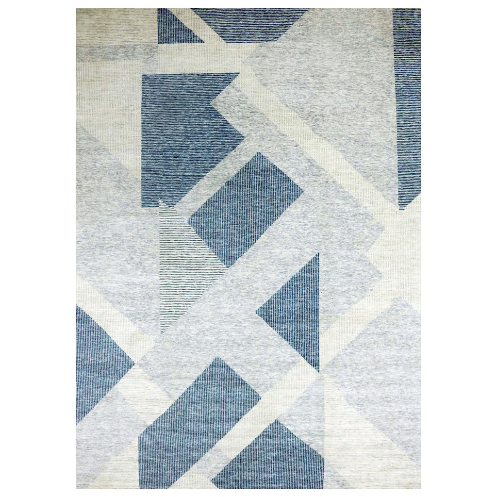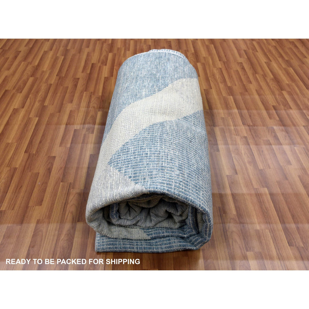 12'1"x18'4" Stone Blue, Geometric Art Deco Collection, Natural Wool Hand Knotted, Oversized Oriental Rug FWR476520