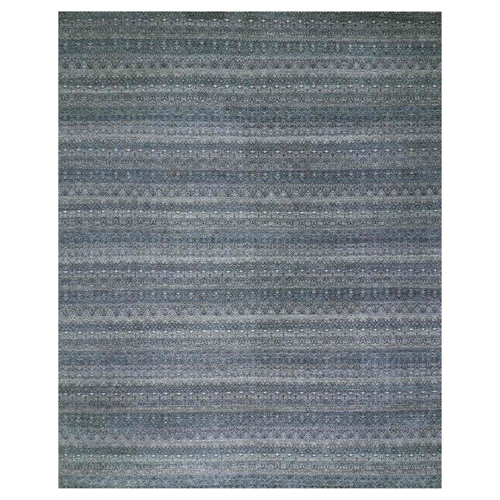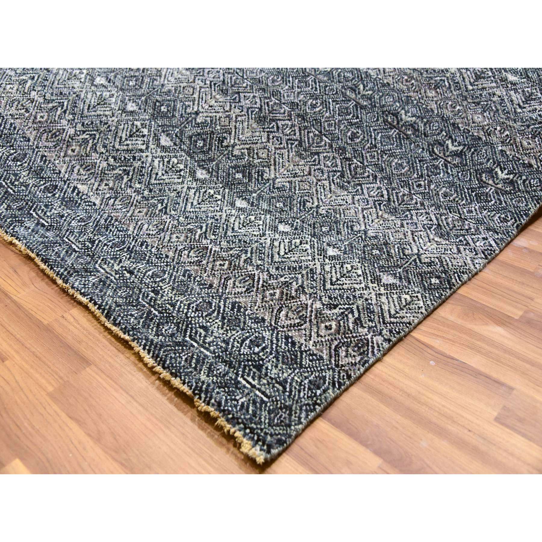 12'1x15'1" Network Gray, Soft And Shiny Wool, Soft To The Touch, Hand Knotted, Kohinoor Herat Pattern, Small Geometric Repetitive Diamond Design, Oriental Oversized Rug FWR478638