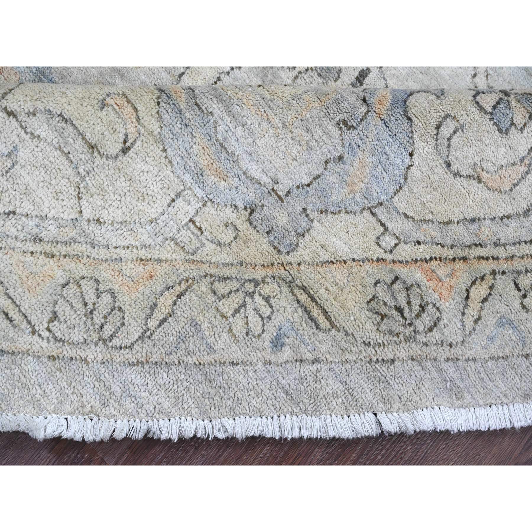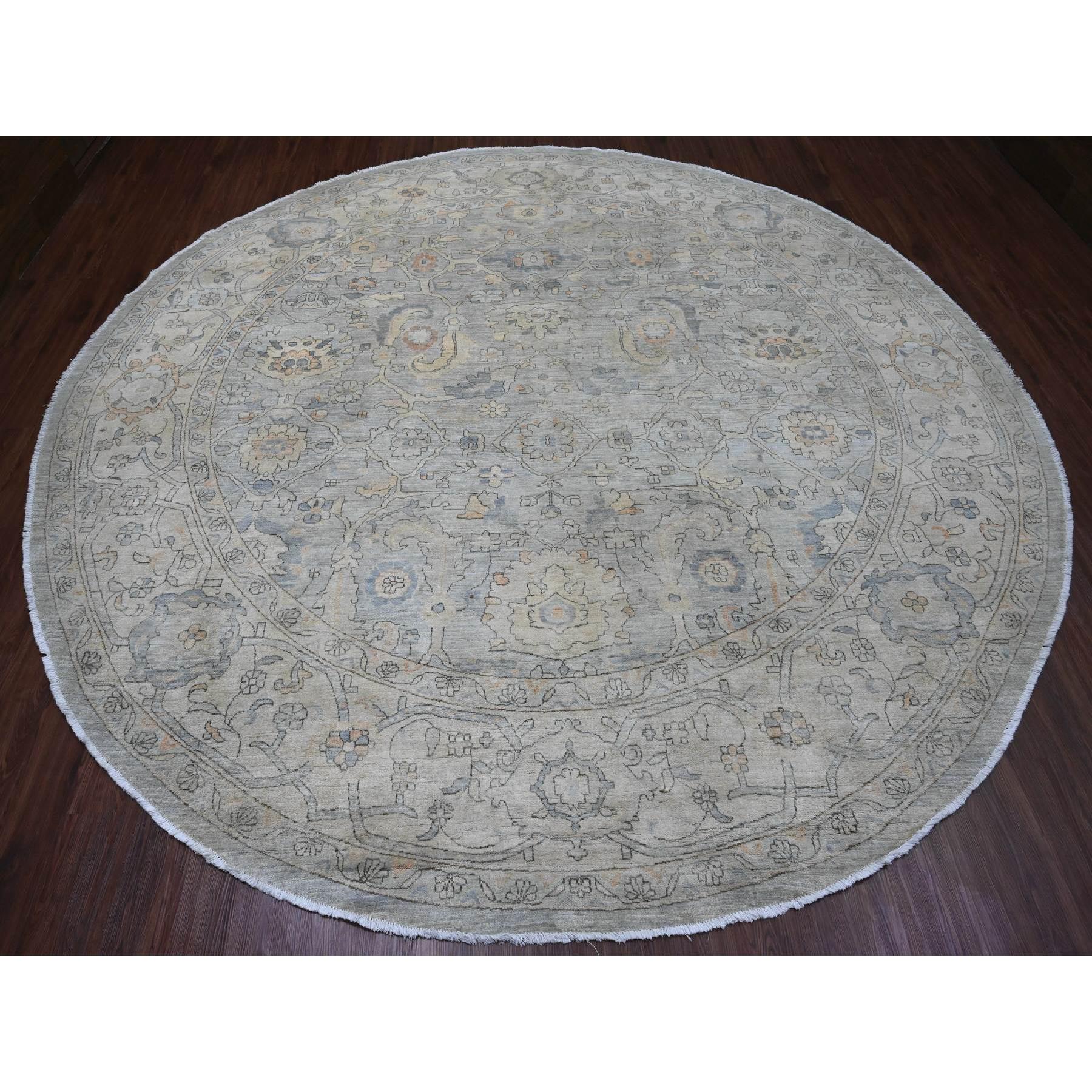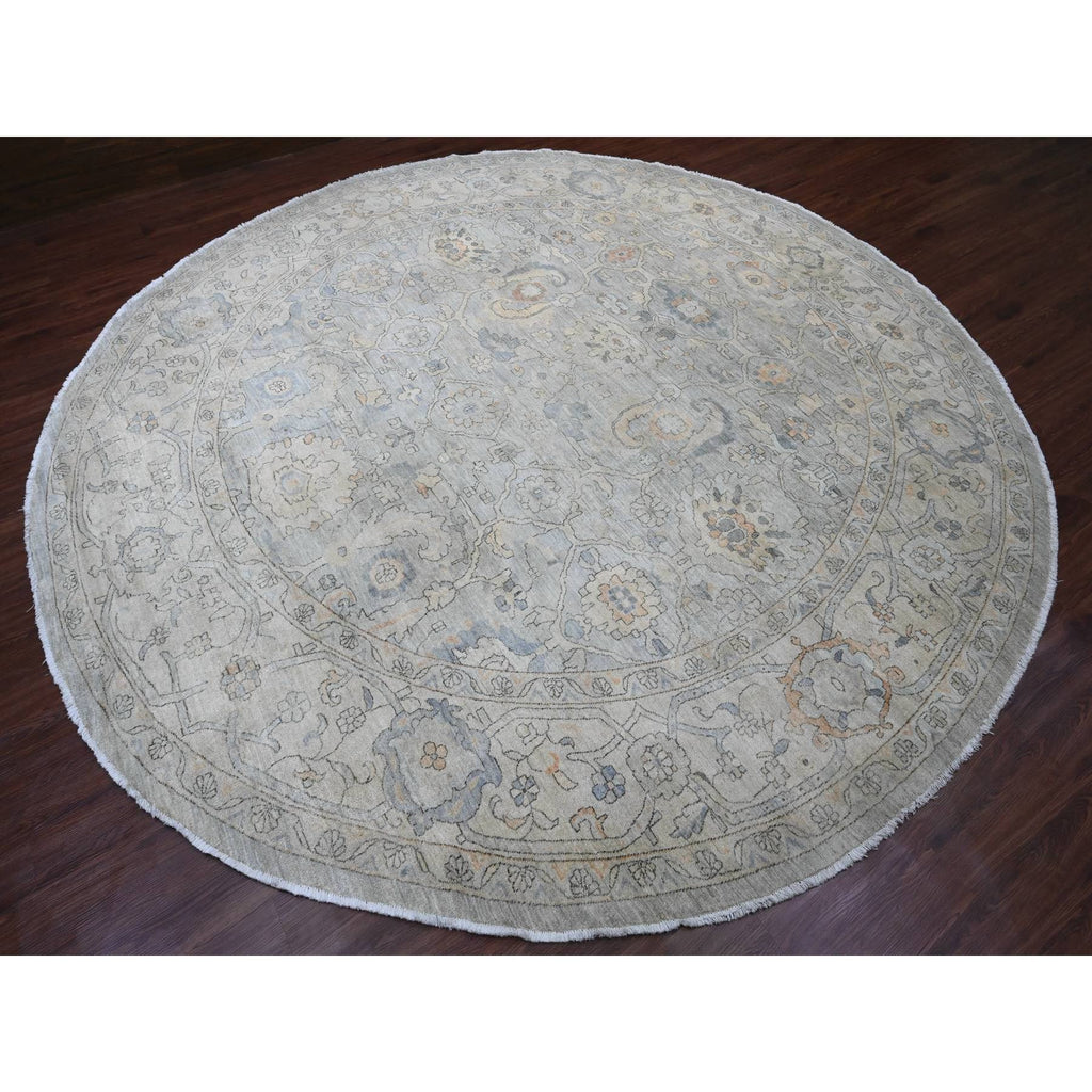 12'2"x12'2" Misty Gray, Washed Out Ziegler Mahal Revival With All Over Pattern, Hand Knotted, 100% Wool, Round, Oriental Rug FWR122034