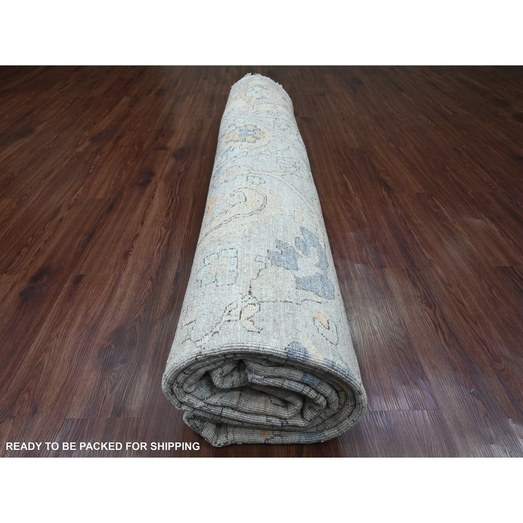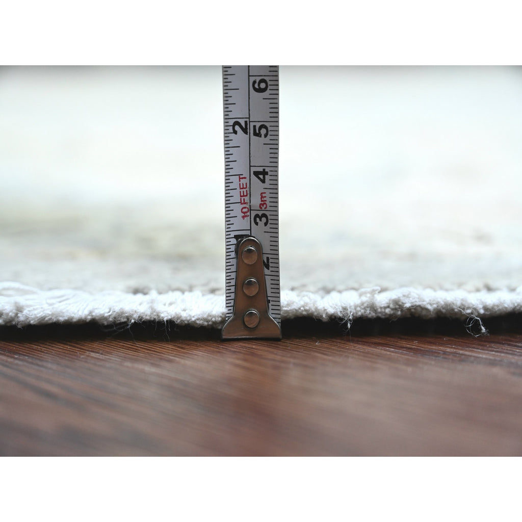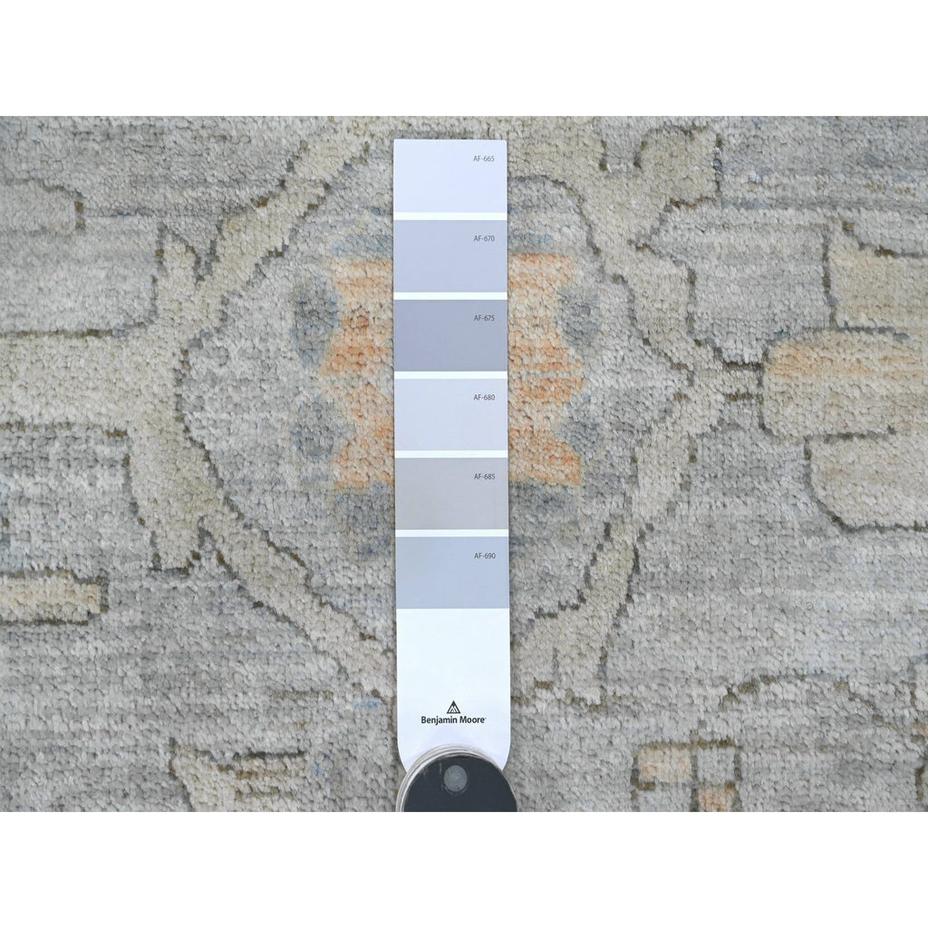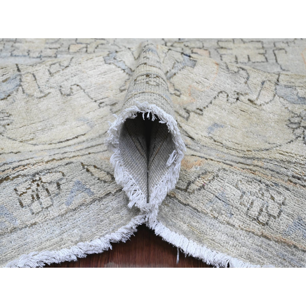 12'2"x12'2" Misty Gray, Washed Out Ziegler Mahal Revival With All Over Pattern, Hand Knotted, 100% Wool, Round, Oriental Rug FWR122034