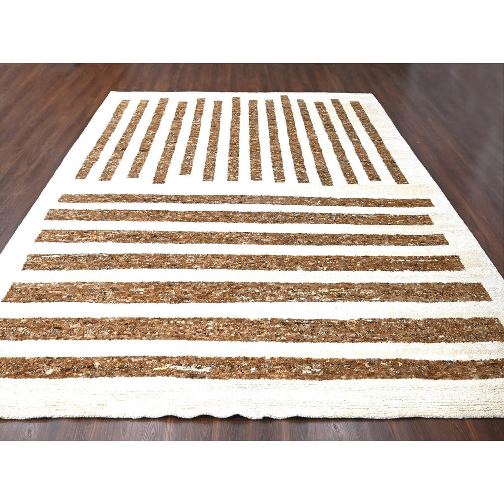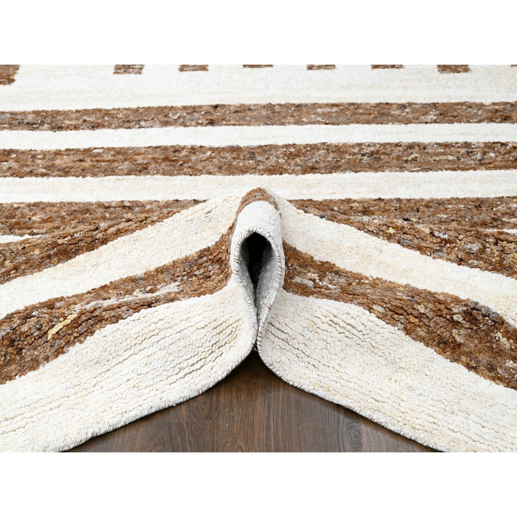 12'2"x14'10" Leather Brown And Ivory, Natural Dyes, Pure Wool, Thick Chunky Texture, Soft Pile, Hand Knotted, Oversized Oriental Rug FWR507252
