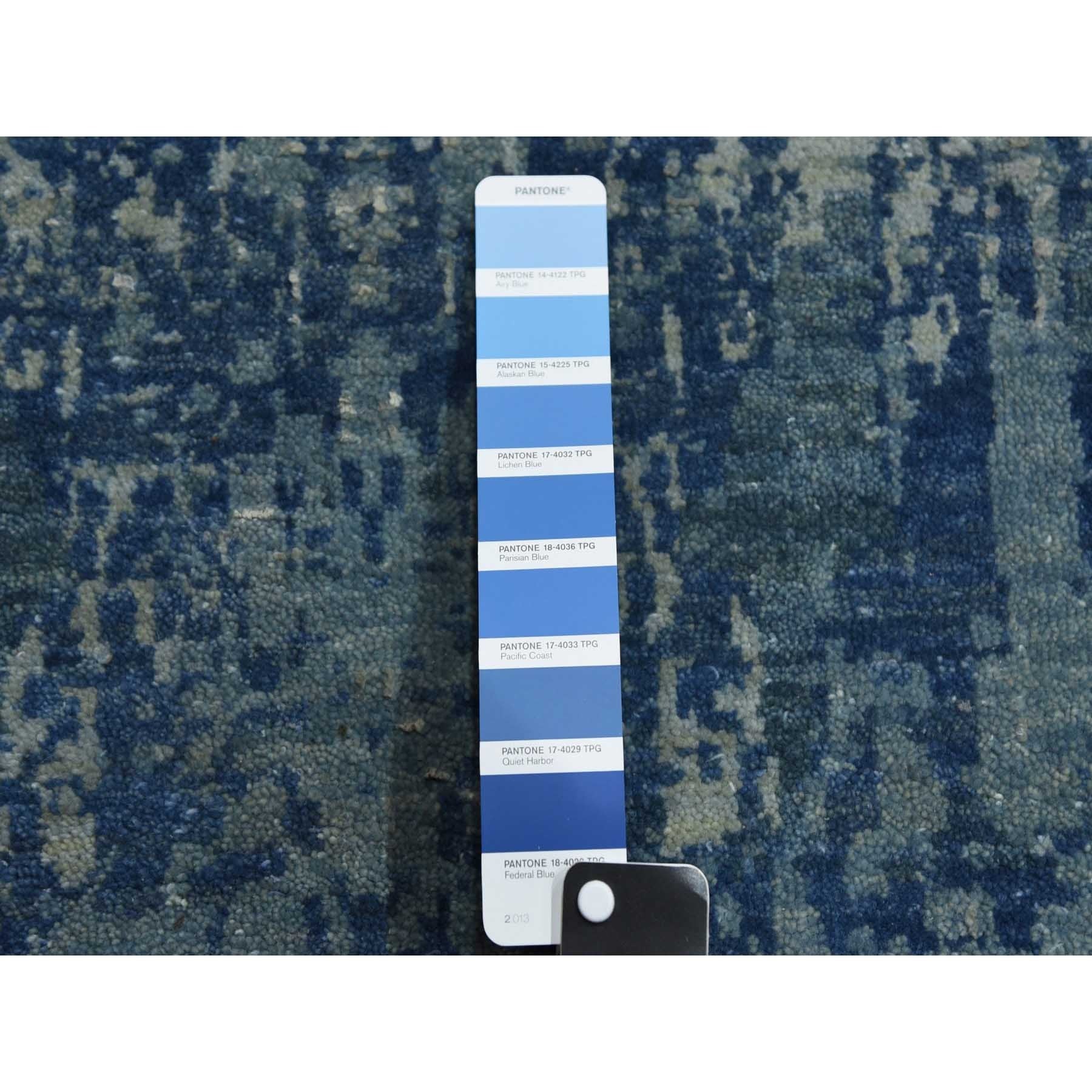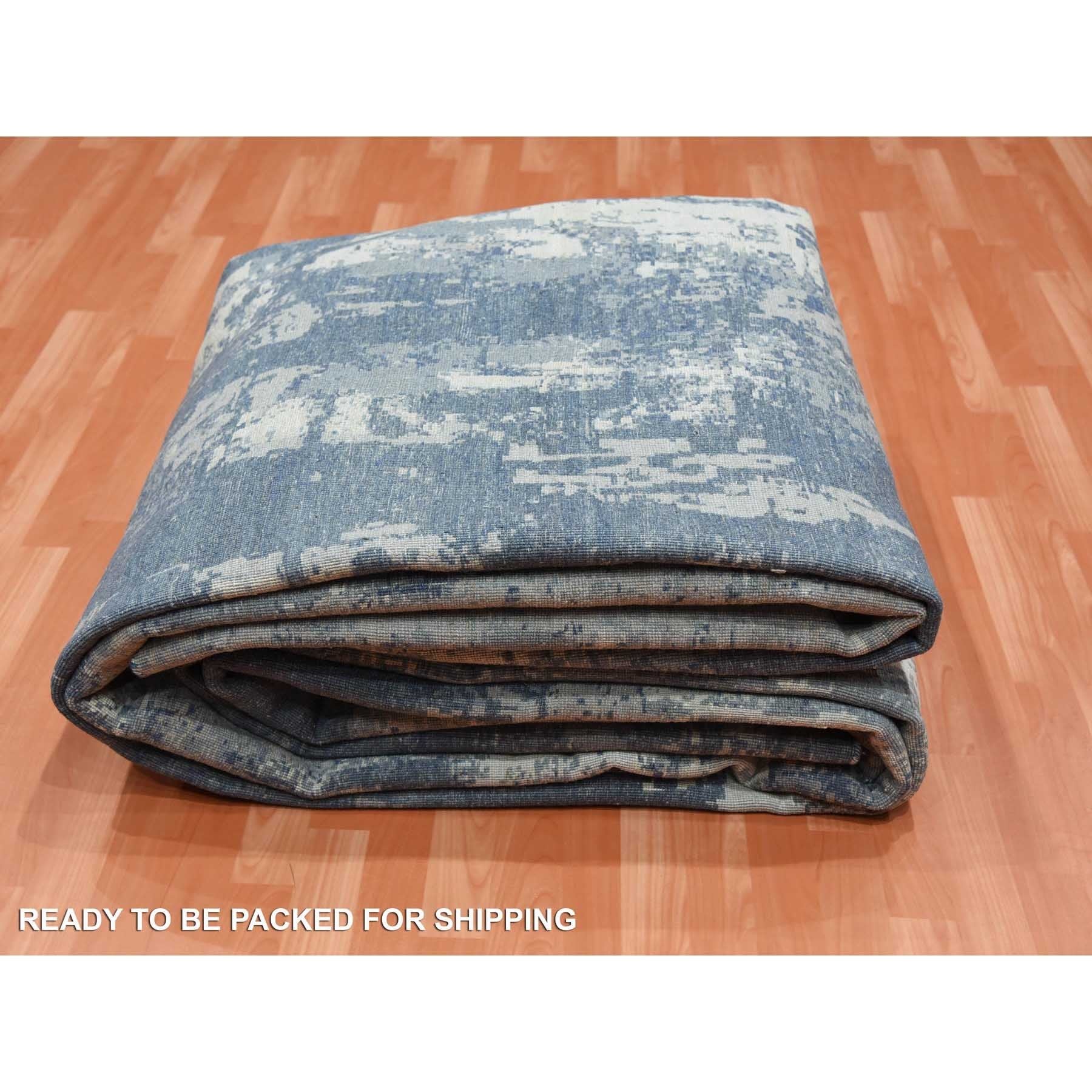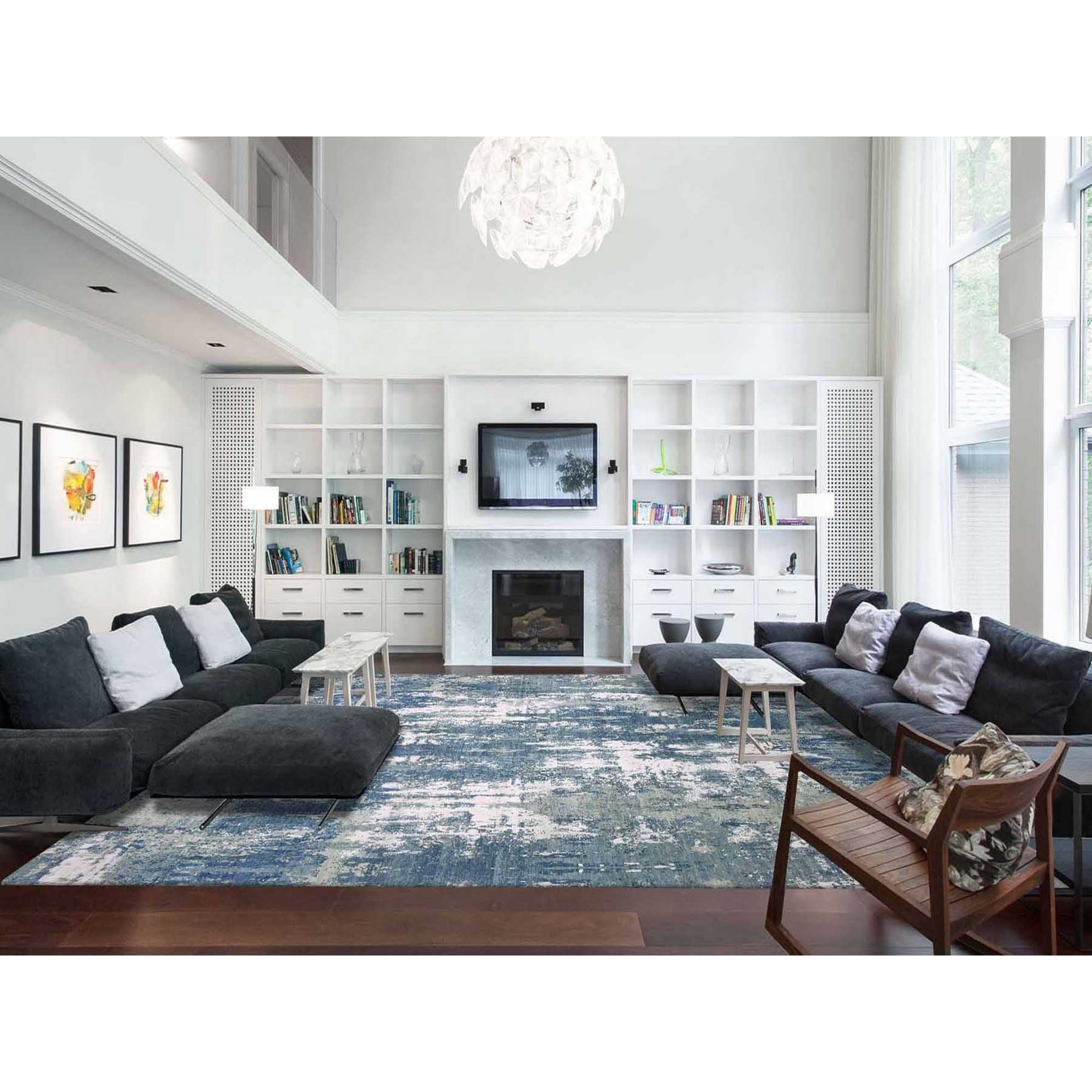 12'2"x15'1" Oceanic Blue, Abstract Design Hi-low Pile, Denser Weave Hand Knotted Pure Silk And Wool, Oversized Oriental Rug FWR450612