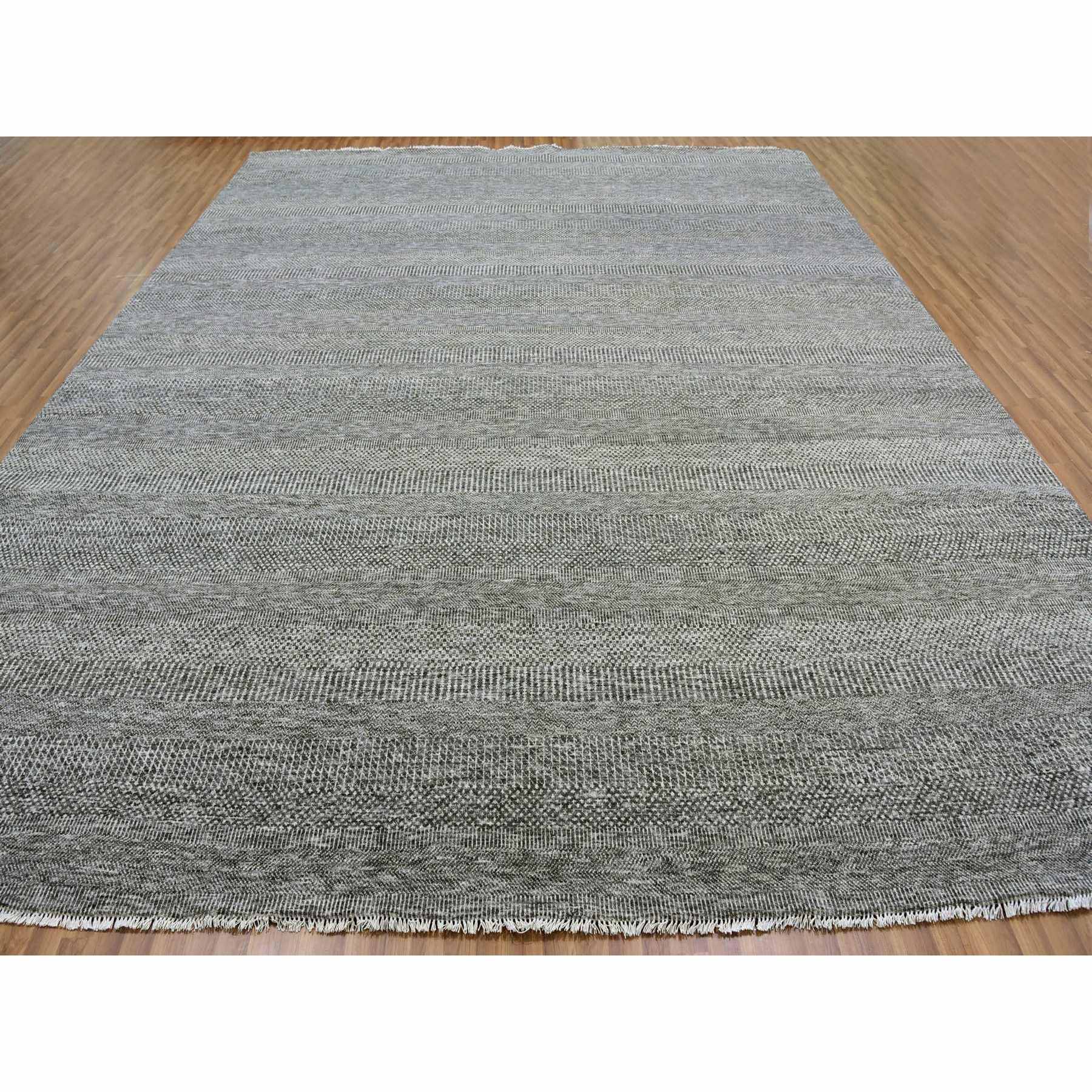 12'2"x15'2" Neutral Gray, Modern Grass Design, Tone On Tone, Undyed 100% Wool, Hand Knotted, Oversized Oriental Rug FWR477516