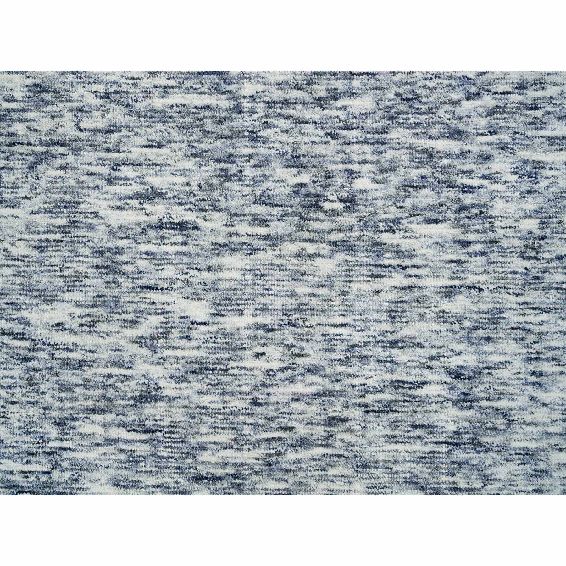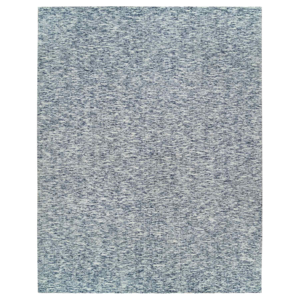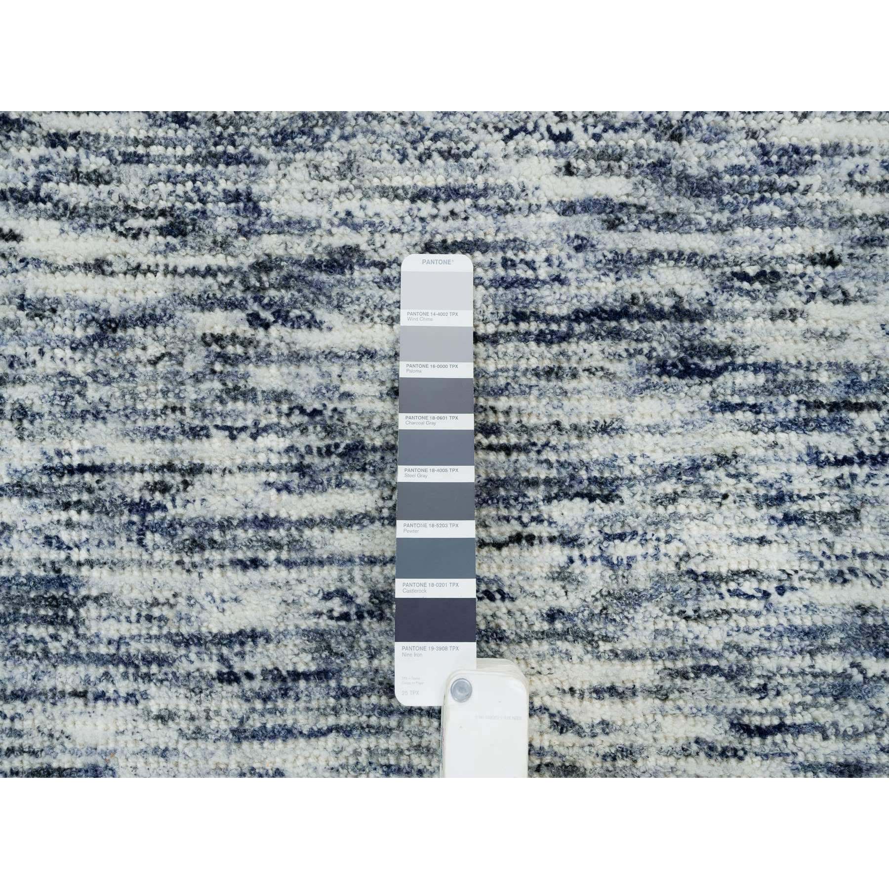 12'2"x15' Blue And Ivory, Pure Wool Hand Loomed, Modern Striae Design Soft Pile, Oversized Oriental Rug FWR391506