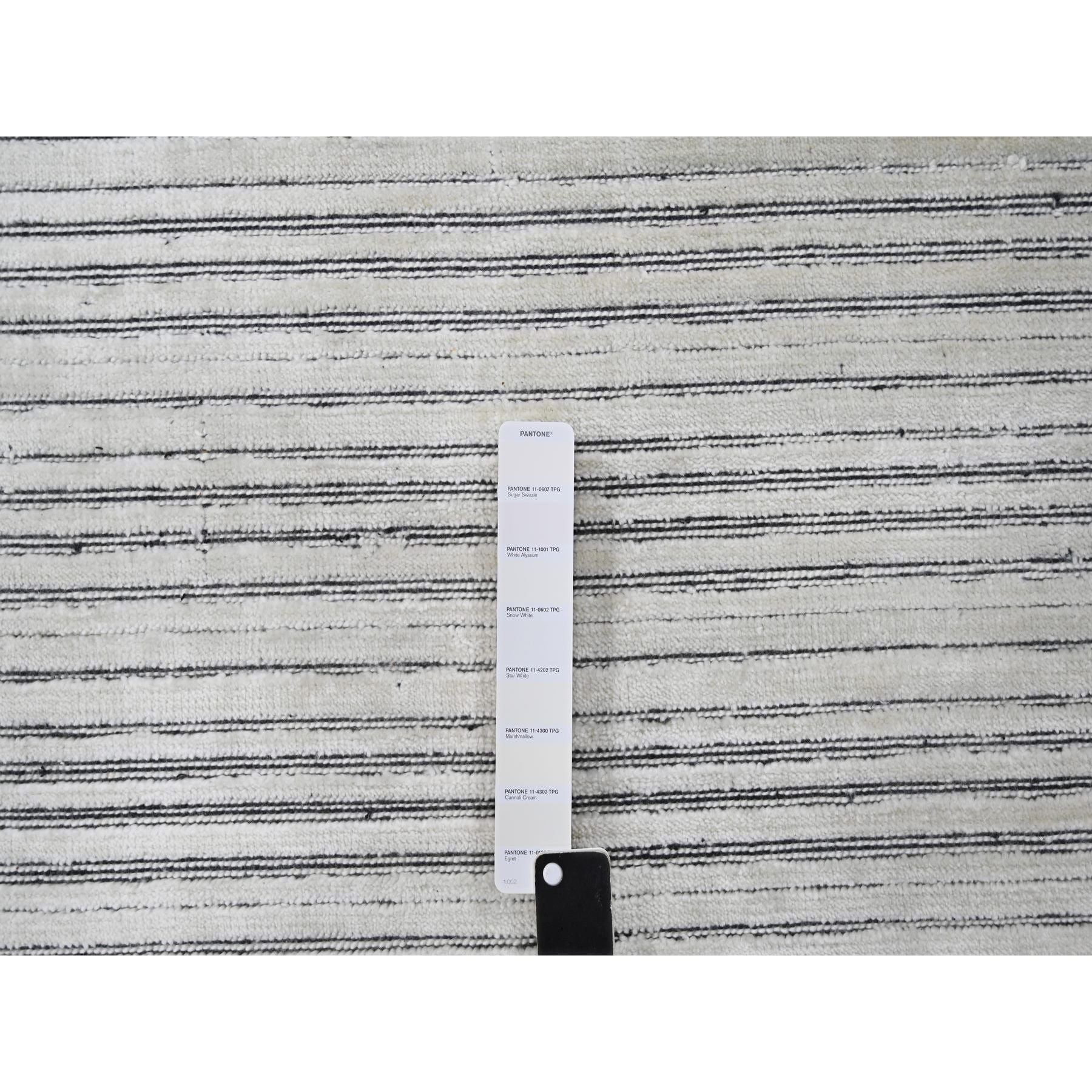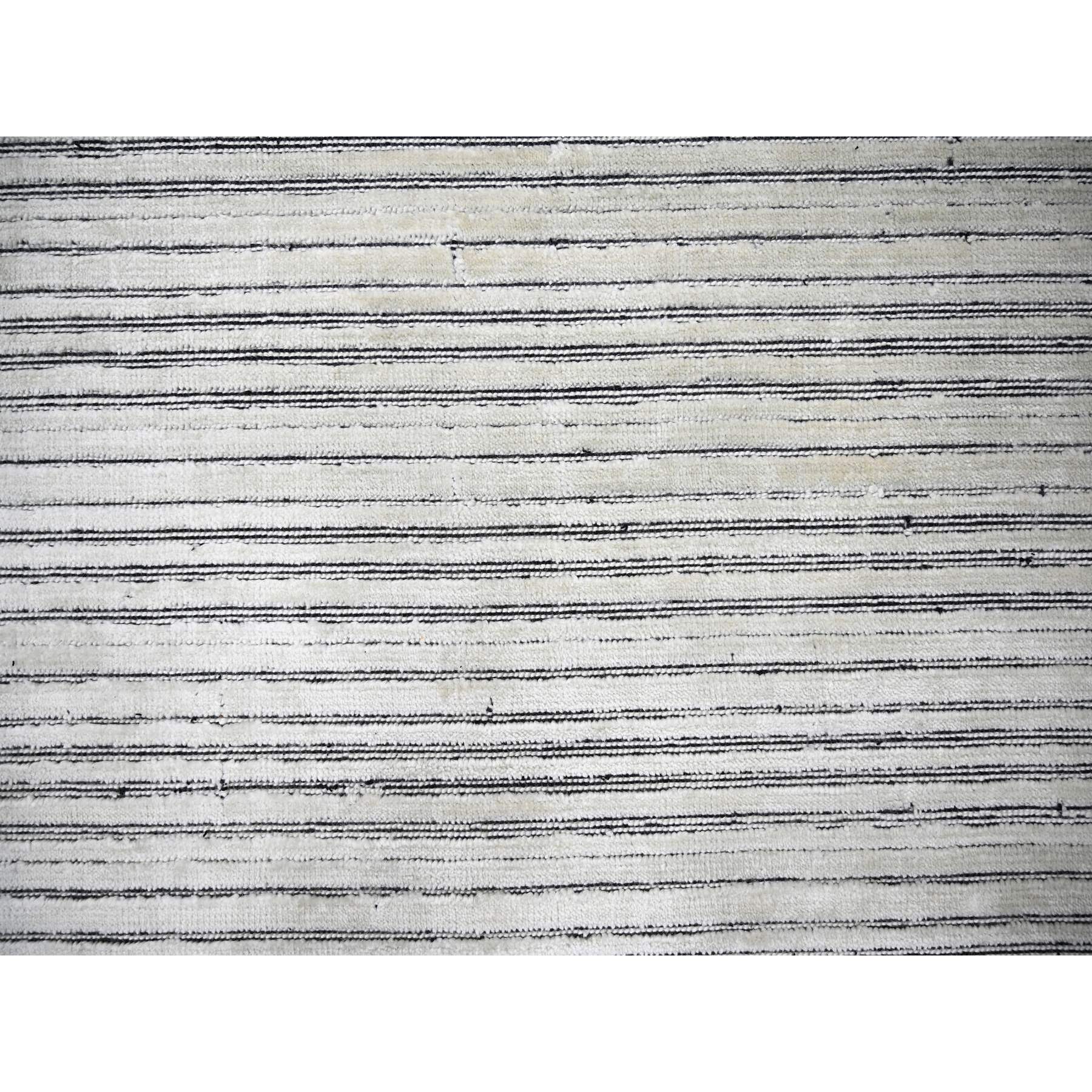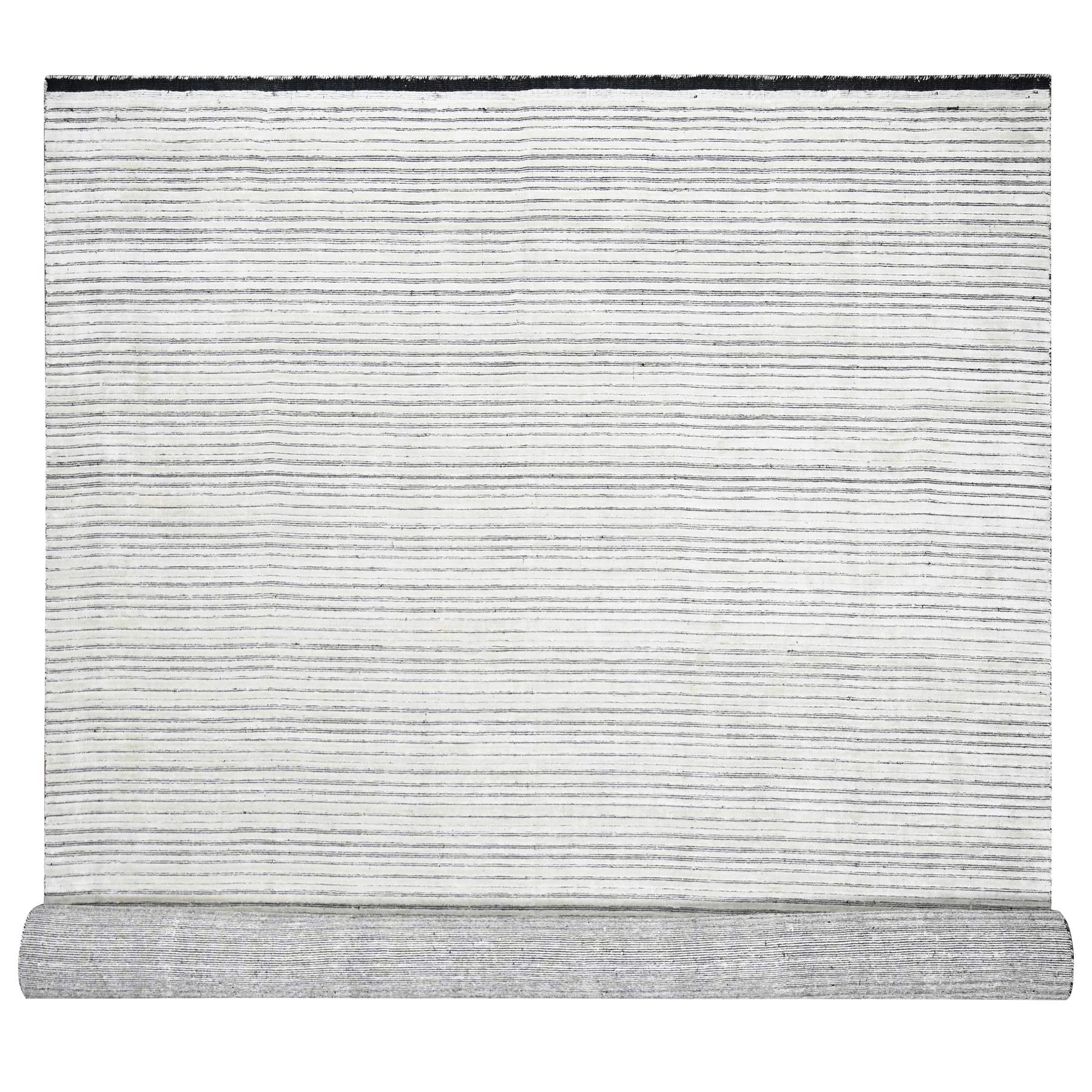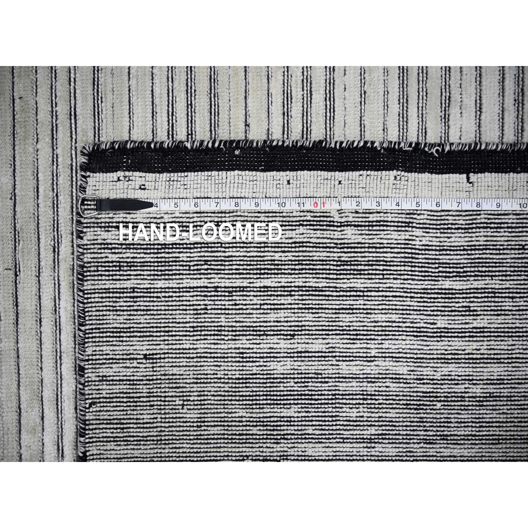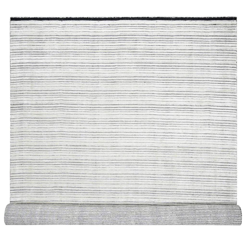 12'2"x15' Ivory And Black, Wool And Plant Based Silk, Hand Loomed, Natural Dyes, Modern Textured And Variegated Line Design, Oversize, Oriental Rug FWR506364