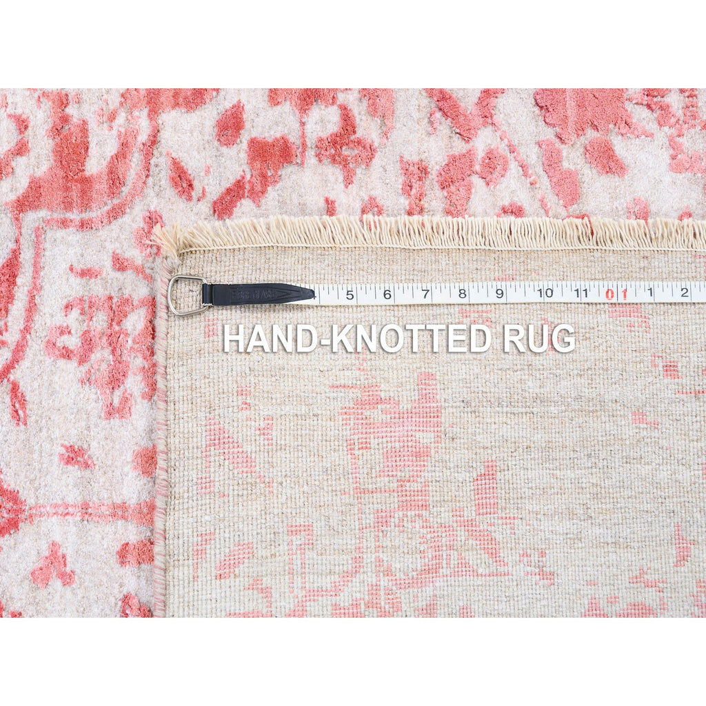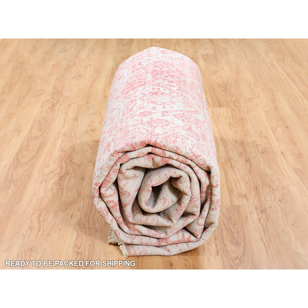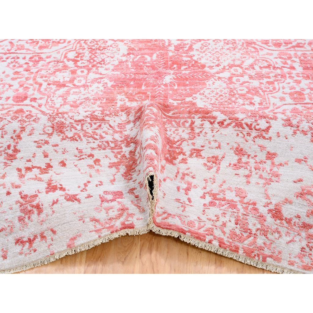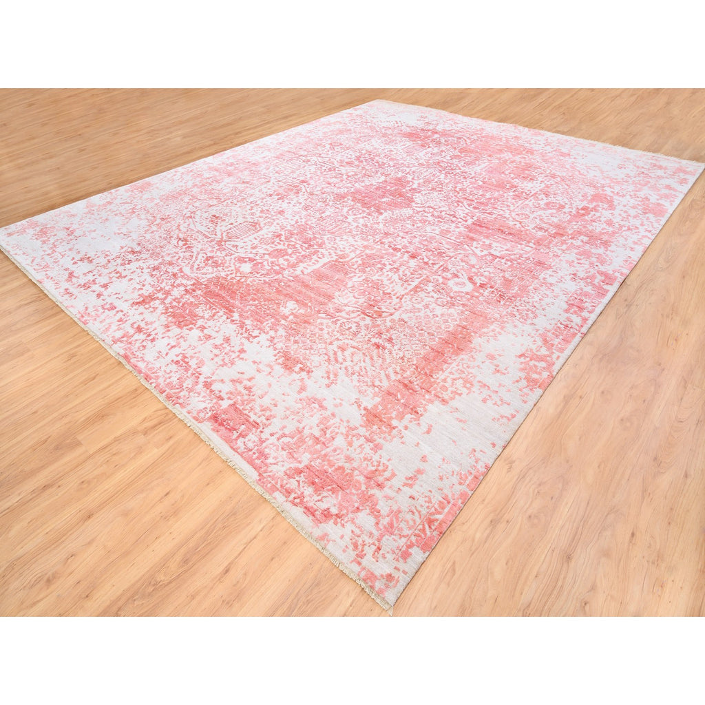 12'2"x15' Oversize Pink Broken Persian Design Wool And Pure Silk Hand Knotted Oriental Rug FWR374136