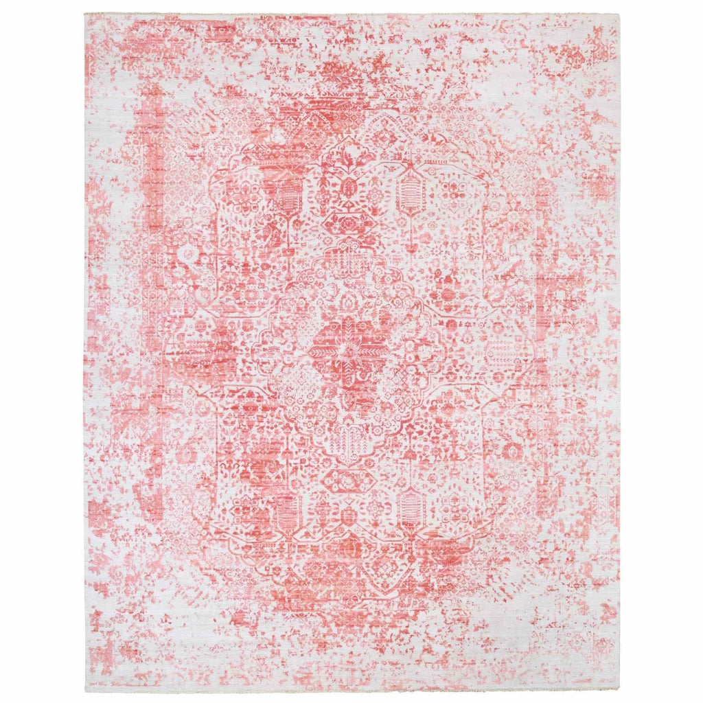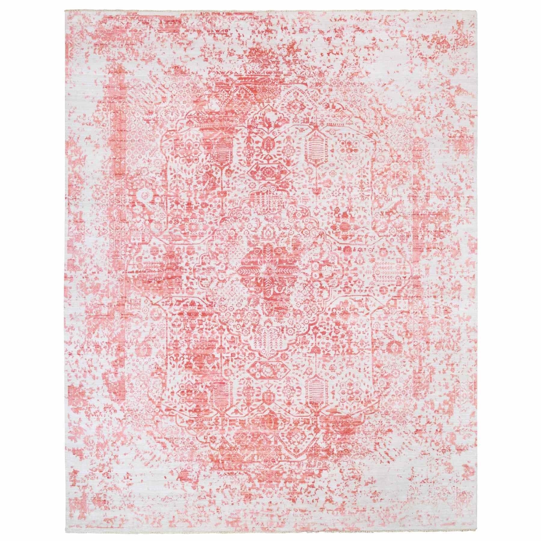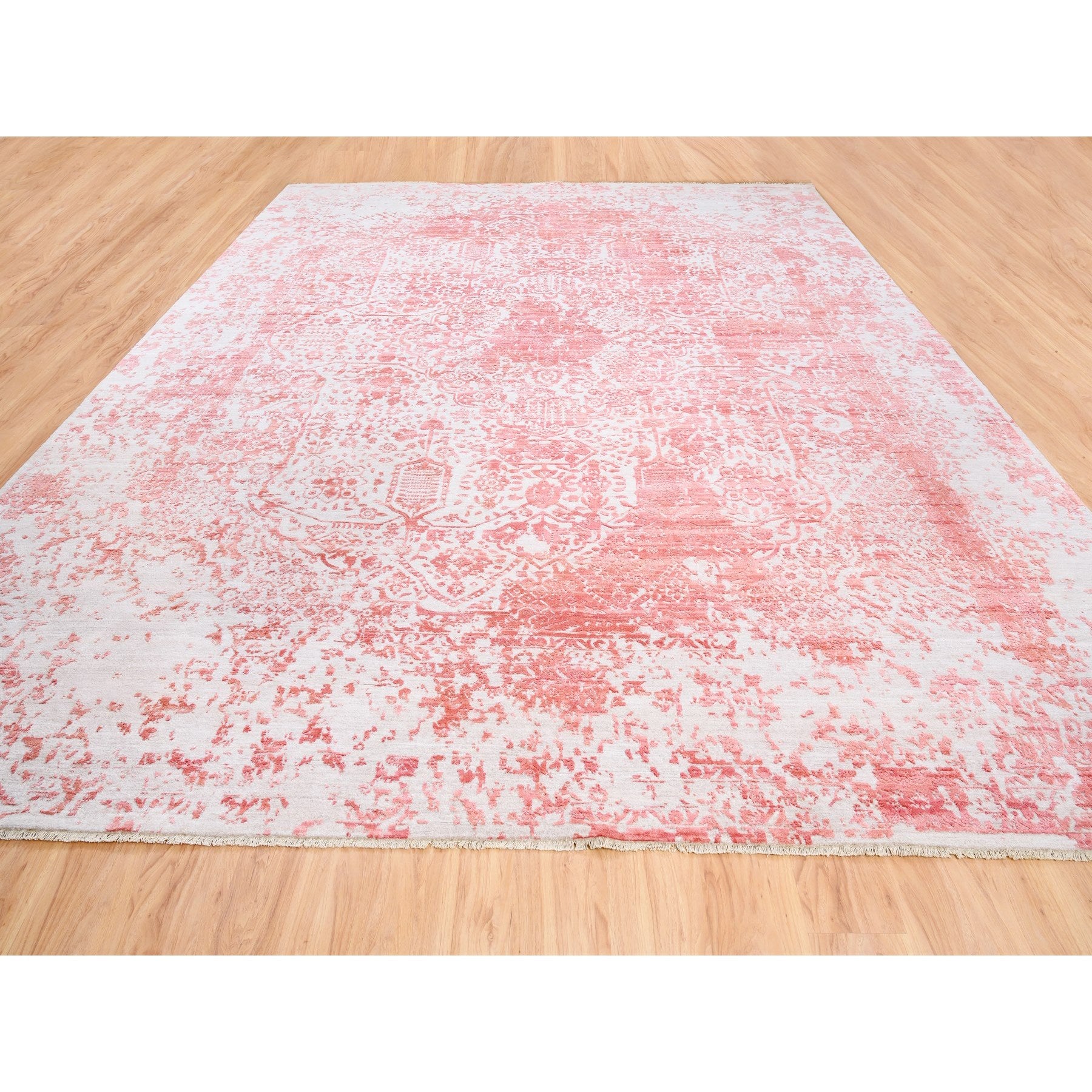 12'2"x15' Oversize Pink Broken Persian Design Wool And Pure Silk Hand Knotted Oriental Rug FWR374136
