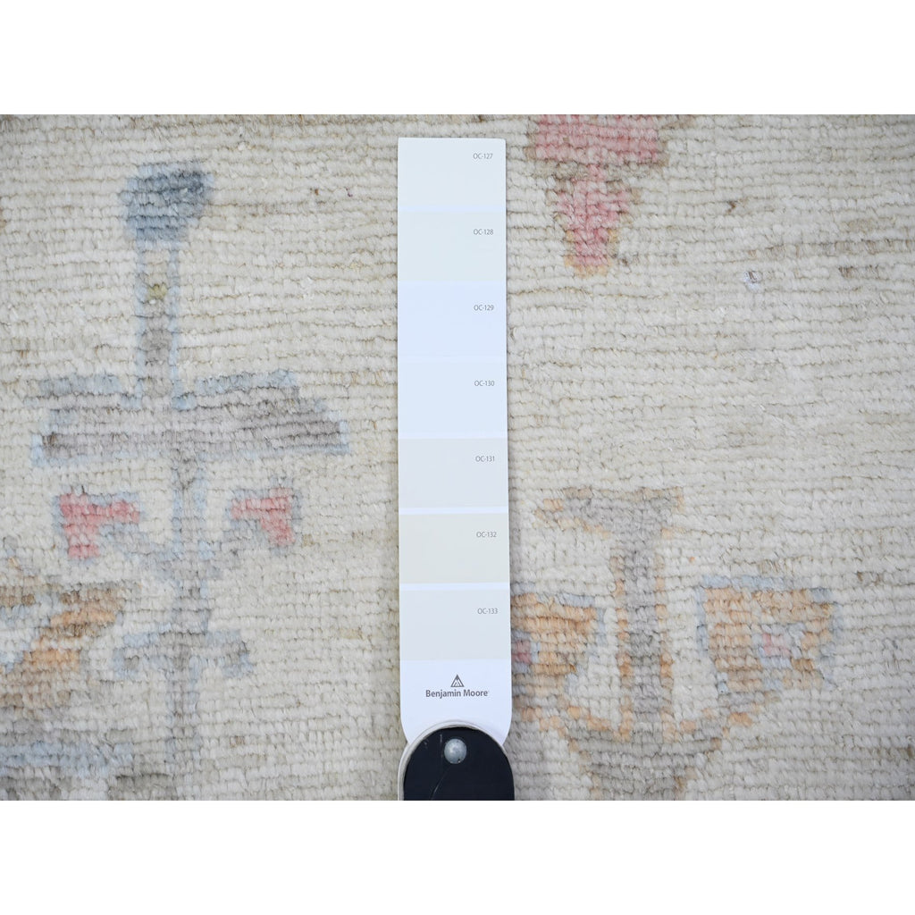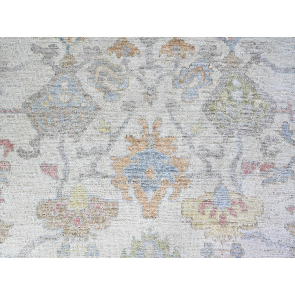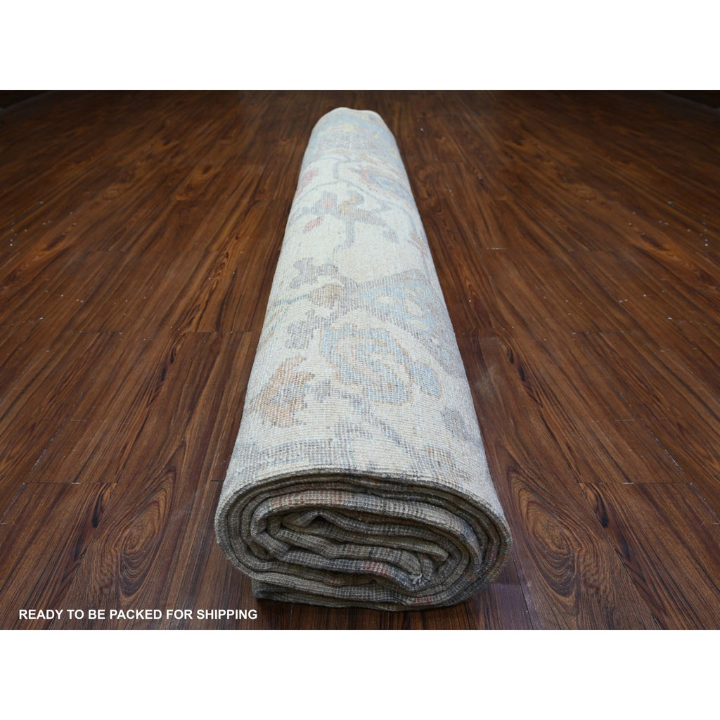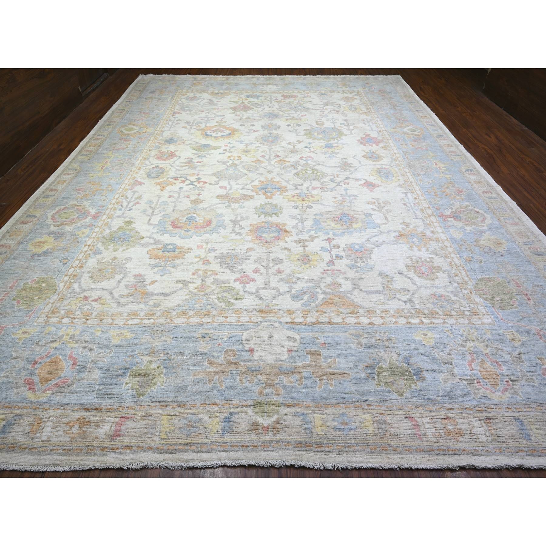 12'2"x16' Smoky White, Afghan Angora Oushak With All Over Floral Pattern, Hand Knotted, Natural Wool, Oversized Oriental Rug FWR448200