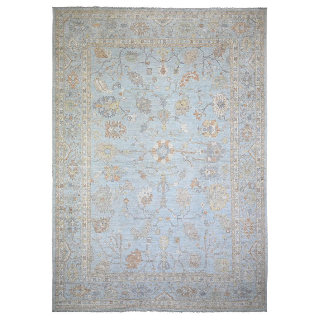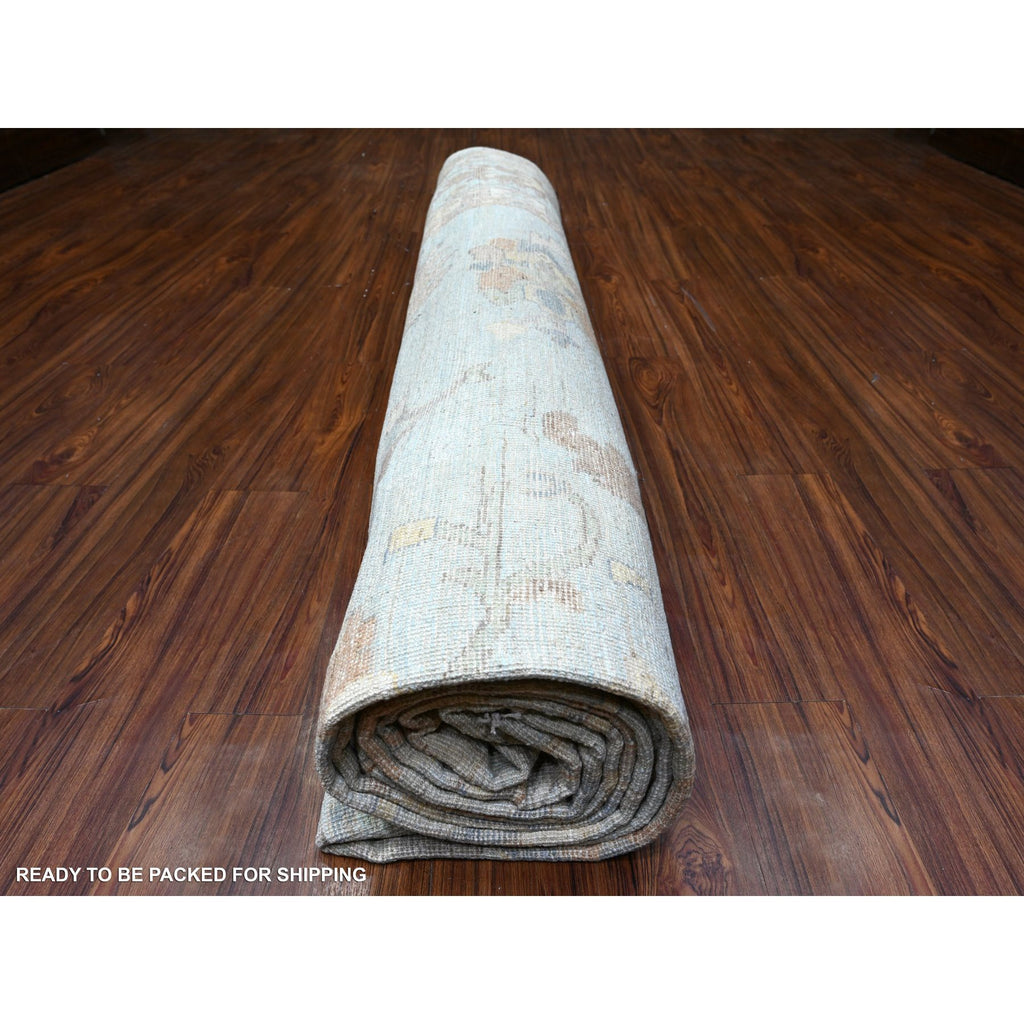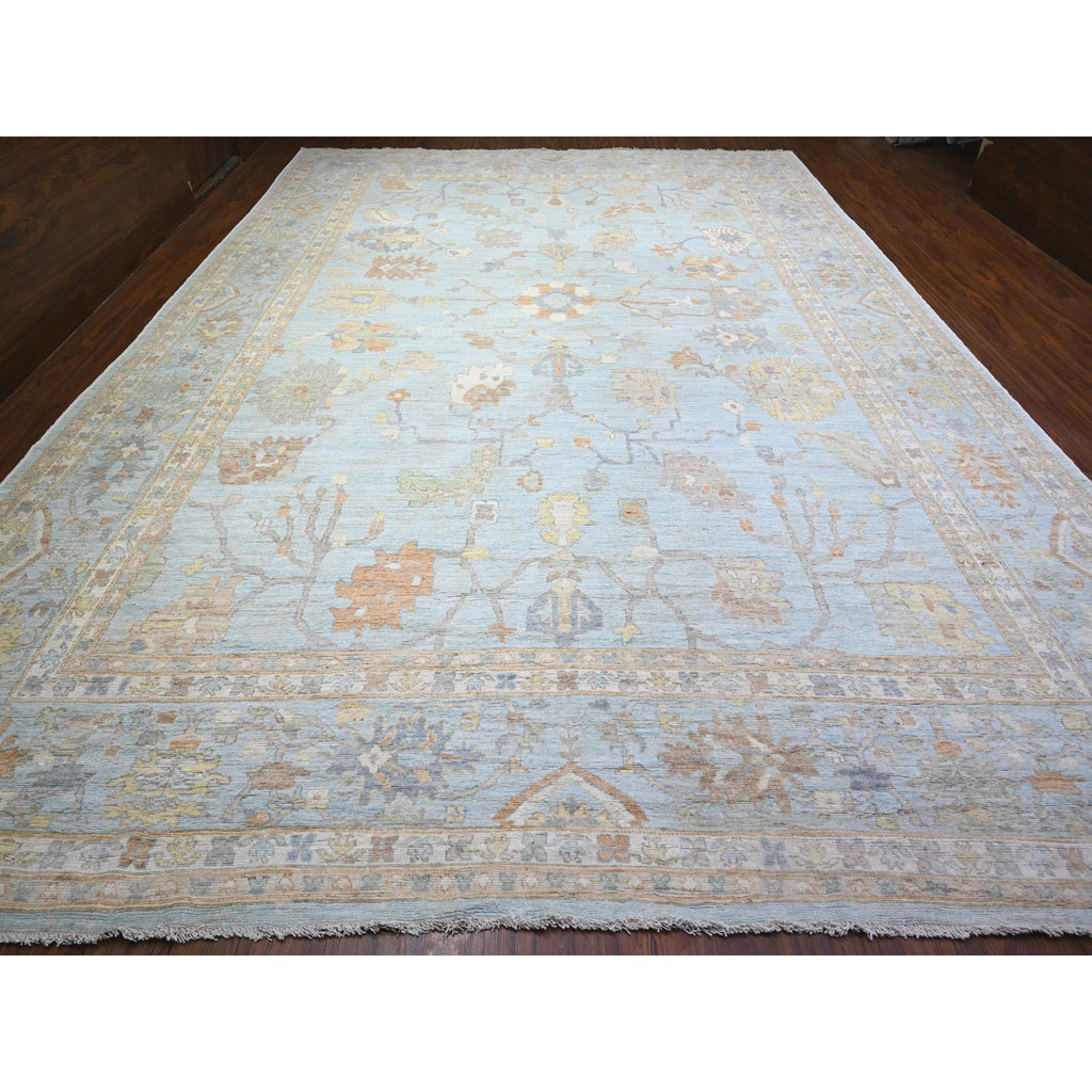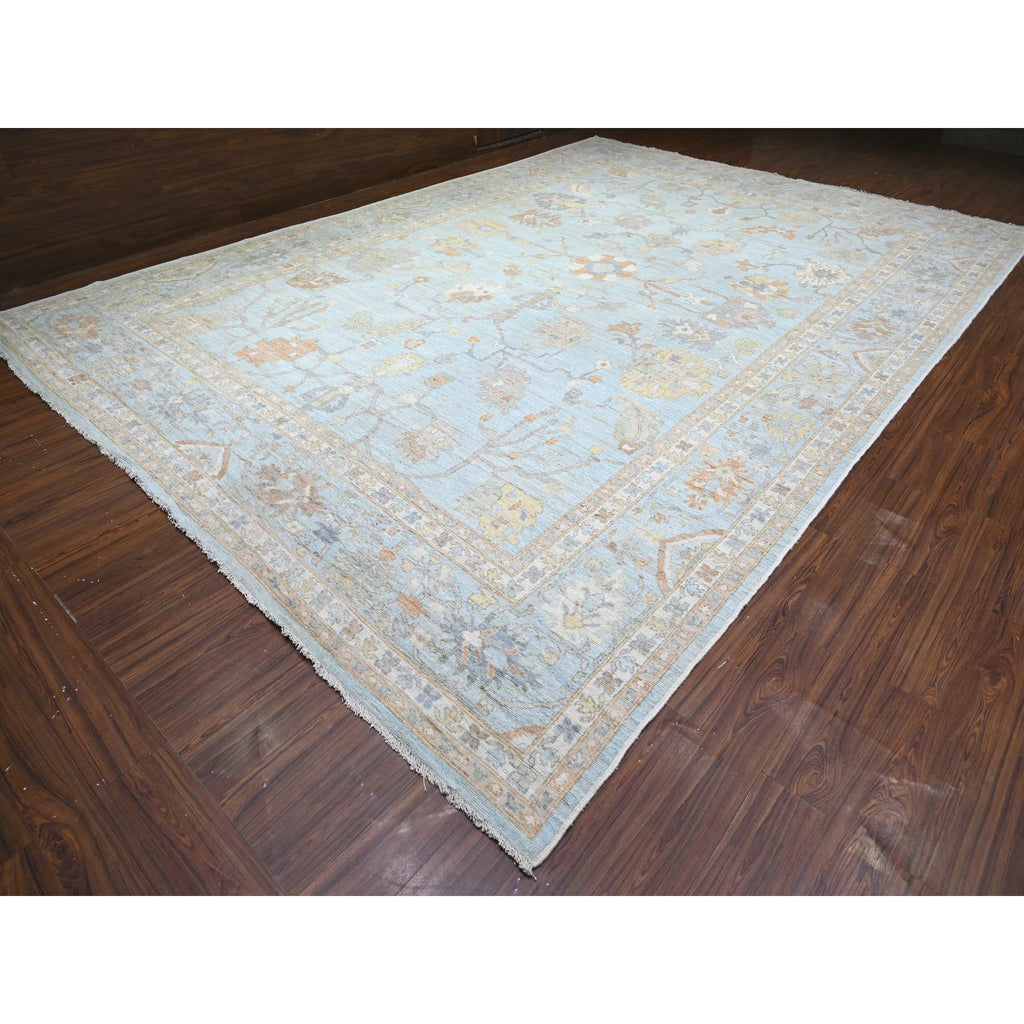 12'2"x17'2" Aero Blue, Hand Knotted, Afghan Angora Oushak With All Over Floral Pattern, Natural Dyes Organic Wool, Oriental Rug FWR528408