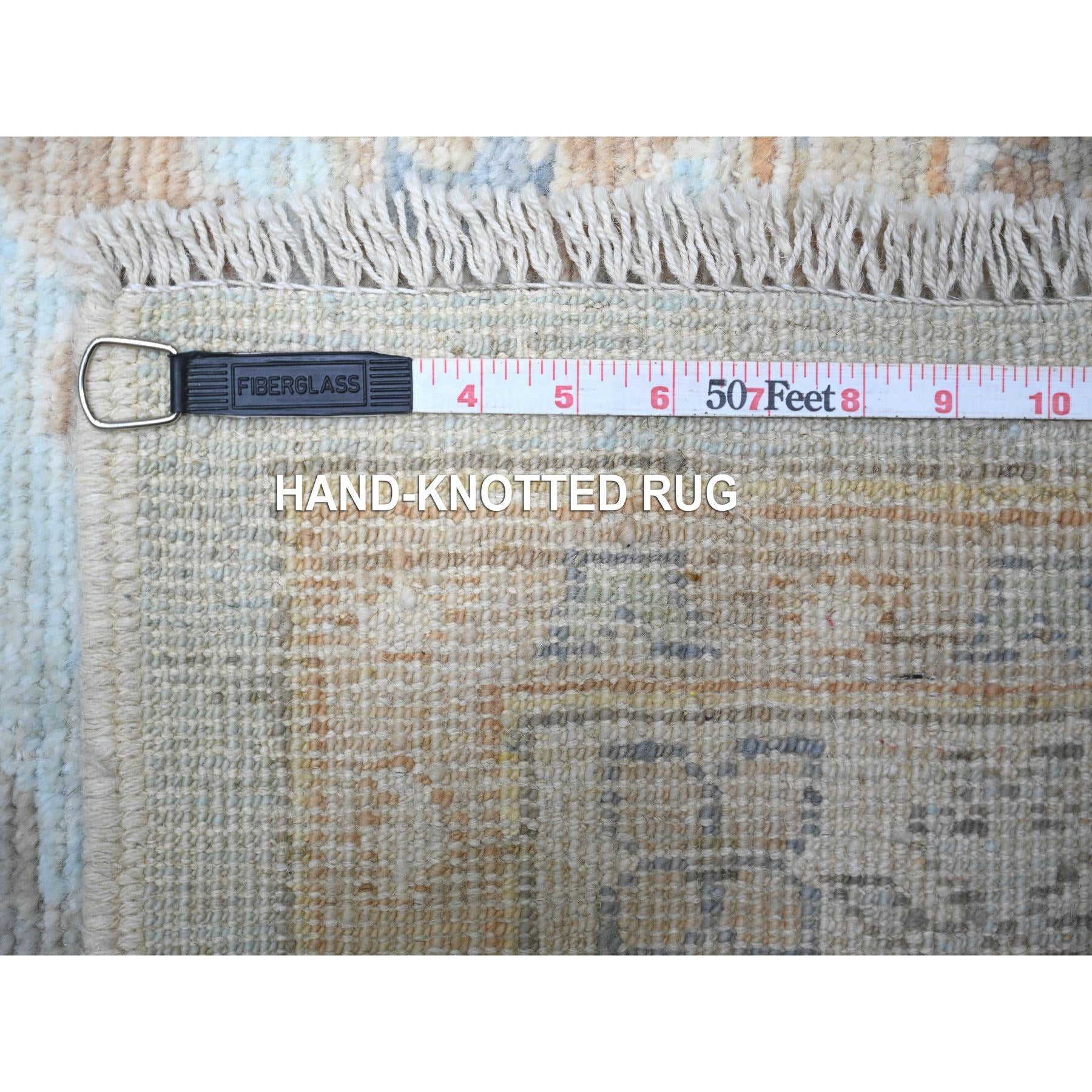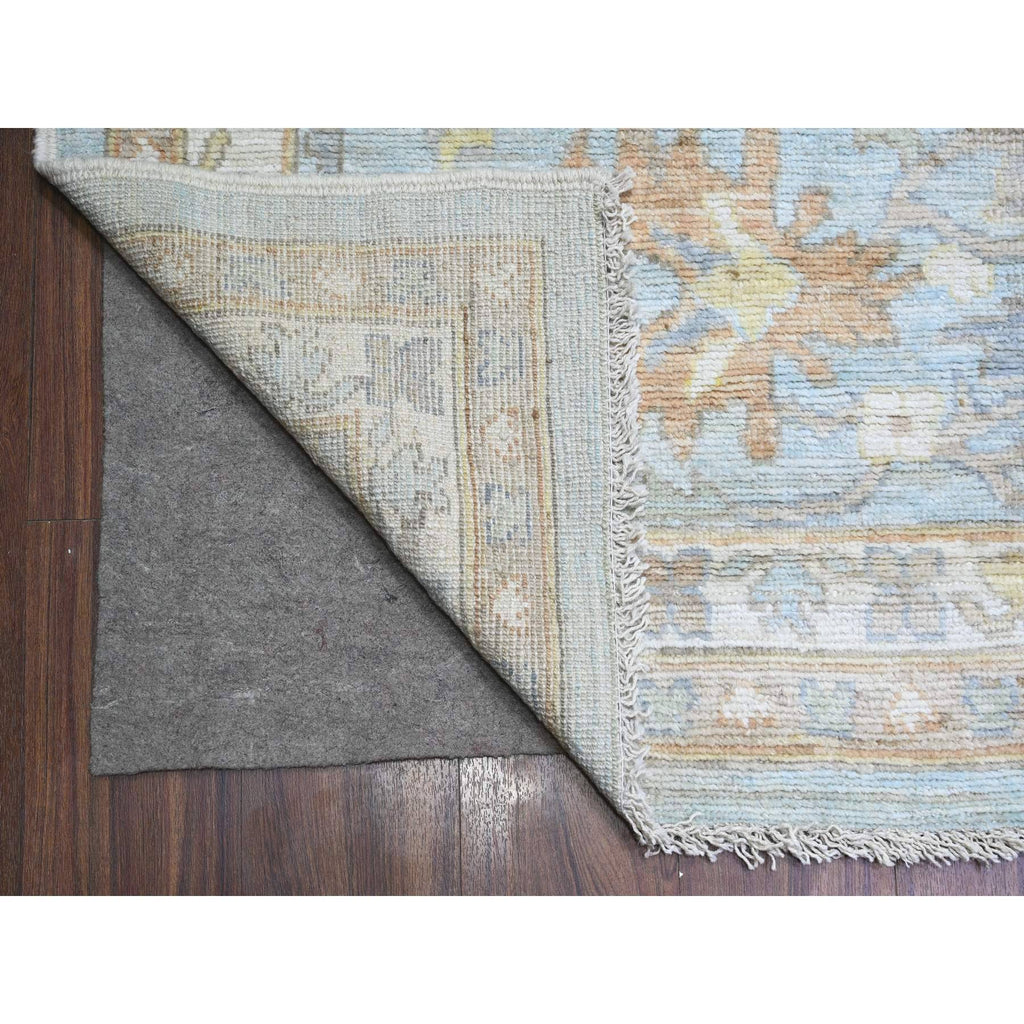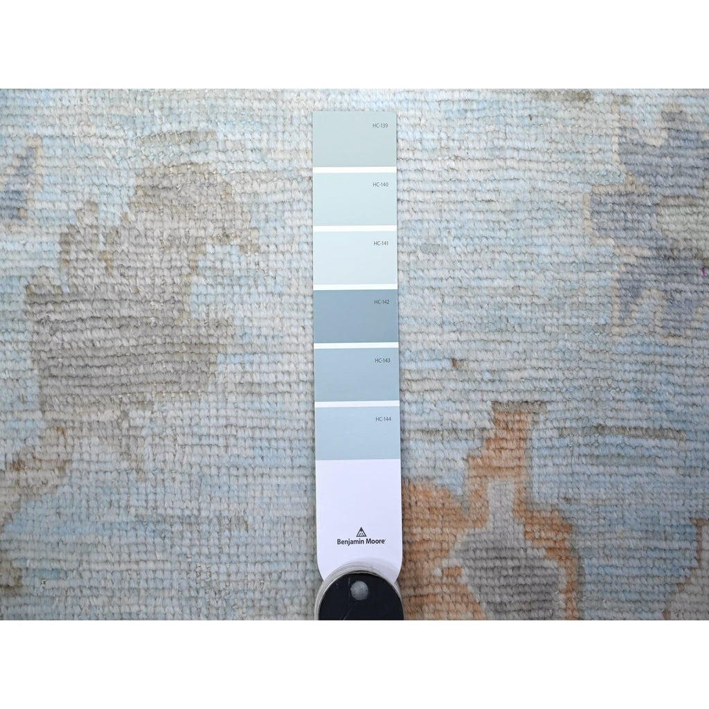 12'2"x17'2" Aero Blue, Hand Knotted, Afghan Angora Oushak With All Over Floral Pattern, Natural Dyes Organic Wool, Oriental Rug FWR528408