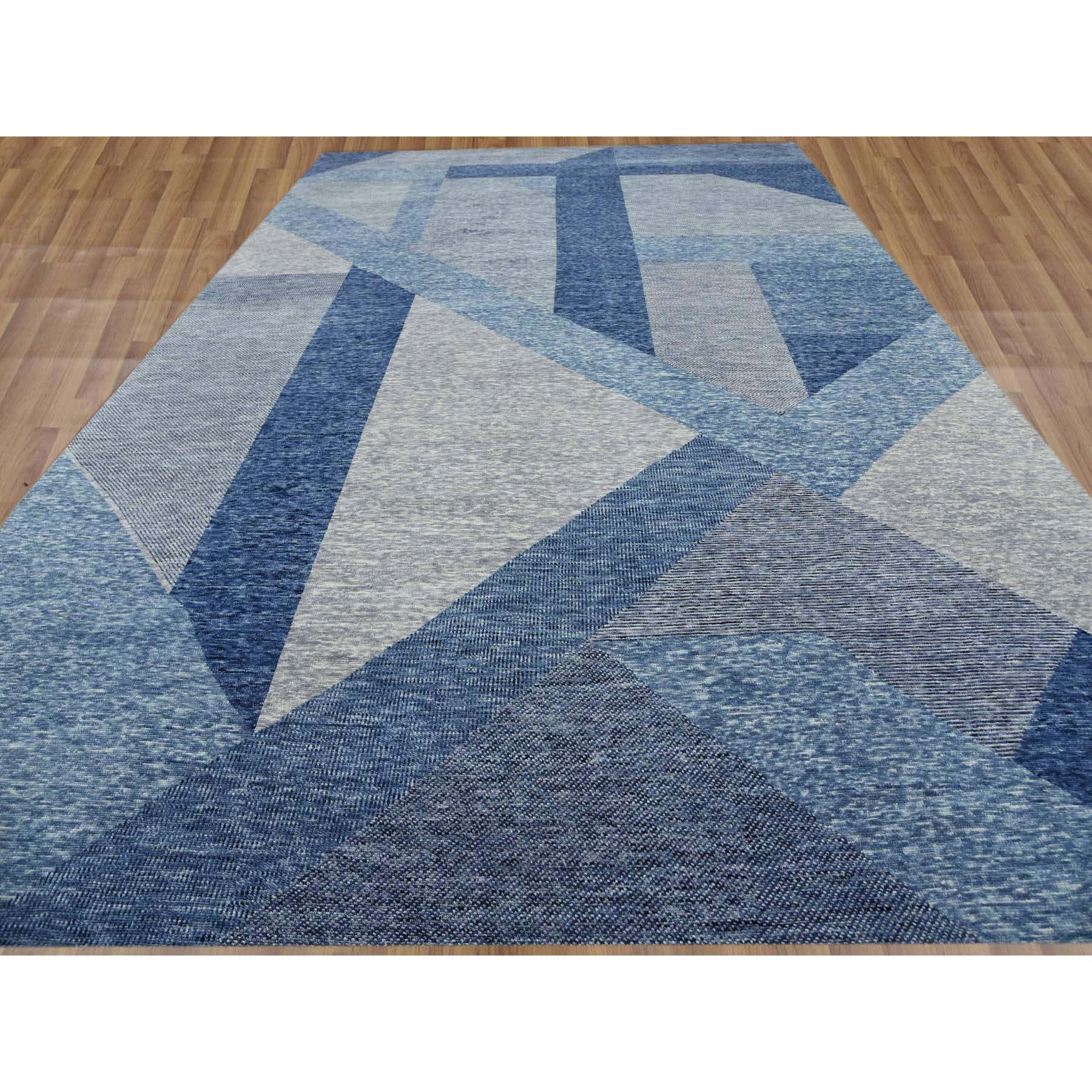 12'2"x18'3" Beau Blue, Pure Wool Hand Knotted, Geometric Art Deco Collection Soft To The Touch, Oversized Oriental Rug FWR476430