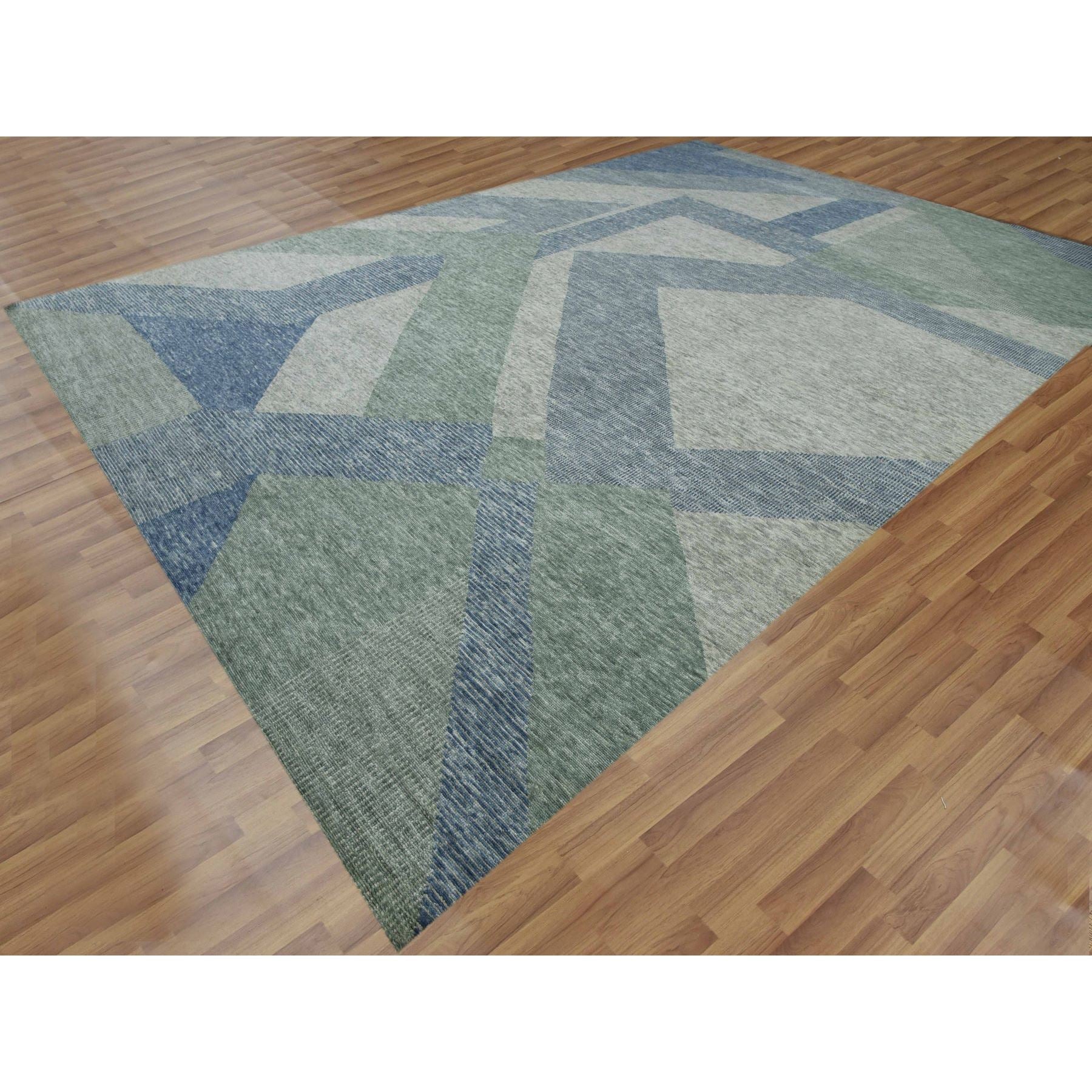 12'2"x18'3" Camouflage Green, Geometric Art Deco Collection, Natural Wool Hand Knotted, Oversized Oriental Rug FWR476484