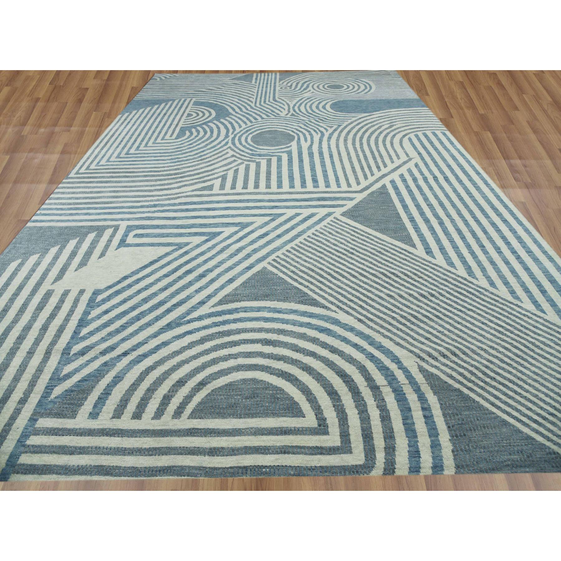 12'2"x18'4" Steel Blue, Geometric Art Deco Collection Soft To The Touch, Organic Wool Hand Knotted, Oversized Oriental Rug FWR476454
