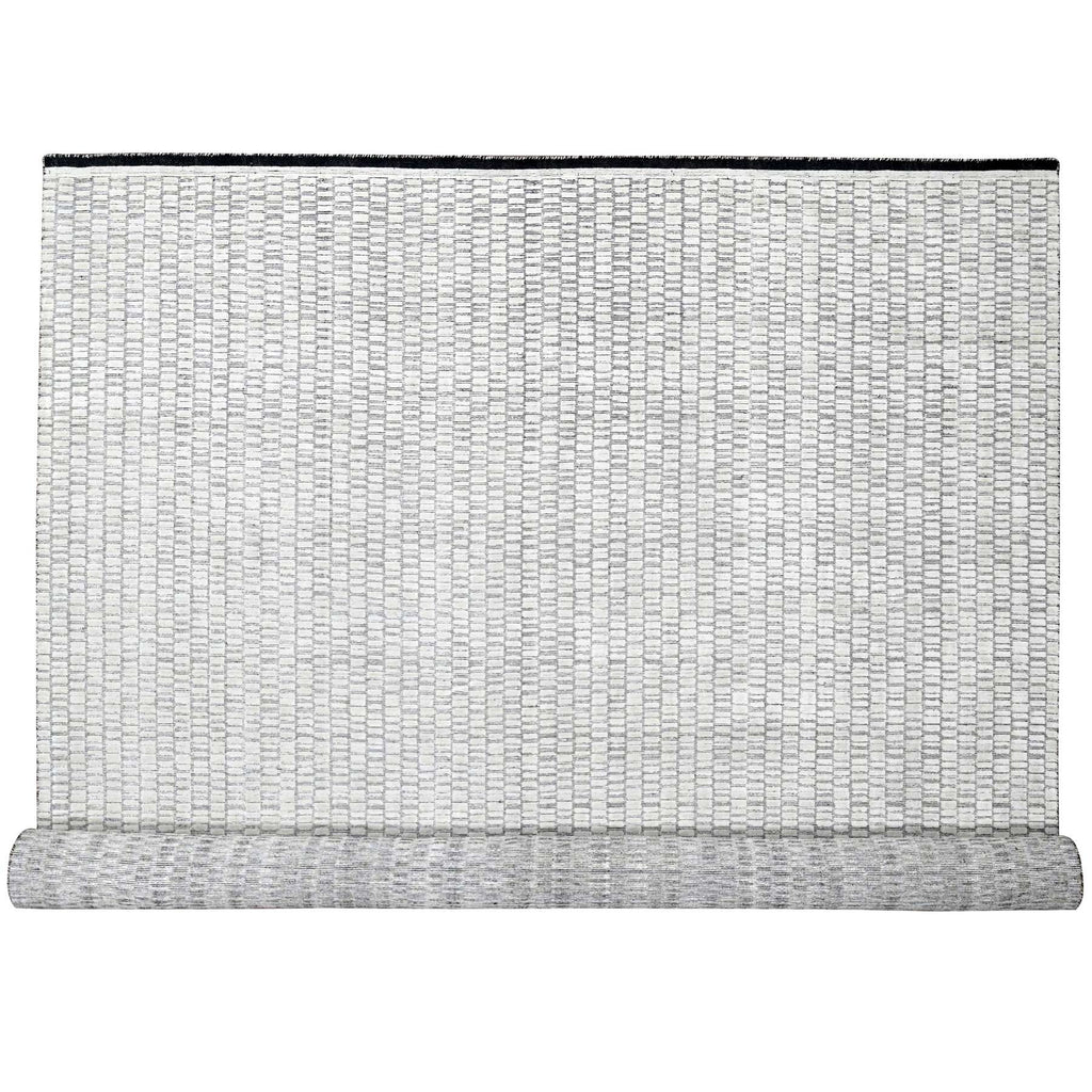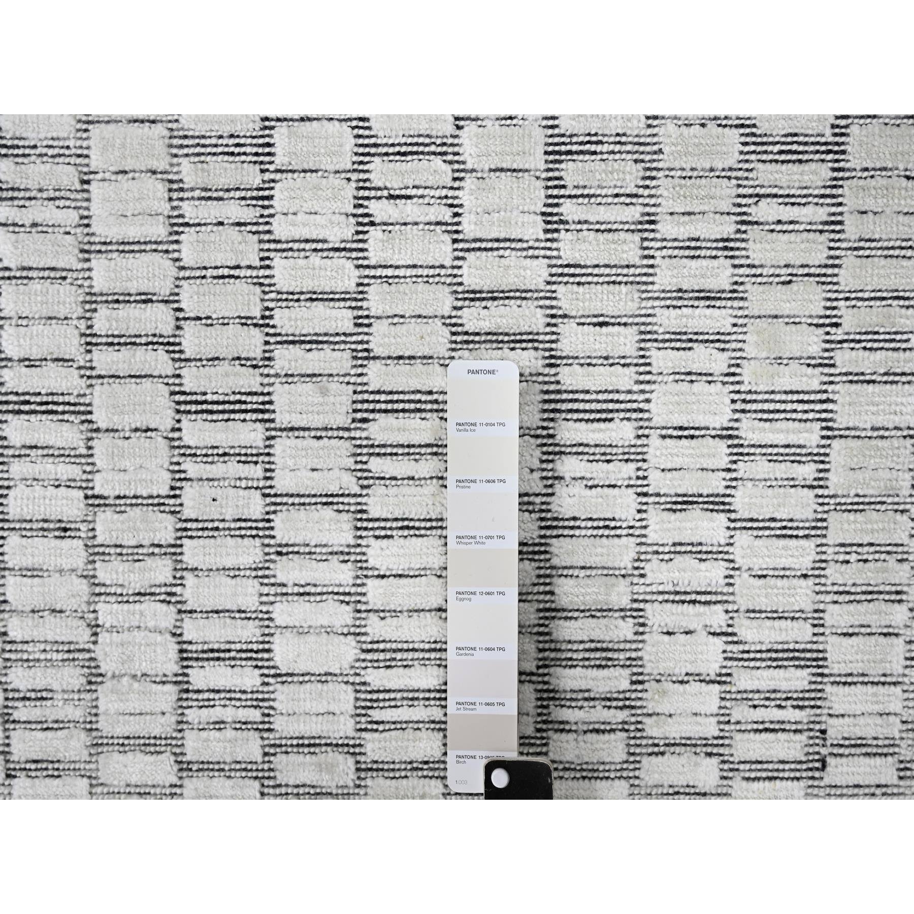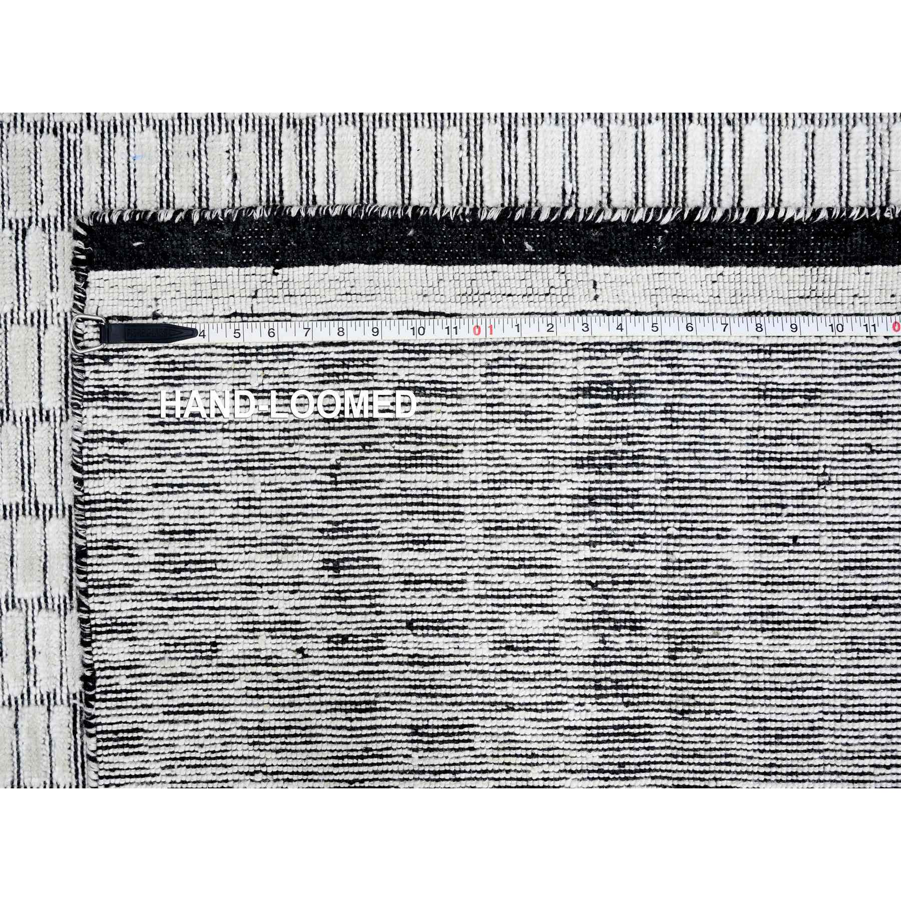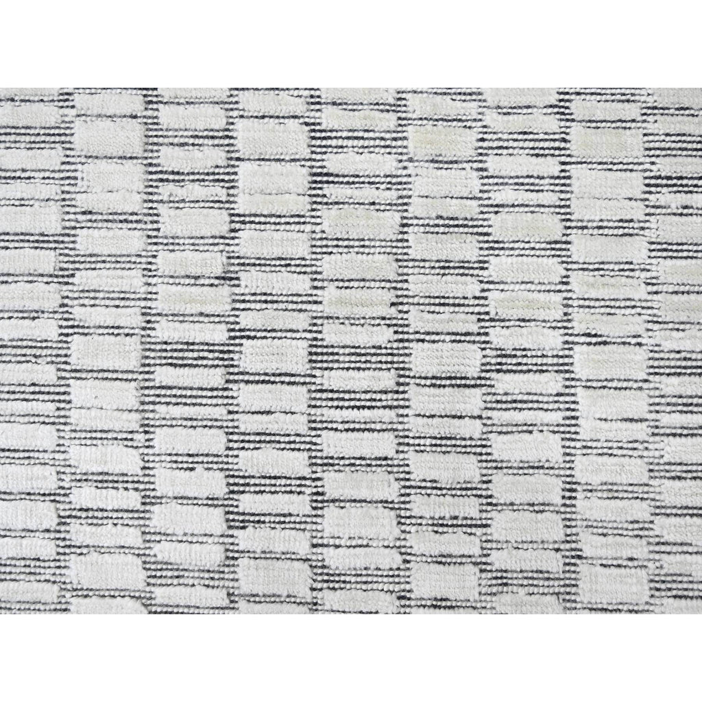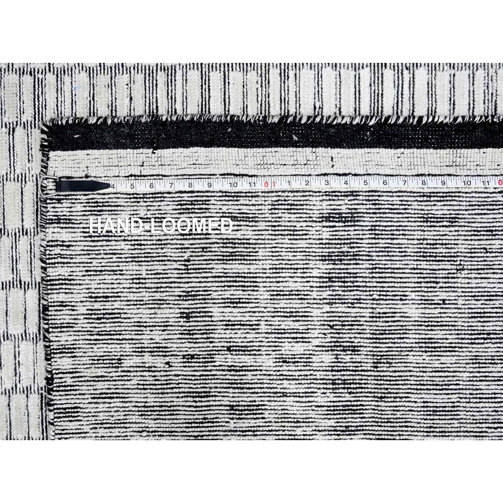 12'2"x18' Snow White And Asphalt Black, 100% Wool, Hand Loomed, Modern Textured And Roman Tile Design, Oversized Oriental Rug FWR507516