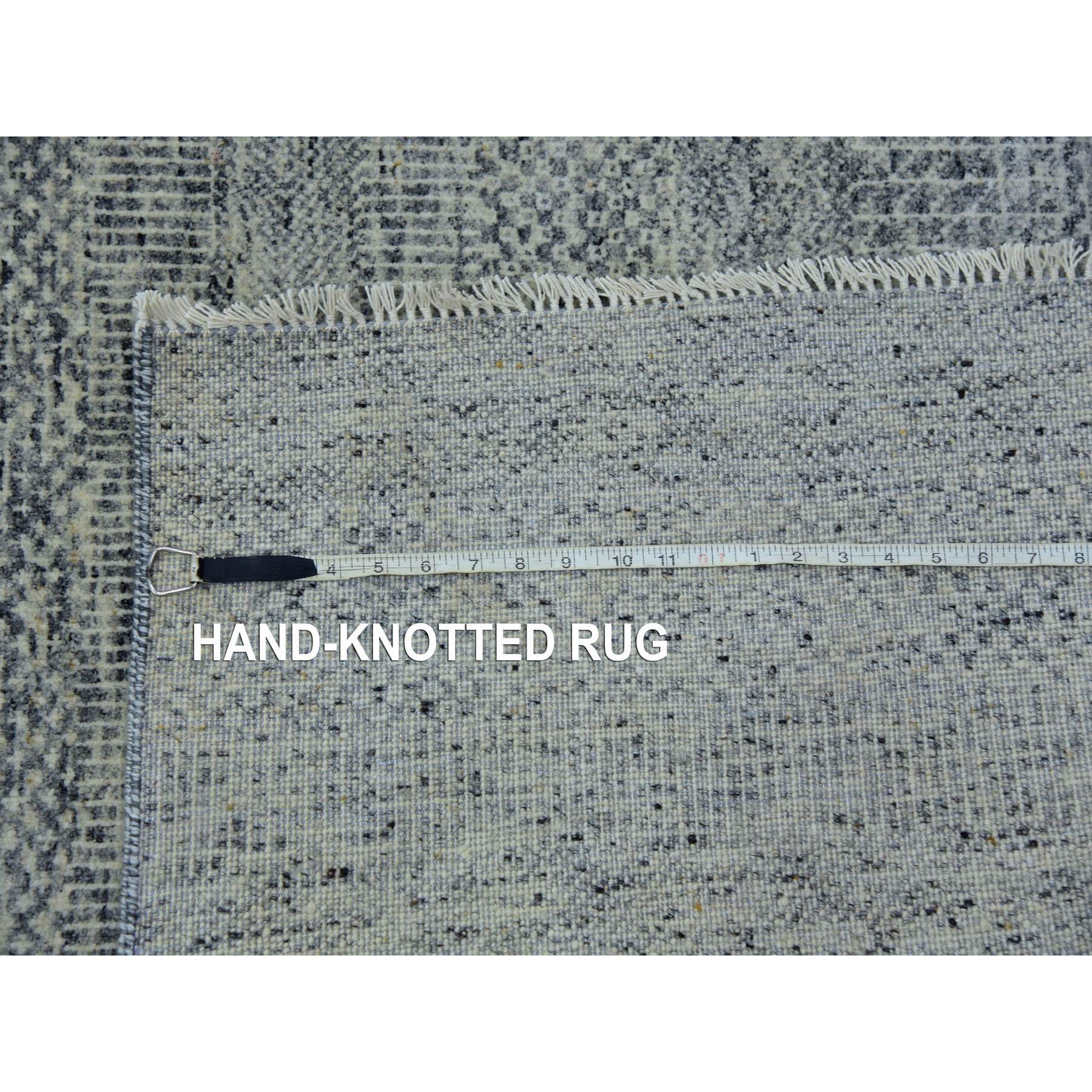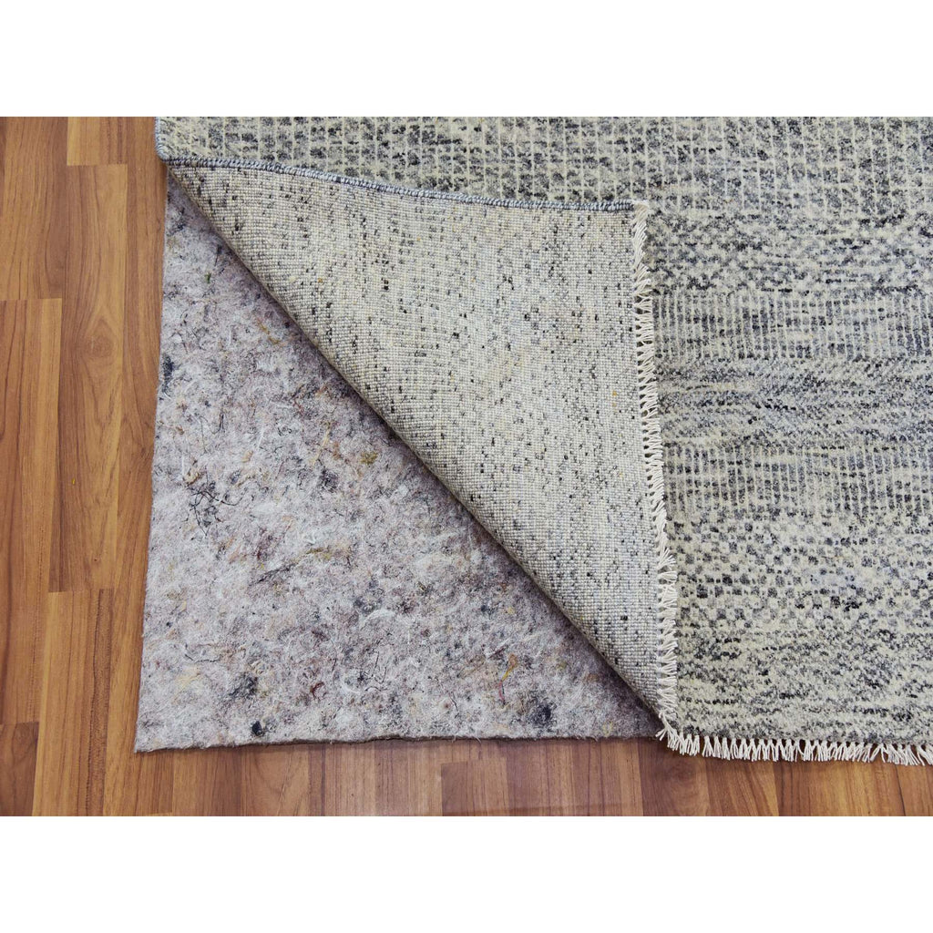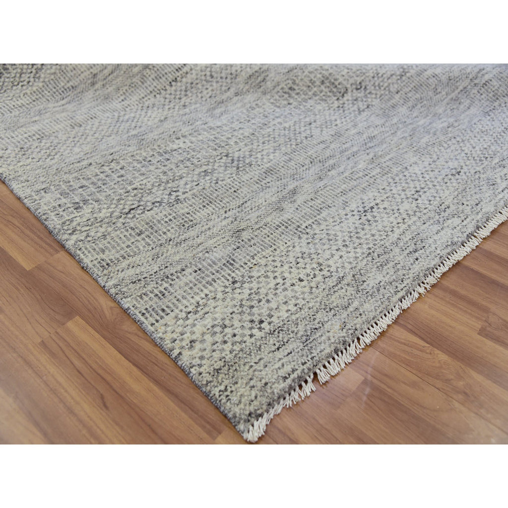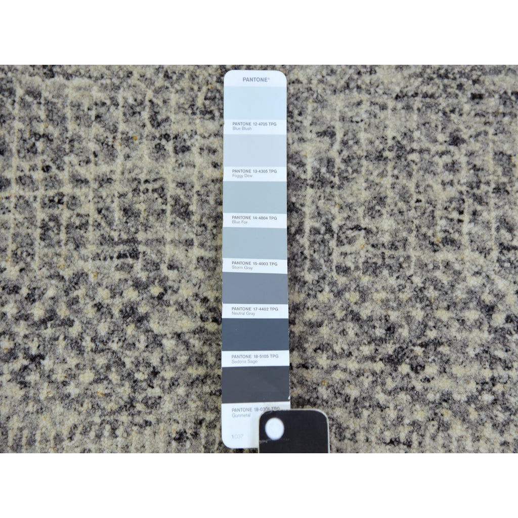 12'2x15'4" Ice Cube Gray, Pure Undyed Wool Modern Grass Tone On Tone Design, Oversized Hand Knotted Oriental Rug FWR478428