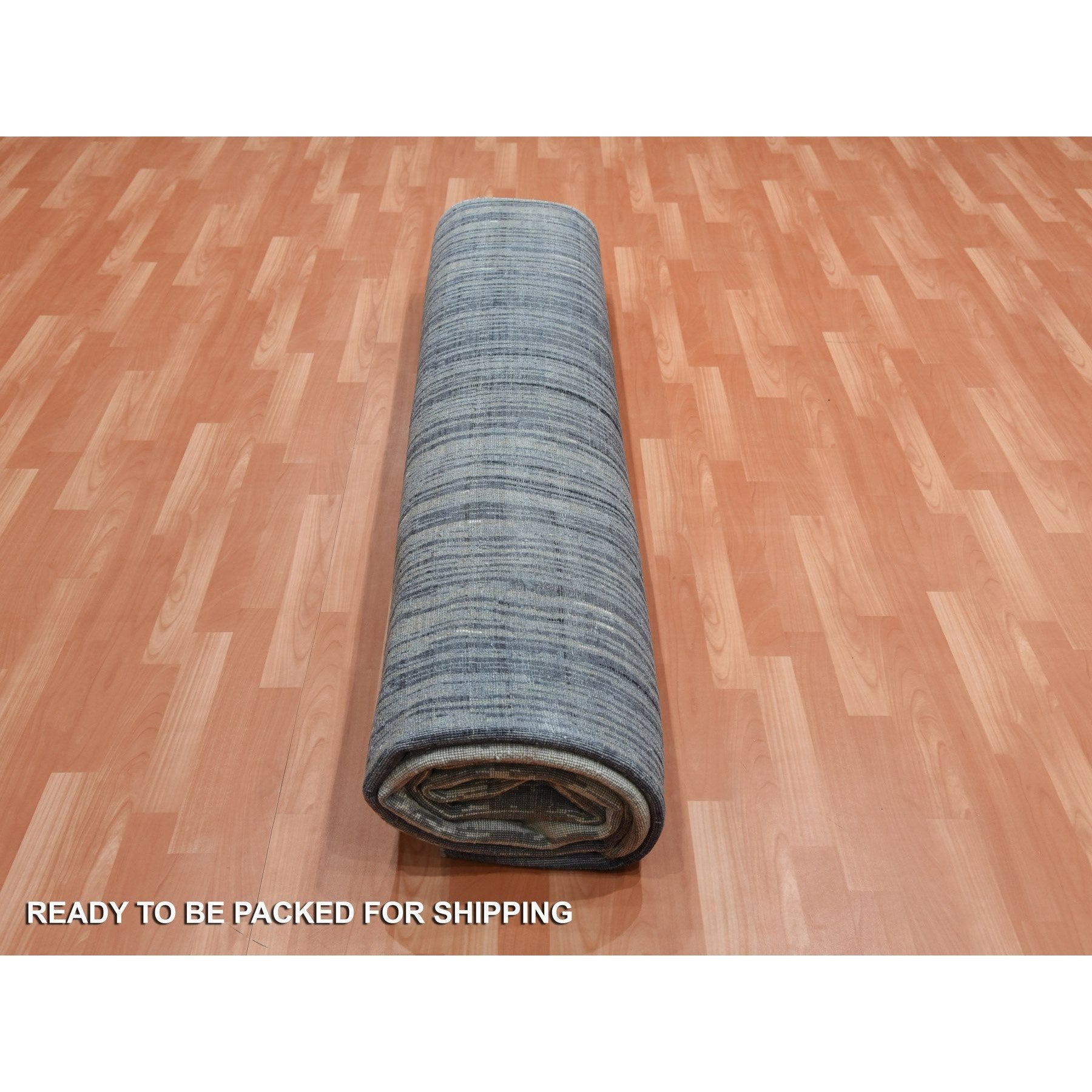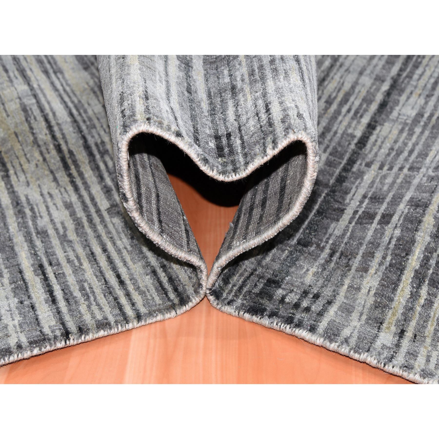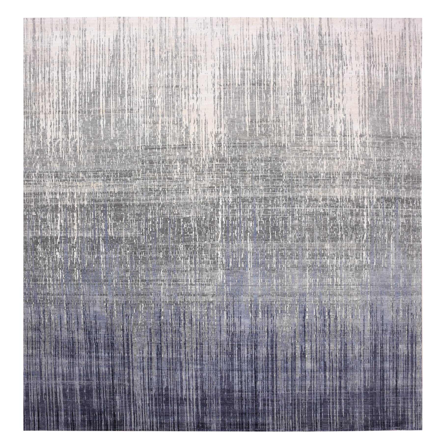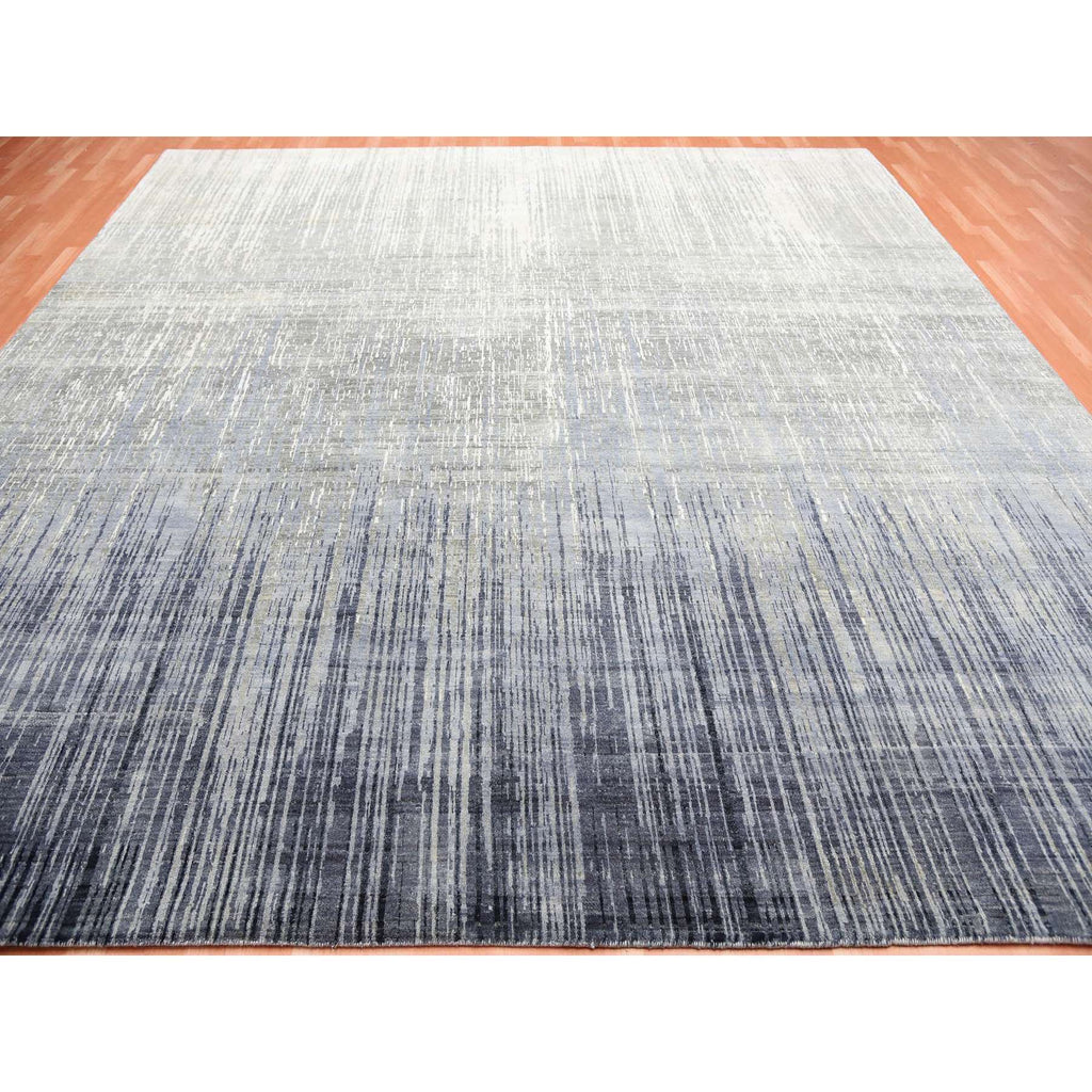 12'3"x12'1" Gray And Black Modern Ombre Design Hand Knotted Densely Woven Pure Wool Square Oriental Rug FWR450708