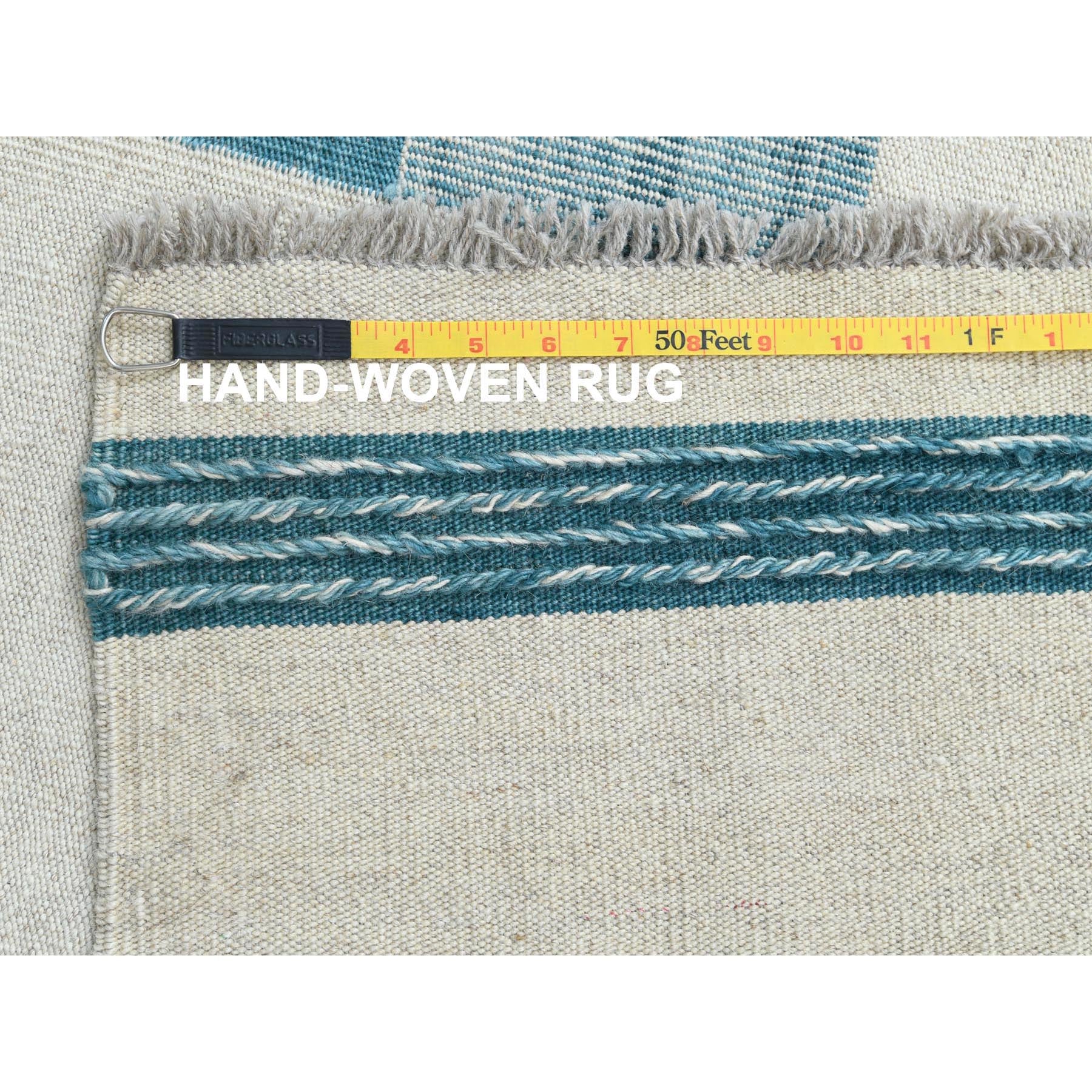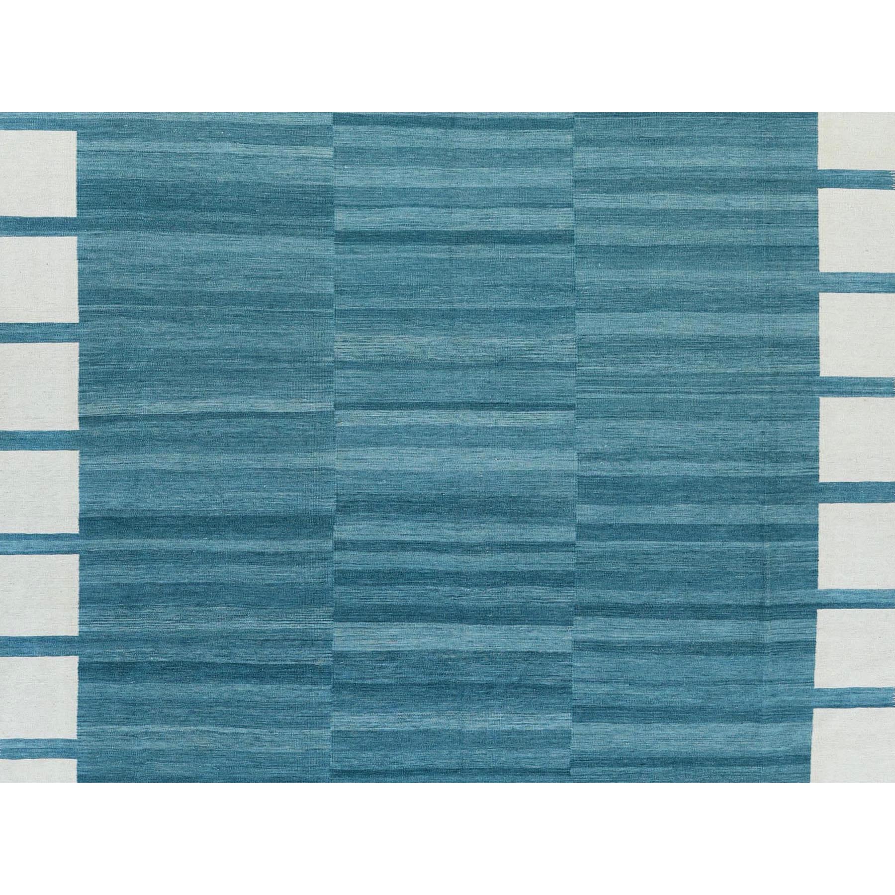 12'3"x15' Aquamarine Stripe Design Hand Woven Kilim Flat Weave Handspun Wool Reversible Oriental Oversize Rug FWR360312