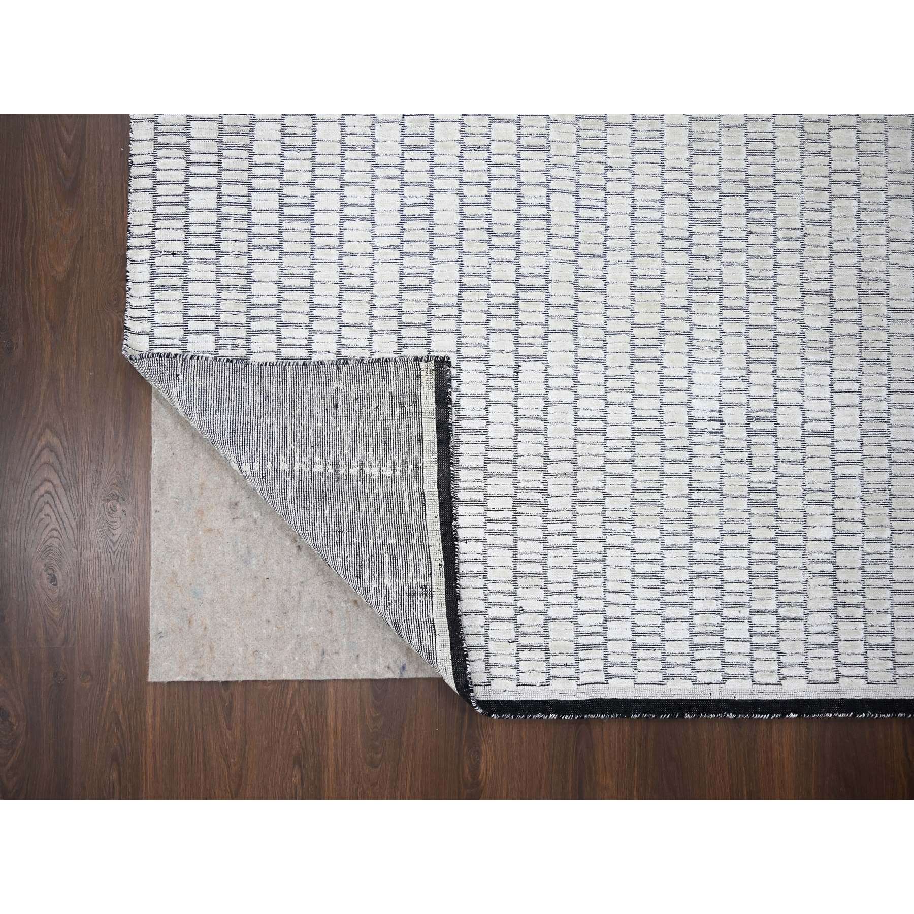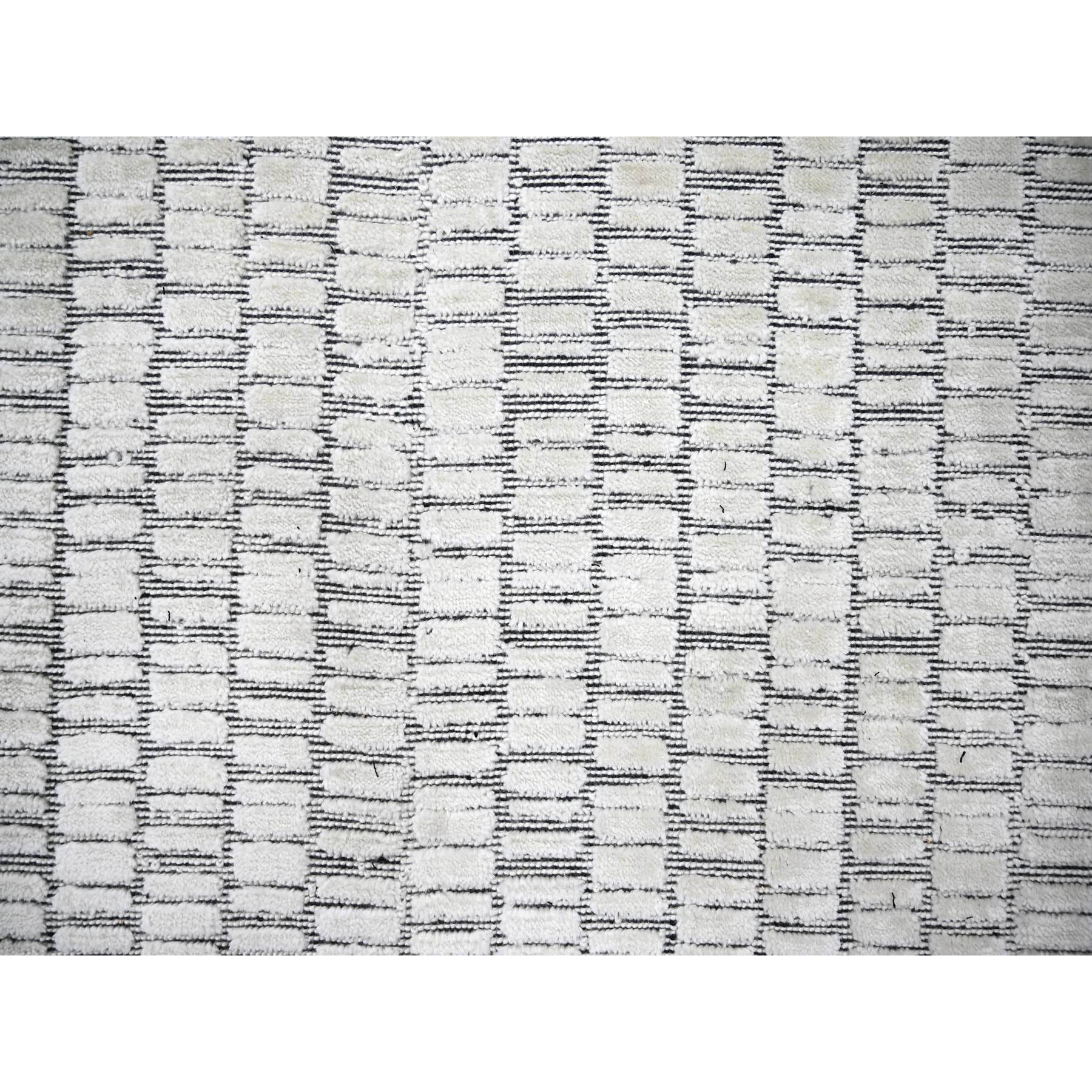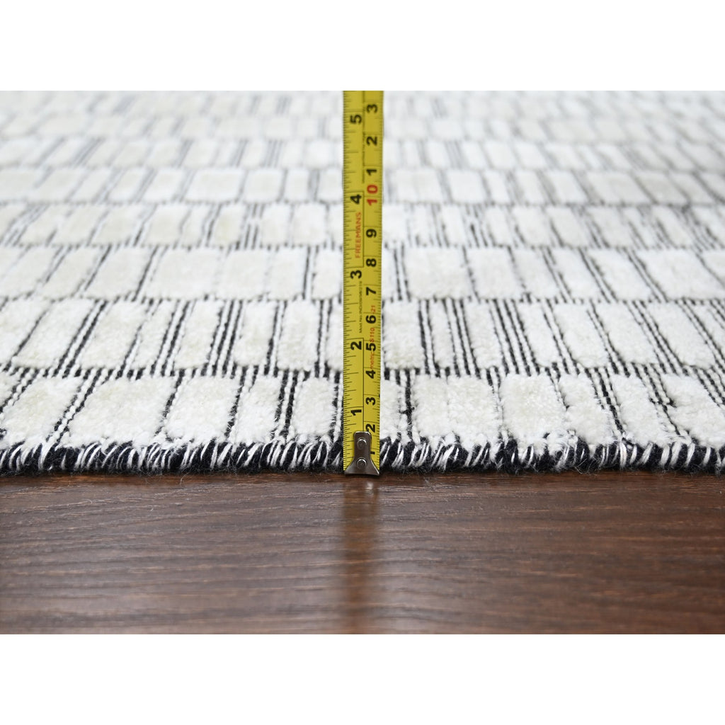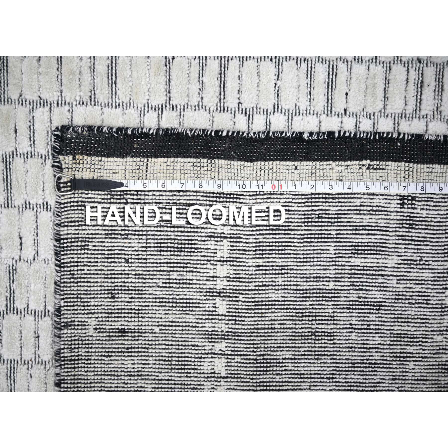 12'4"x15' Ivory And Black, Modern Textured And Roman Floor Design, Wool And Plant Based Silk, Hand Loomed Oversized Oriental Rug FWR505020