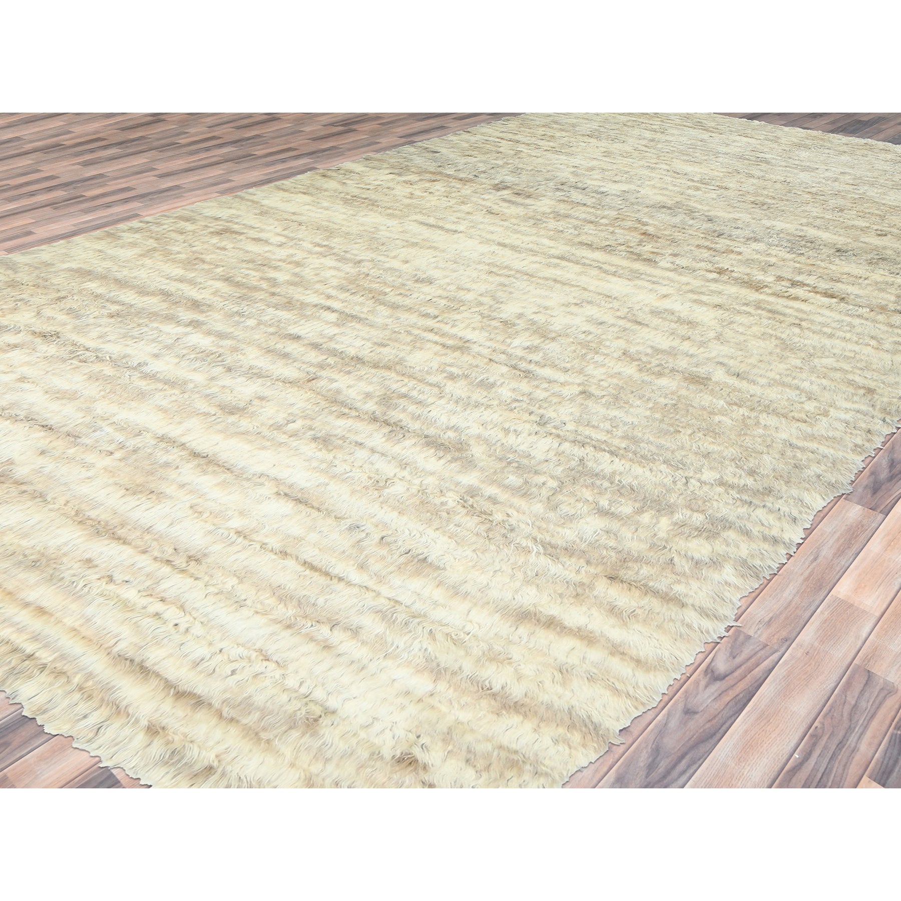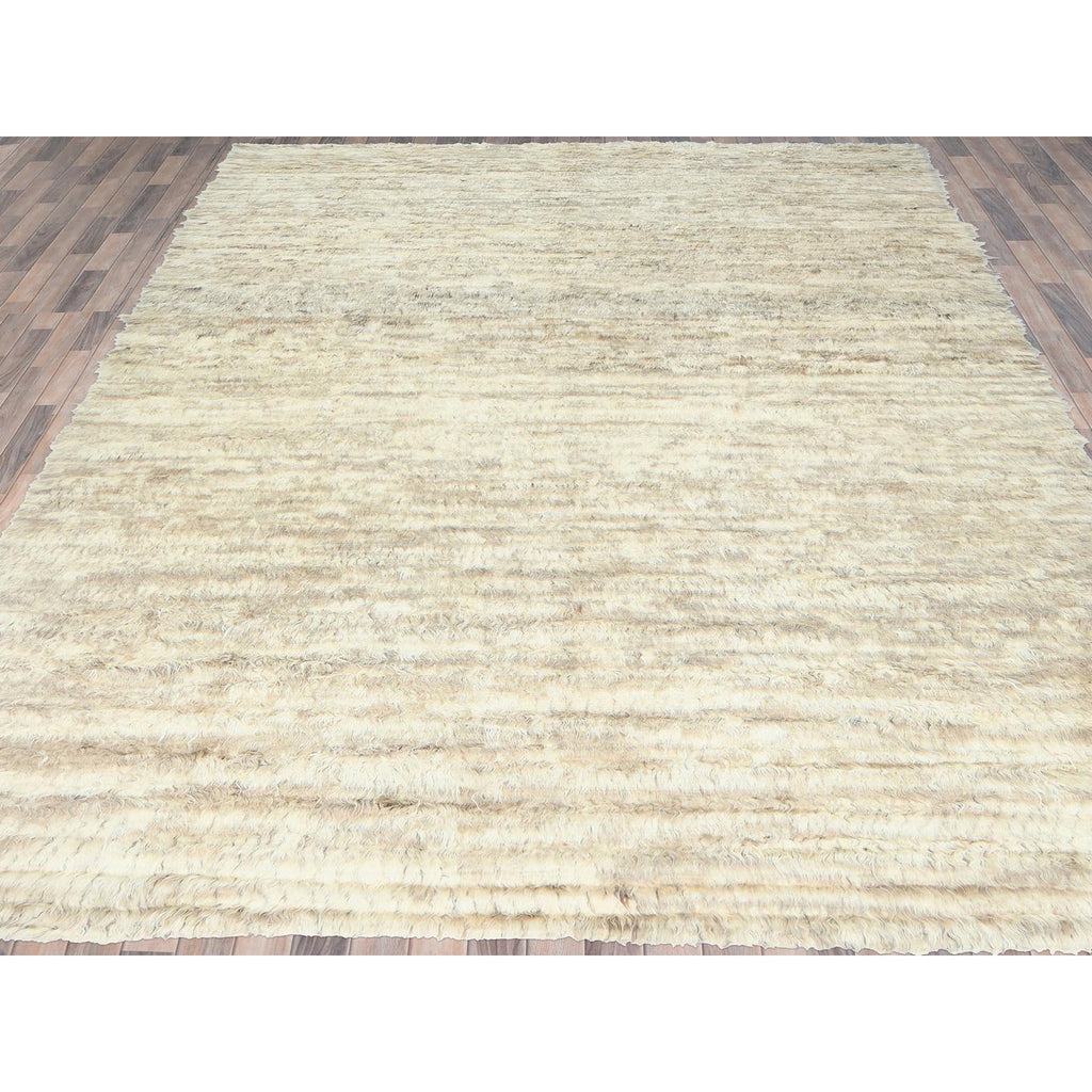 12'4"x18'1" Ivory, Natural Dyes Pure Wool, Hand Knotted Ben Ourain Moroccan Berber Shilhah Design, Oversized Oriental Rug FWR497922