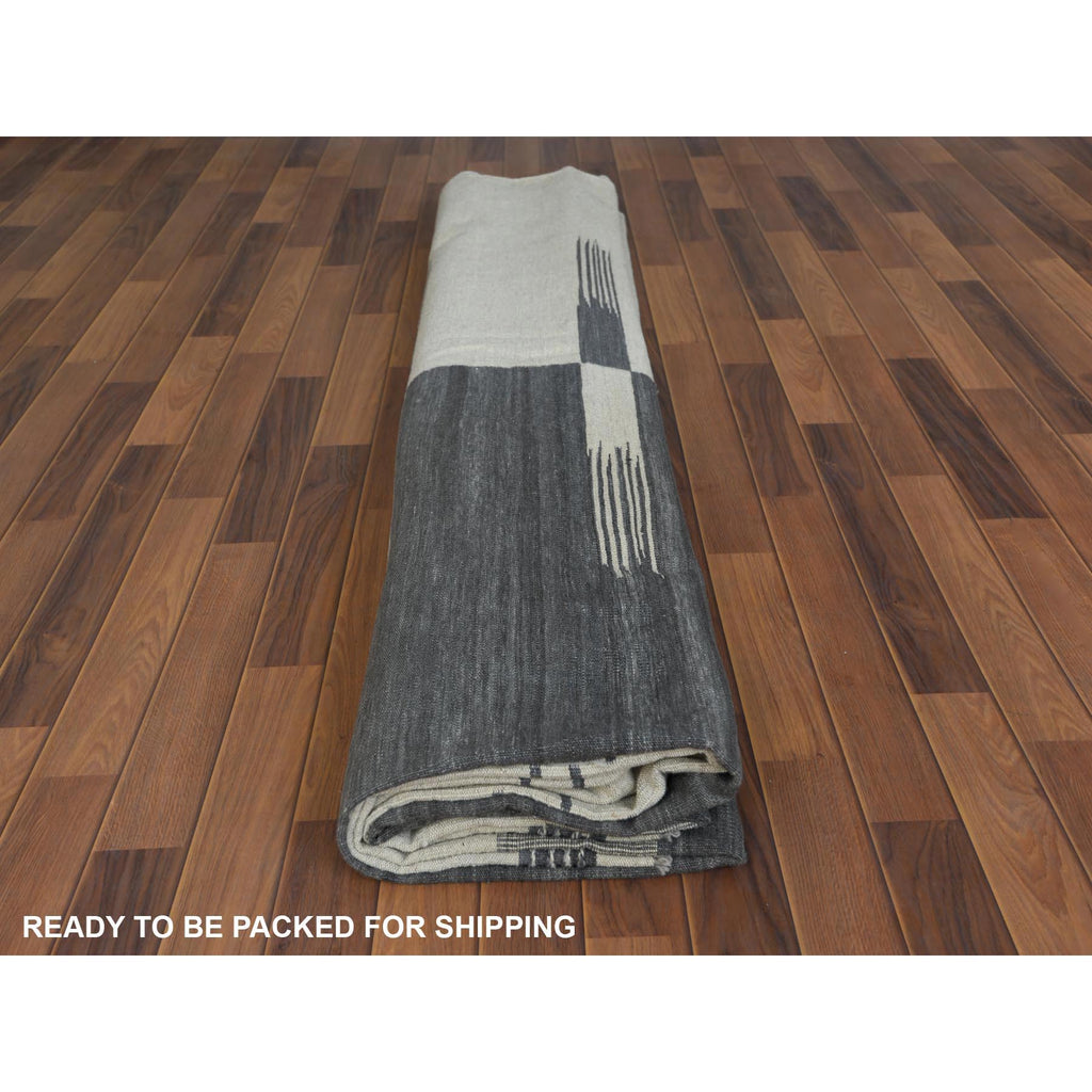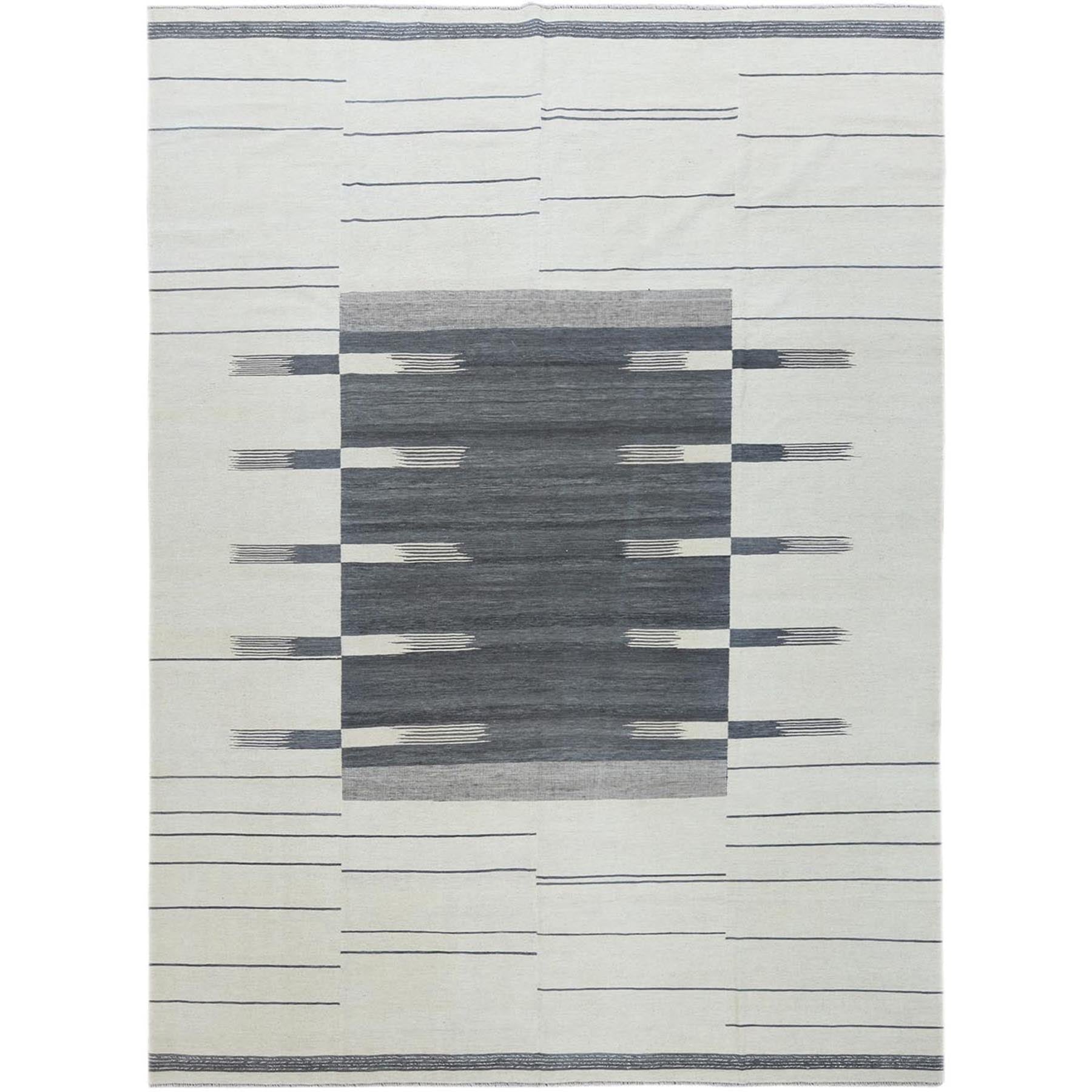 12'5"x14'10" Flat Weave Avant-garde Stripe Design Kilim Pure Wool Hand Woven Reversible Over Size Oriental Rug FWR360744