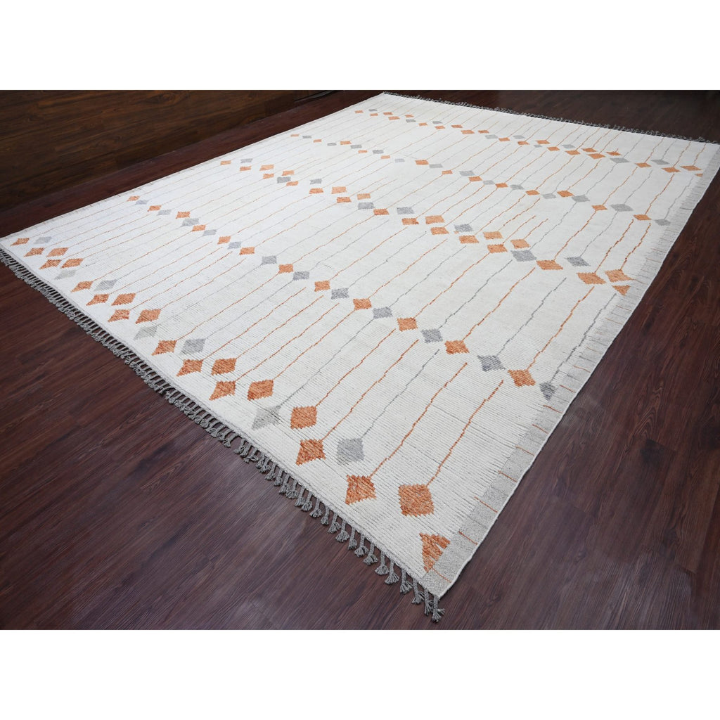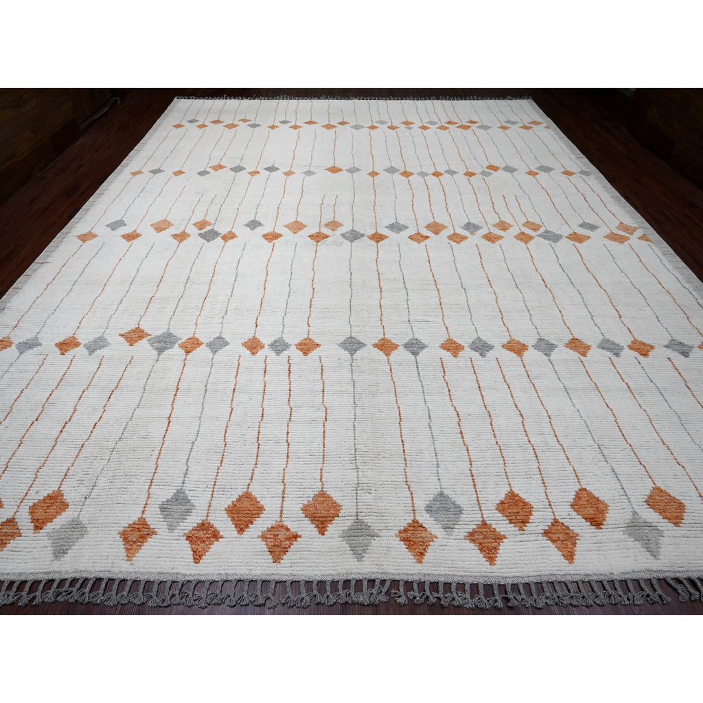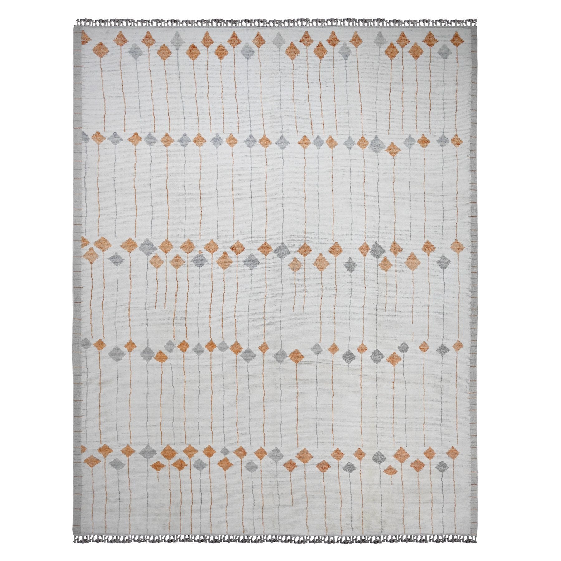 12'5"x15'2" Alabaster White, Moroccan Weave With Flying Kite Design, Tone On Tone, Soft Wool, Hand Knotted, Textured Pile, Oversized, Oriental Rug FWR123360