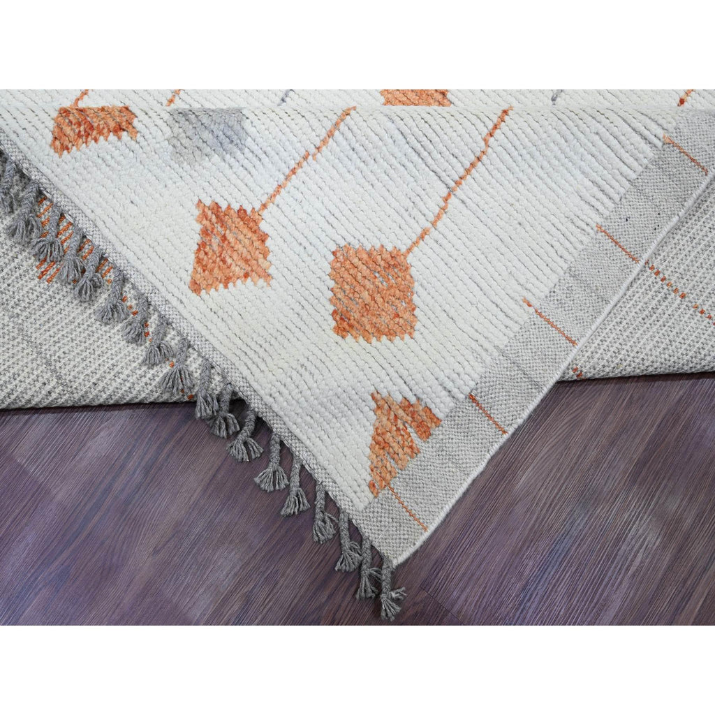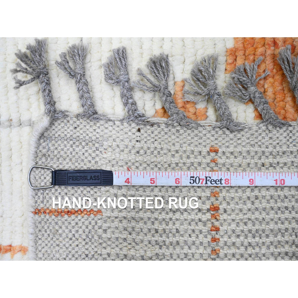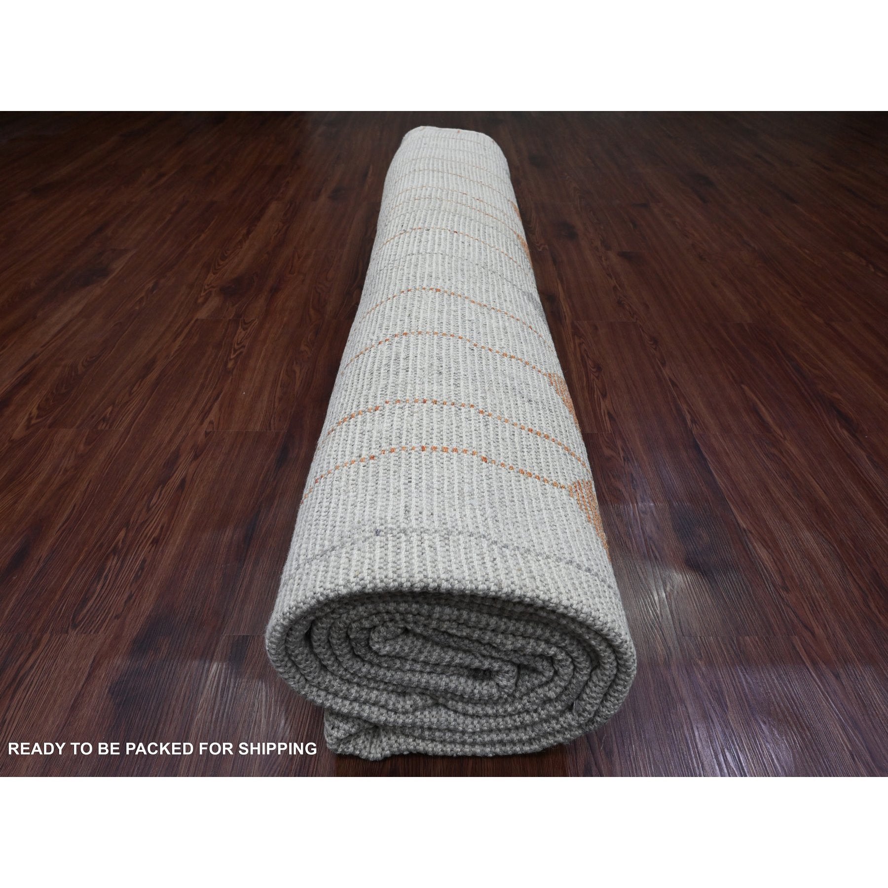 12'5"x15'2" Alabaster White, Moroccan Weave With Flying Kite Design, Tone On Tone, Soft Wool, Hand Knotted, Textured Pile, Oversized, Oriental Rug FWR123360