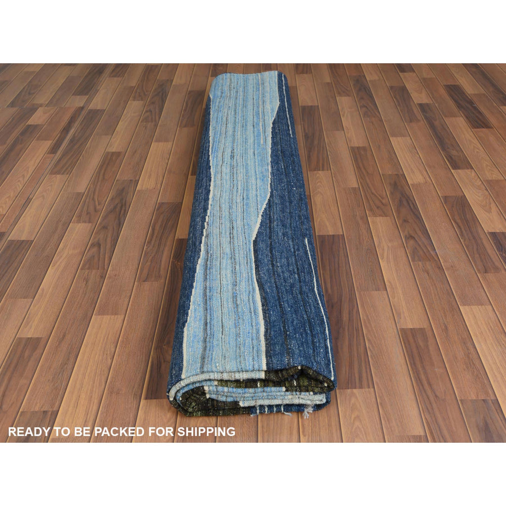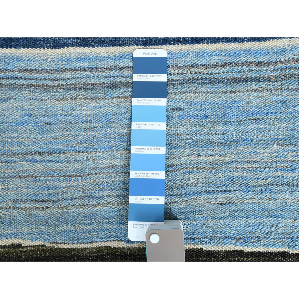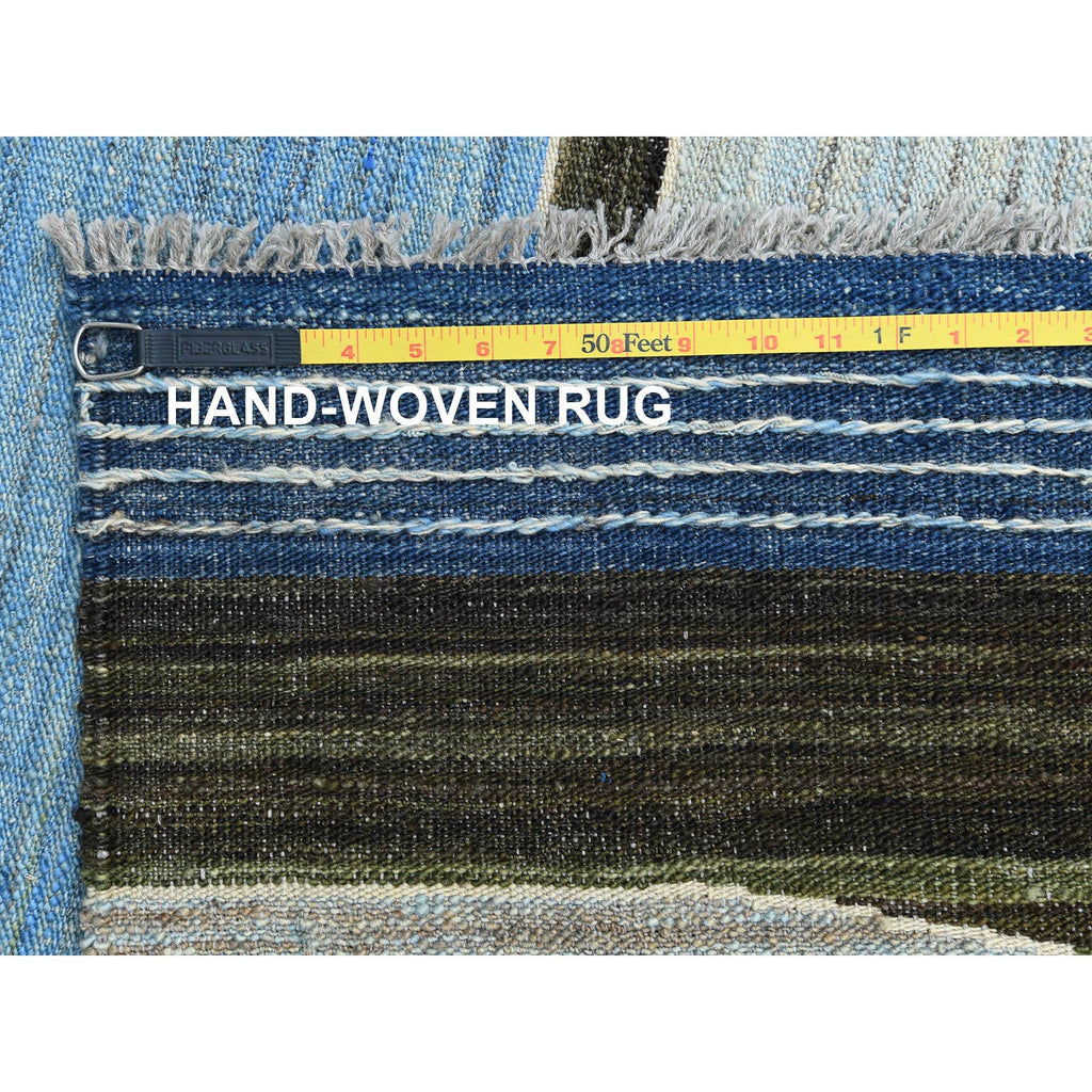12'5"x15' Hand Woven Brown And Blue Mountain Design Flat Weave Kilim Pure Wool Over Size Reversible Oriental Rug FWR360630