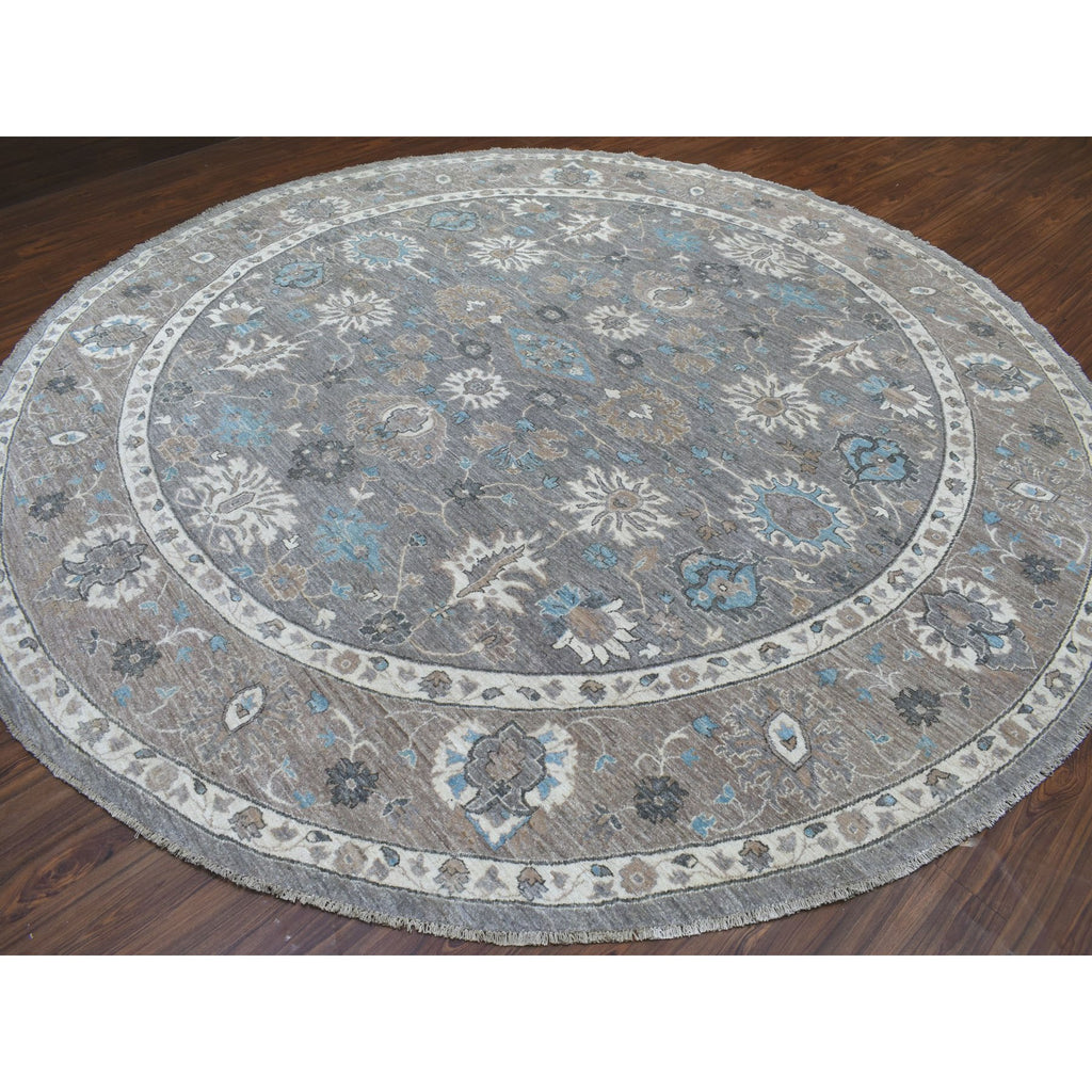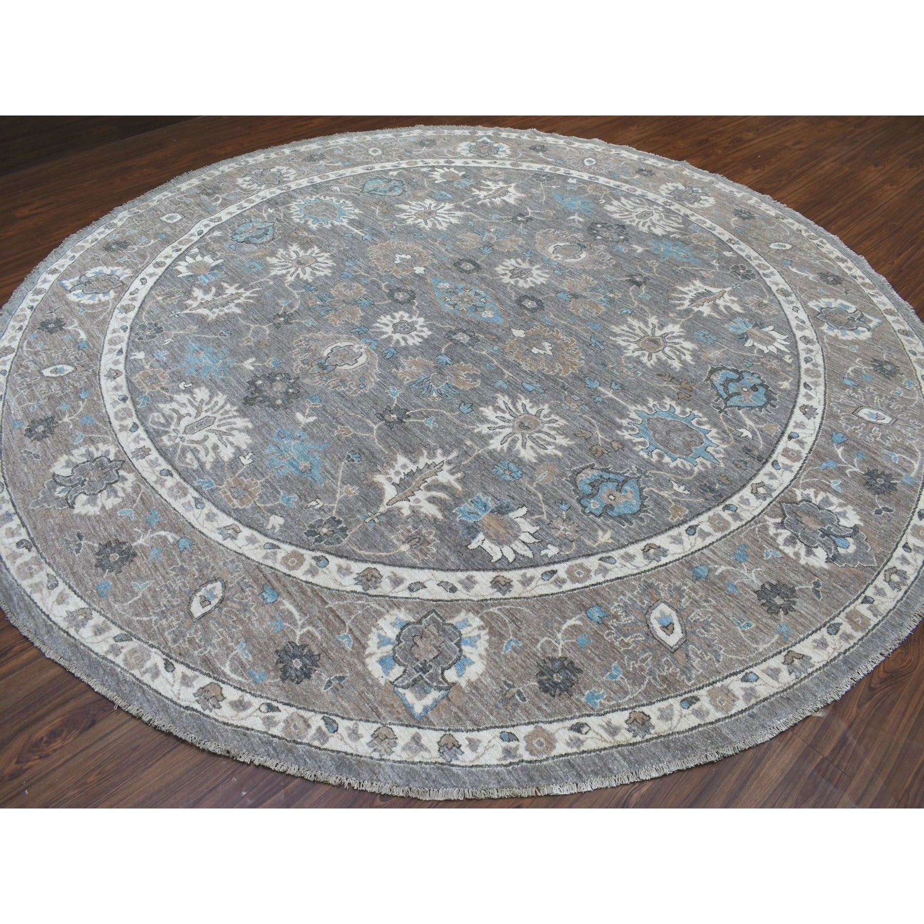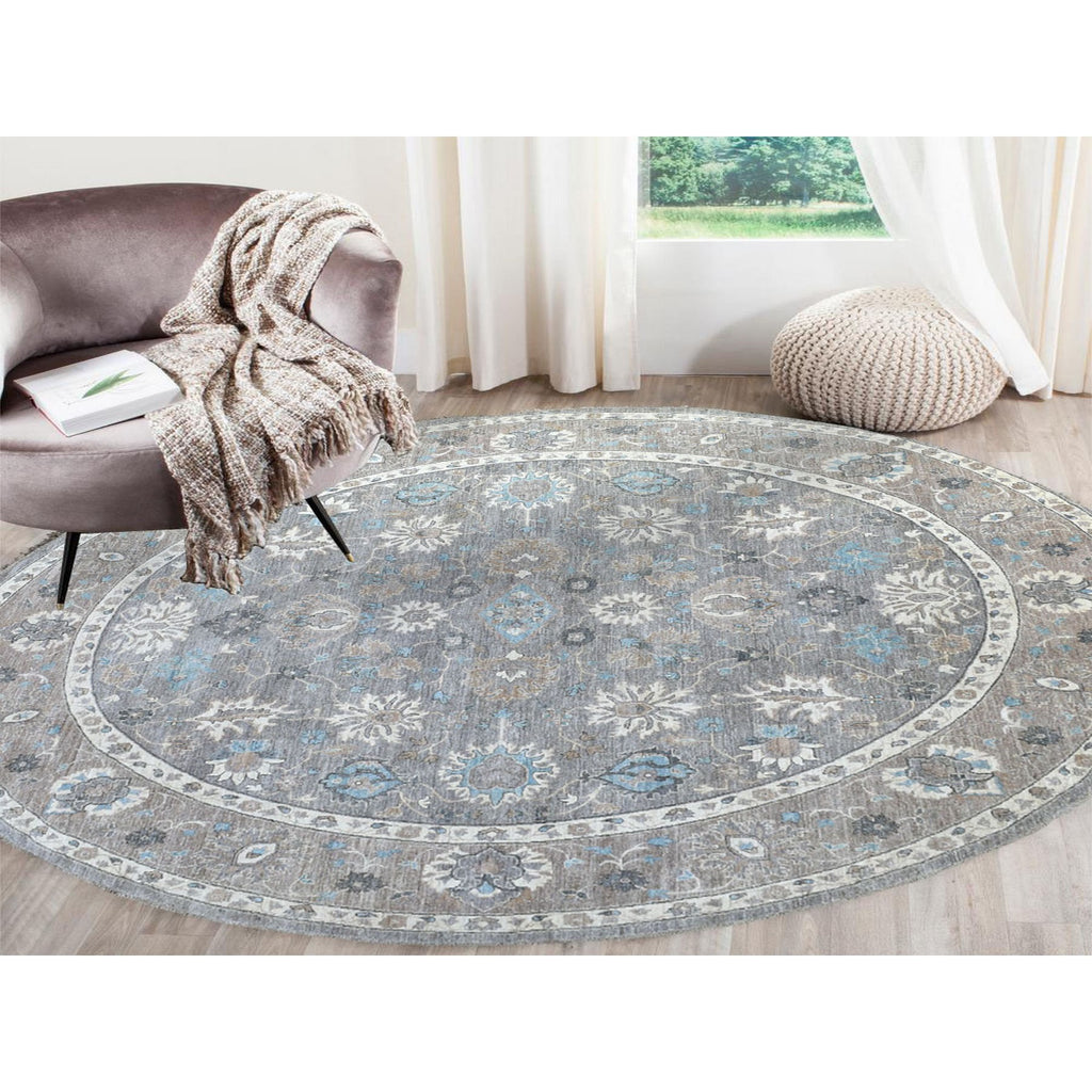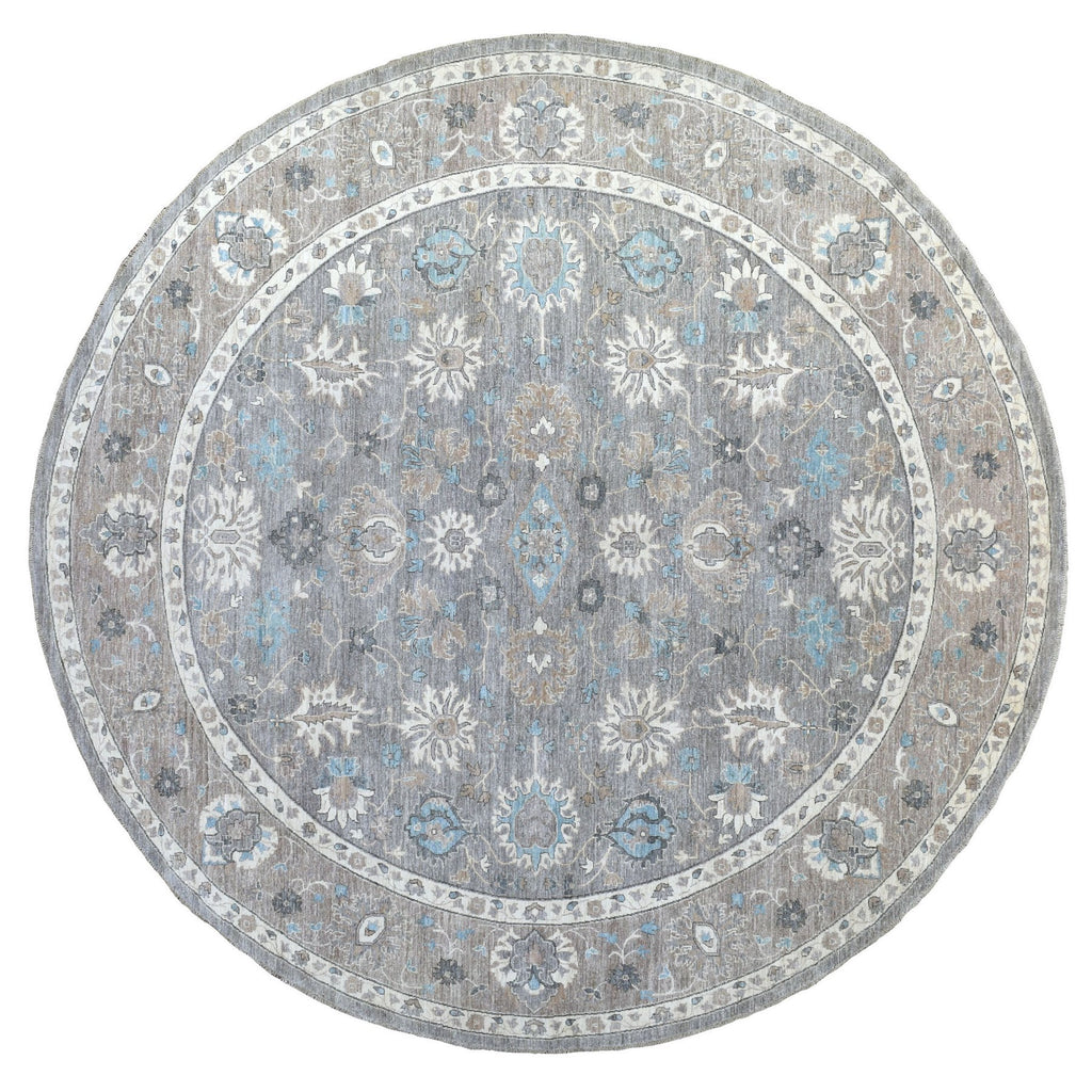 12'x12' All New Hand Knotted Soft Velvety Wool Fine Peshawar Silver Gray With Floral Motifs Oriental Round Rug FWR405396