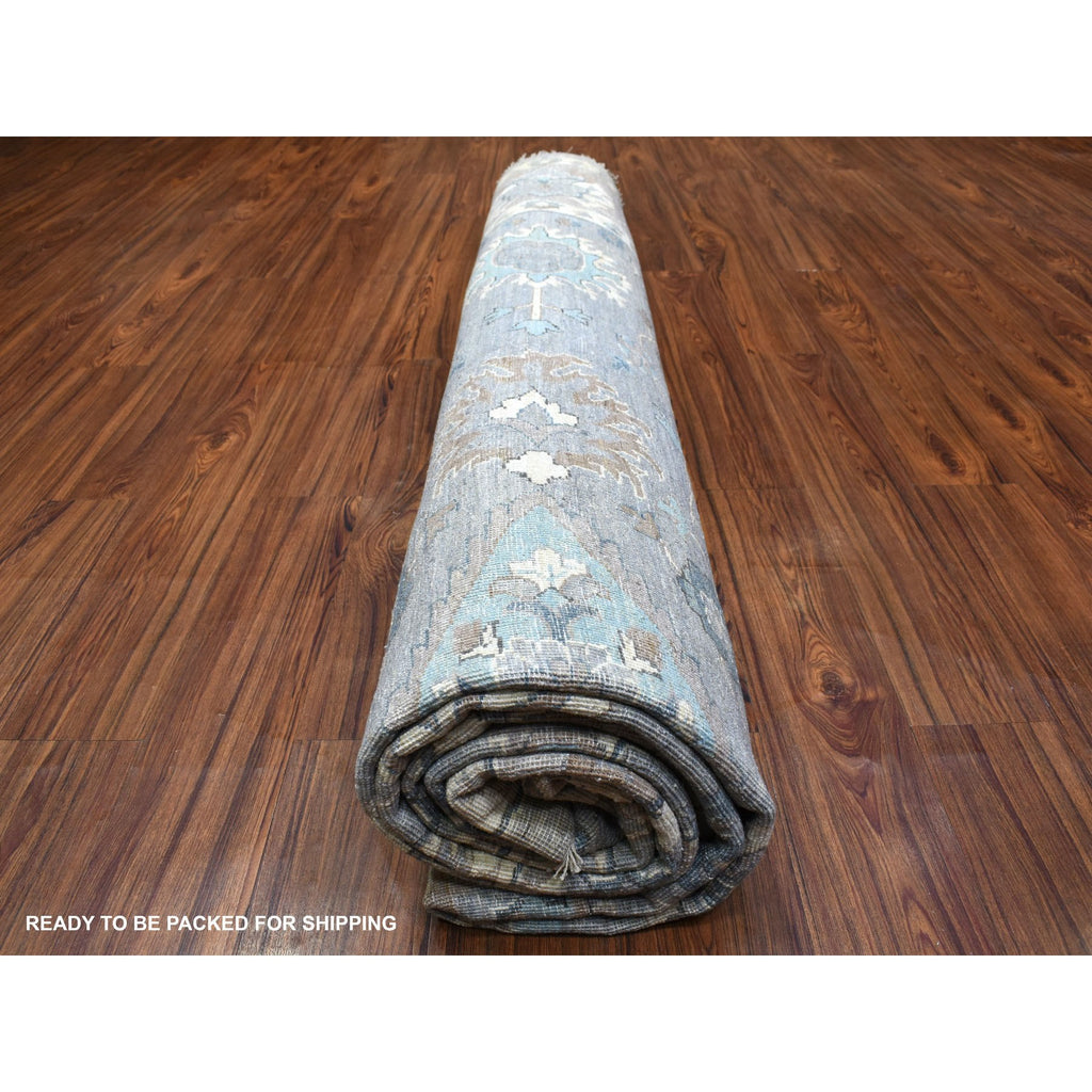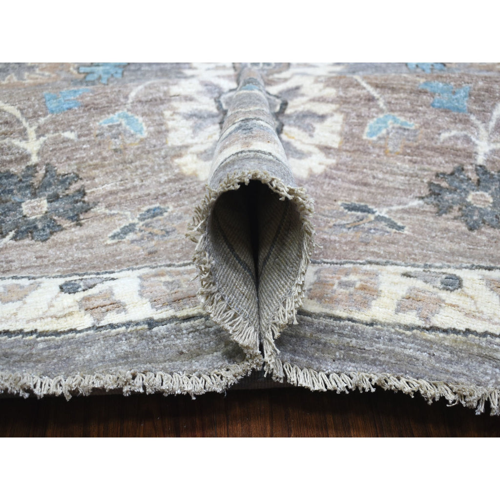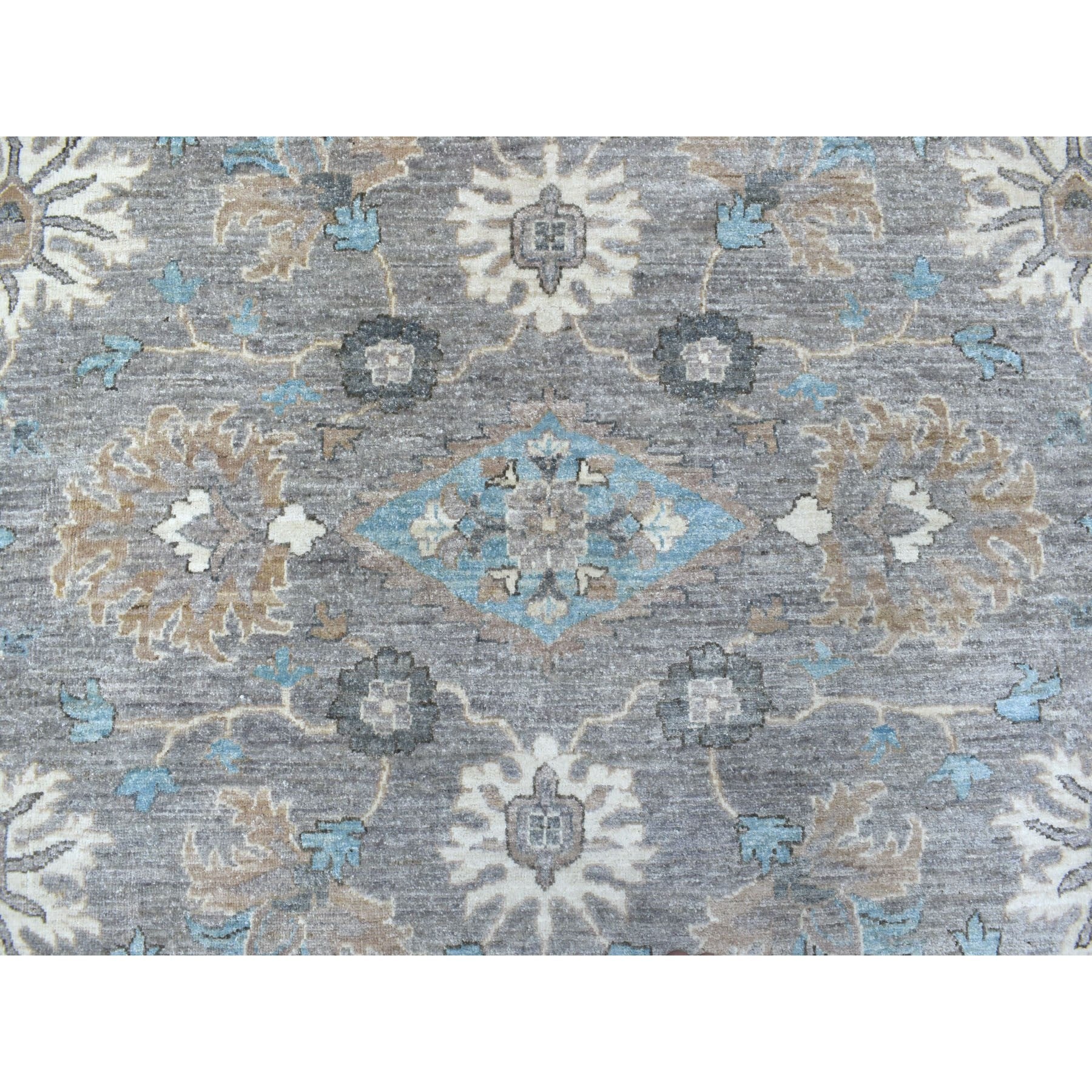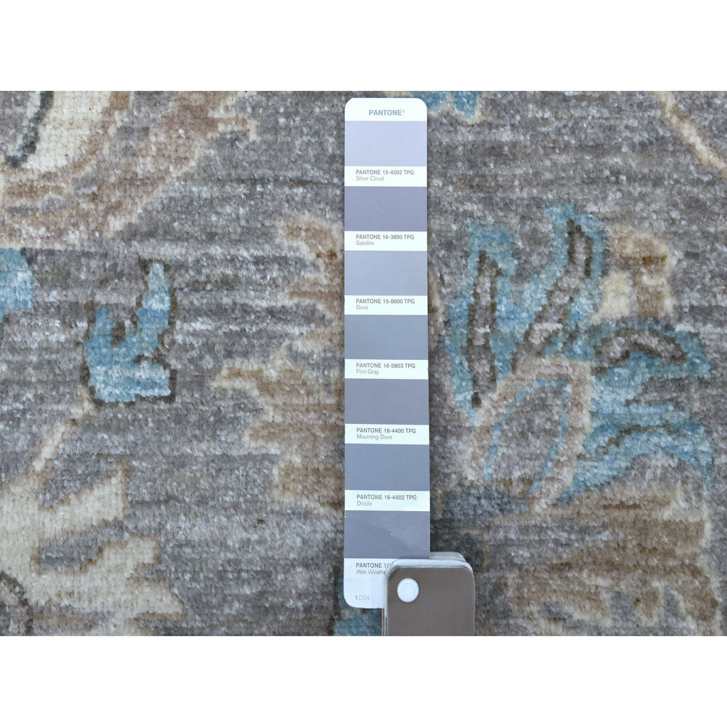 12'x12' All New Hand Knotted Soft Velvety Wool Fine Peshawar Silver Gray With Floral Motifs Oriental Round Rug FWR405396