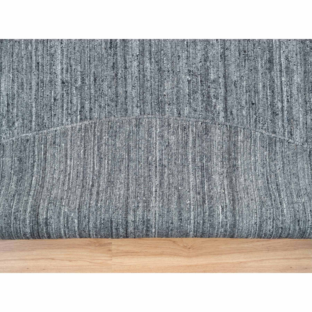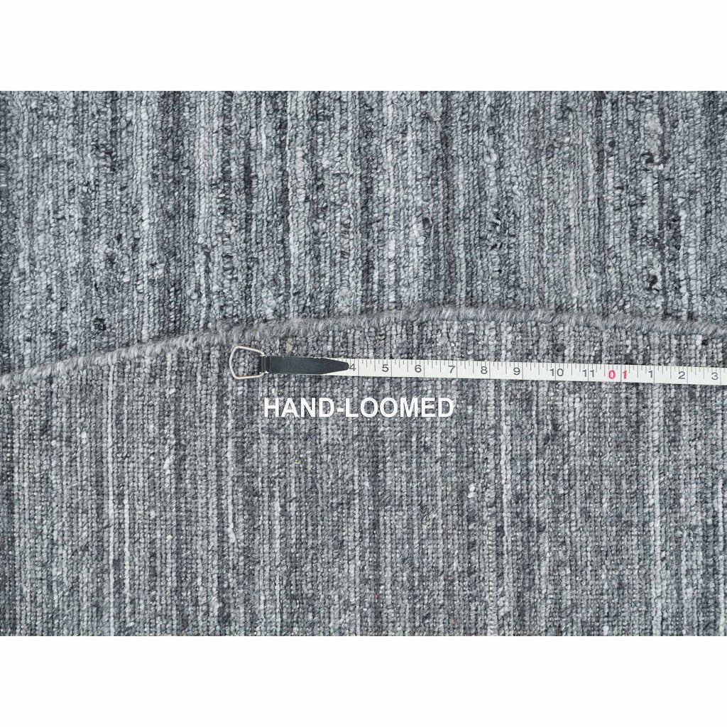 12'x12' Arsenic Gray, Hand Loomed Modern Striae Design, Soft Pile Organic Wool, Round Oriental Rug FWR392502