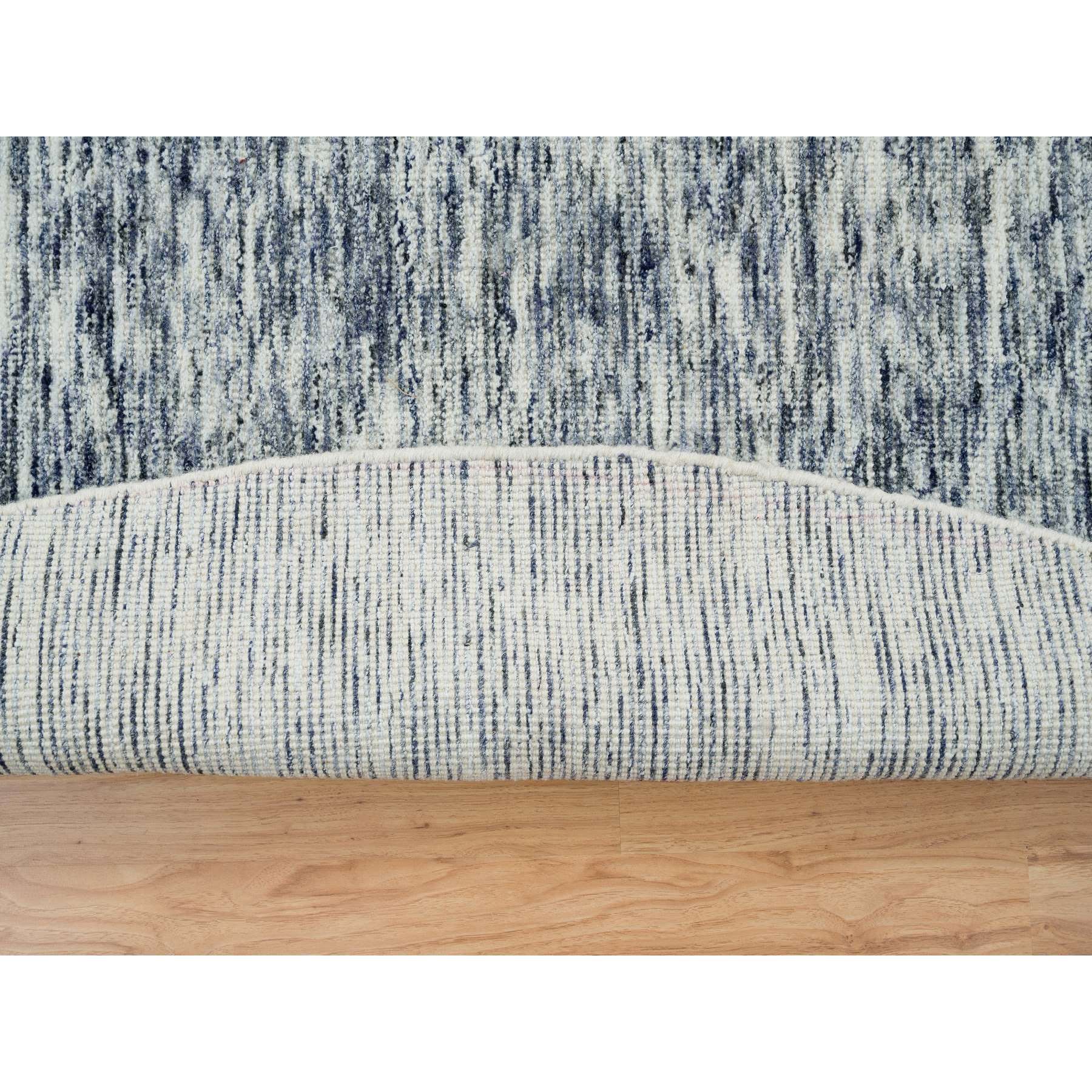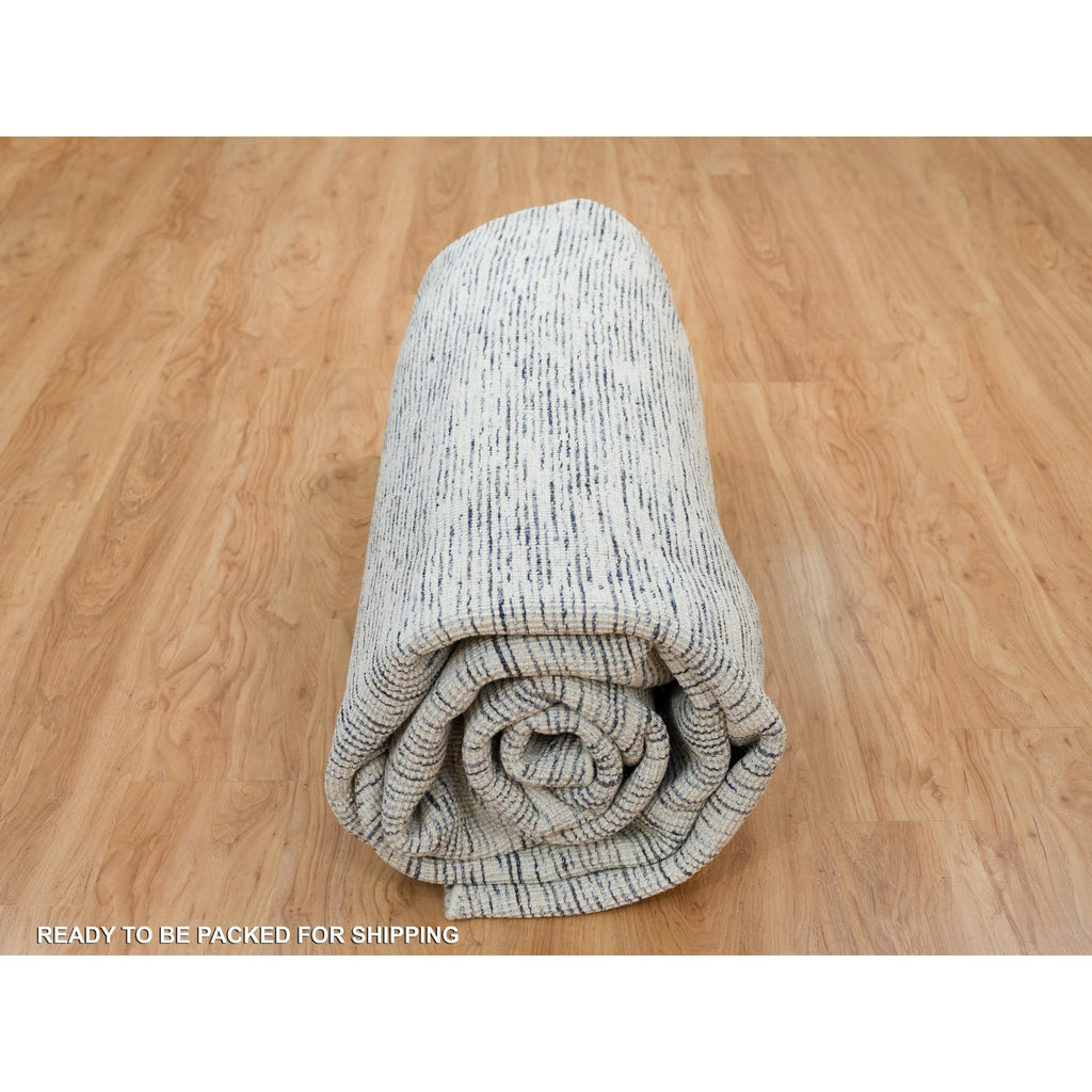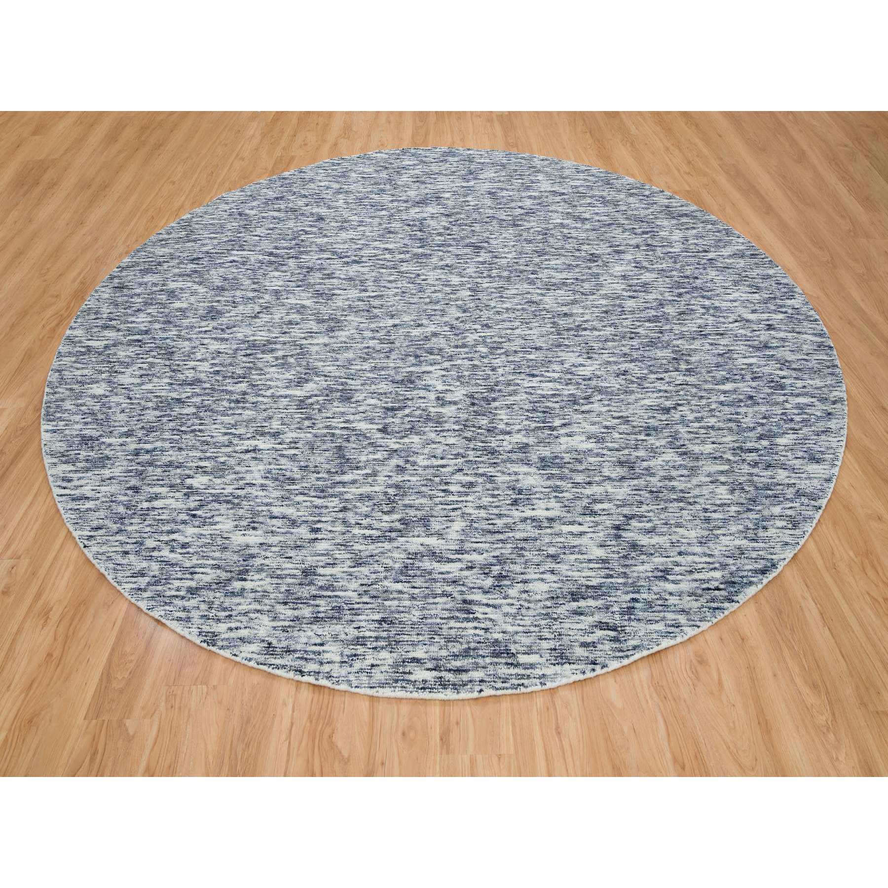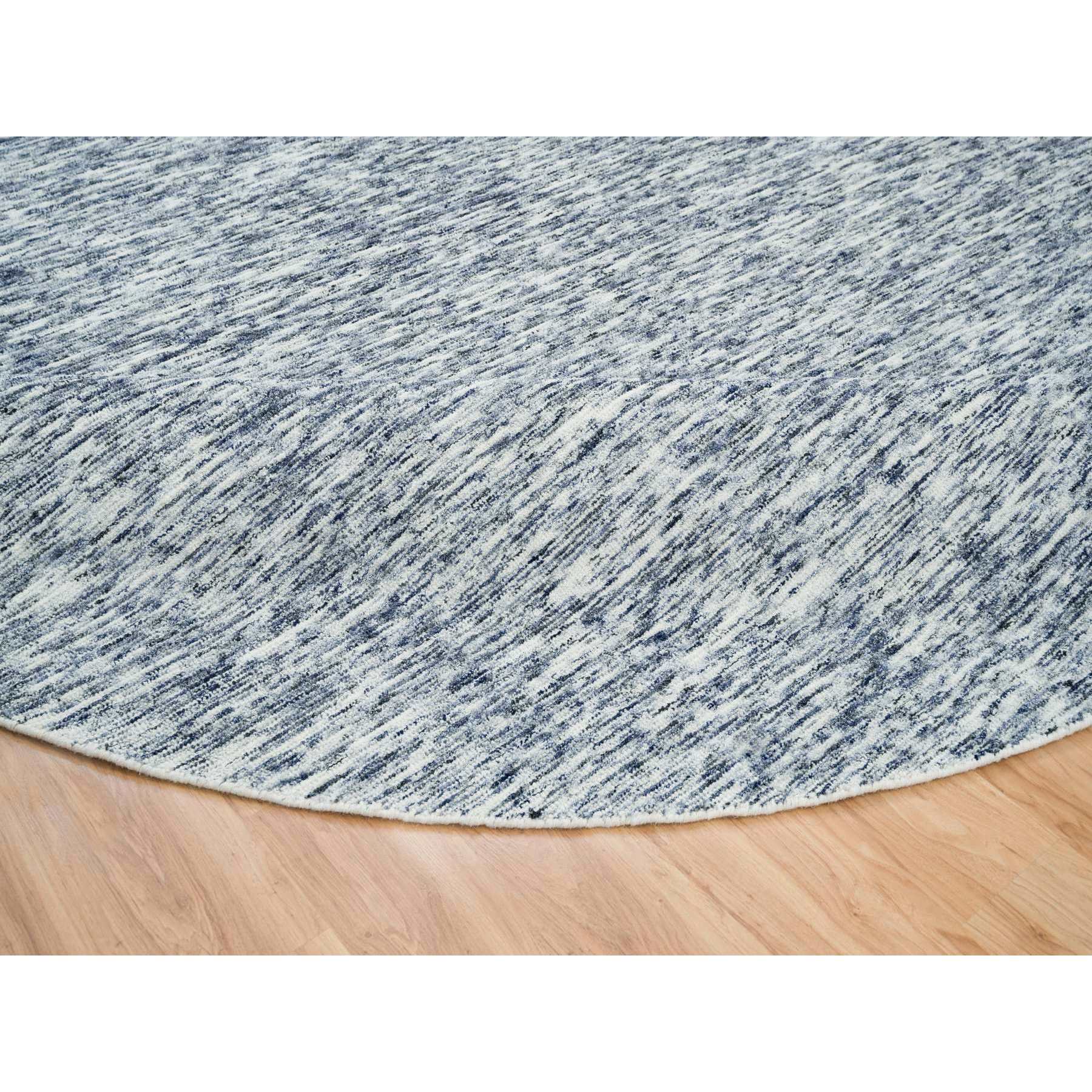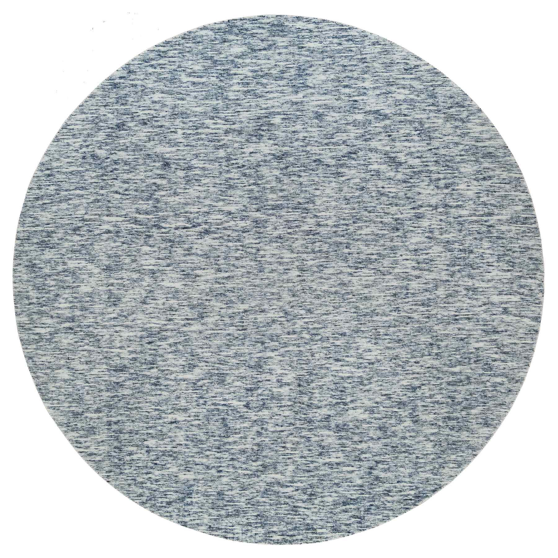 12'x12' Blue And Ivory, Modern Striae Design Soft Pile, Pure Wool Hand Loomed, Round Oriental Rug FWR391434