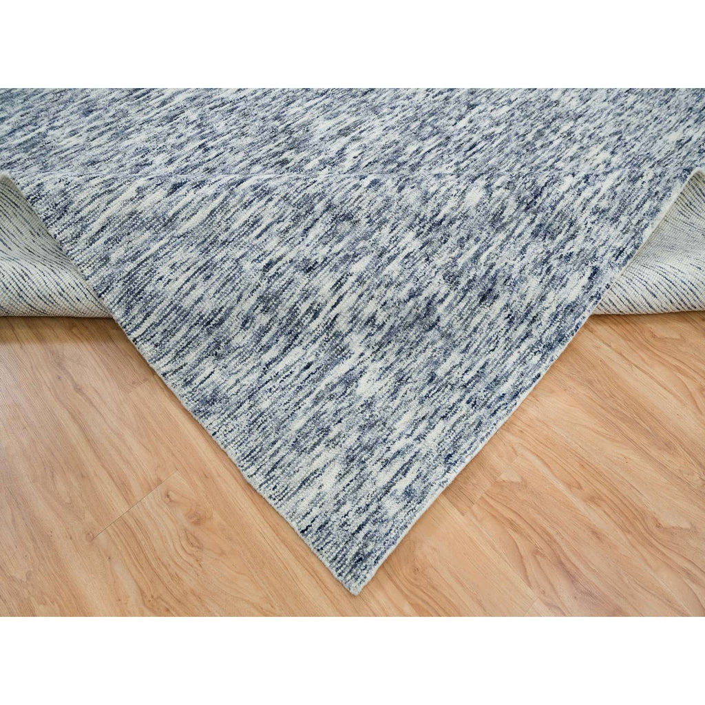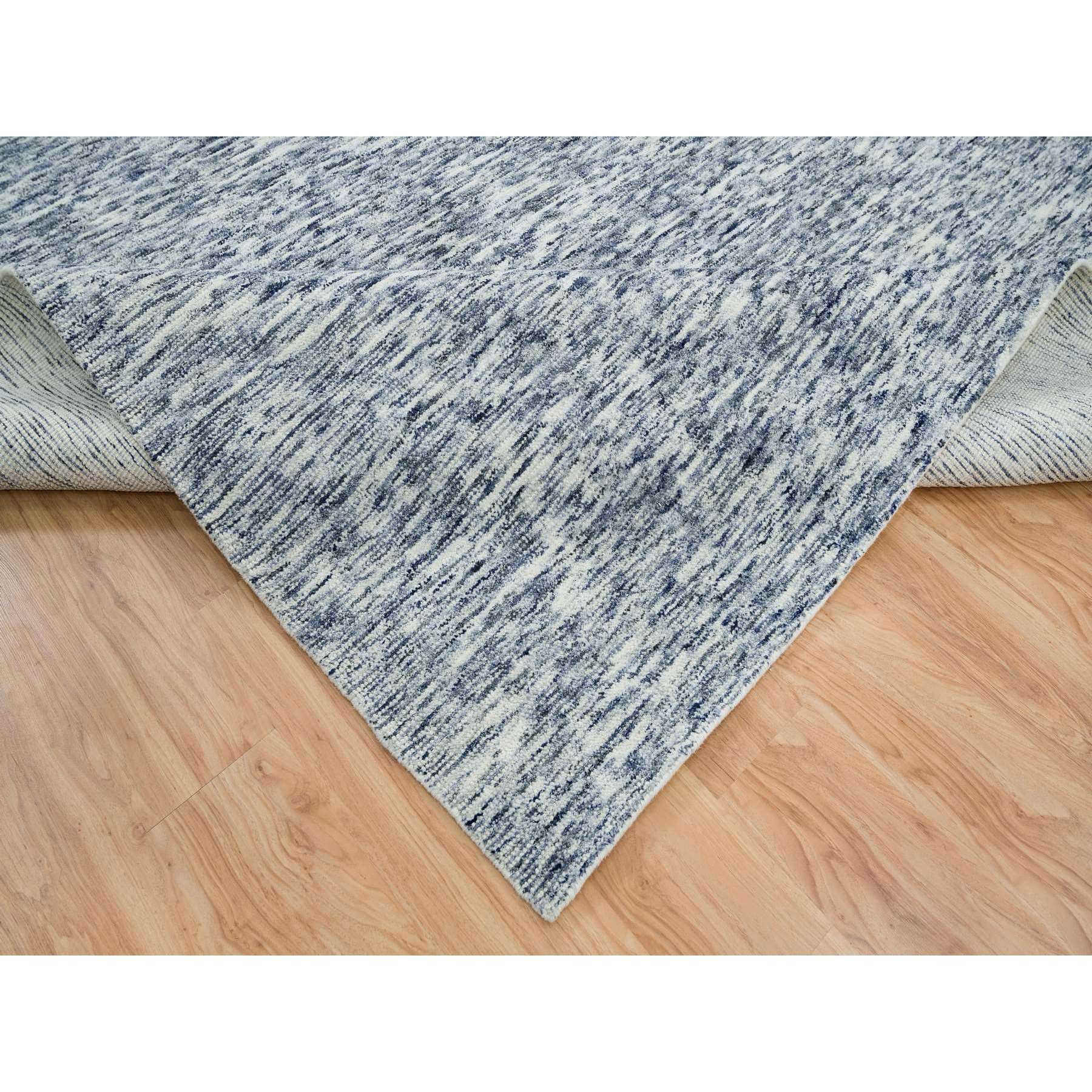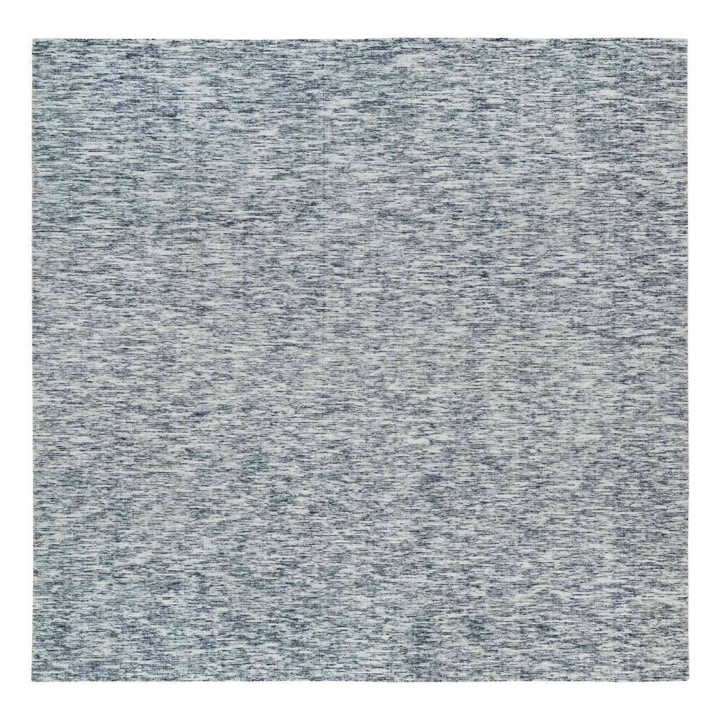 12'x12' Blue And Ivory, Soft Pile Pure Wool, Hand Loomed Modern Striae Design, Square Oriental Rug FWR391512