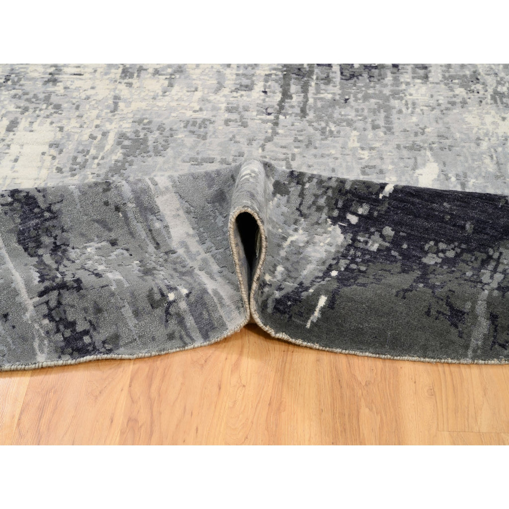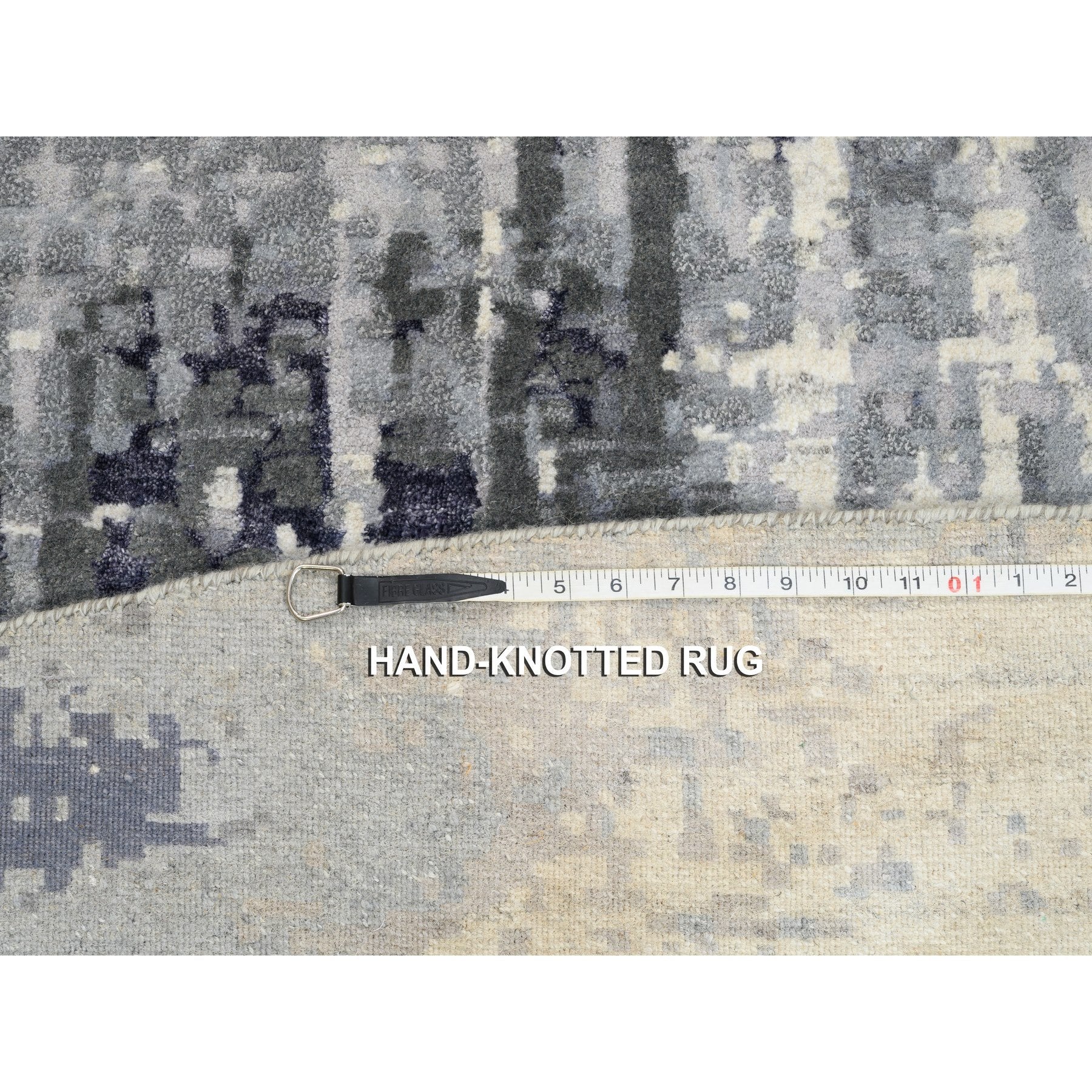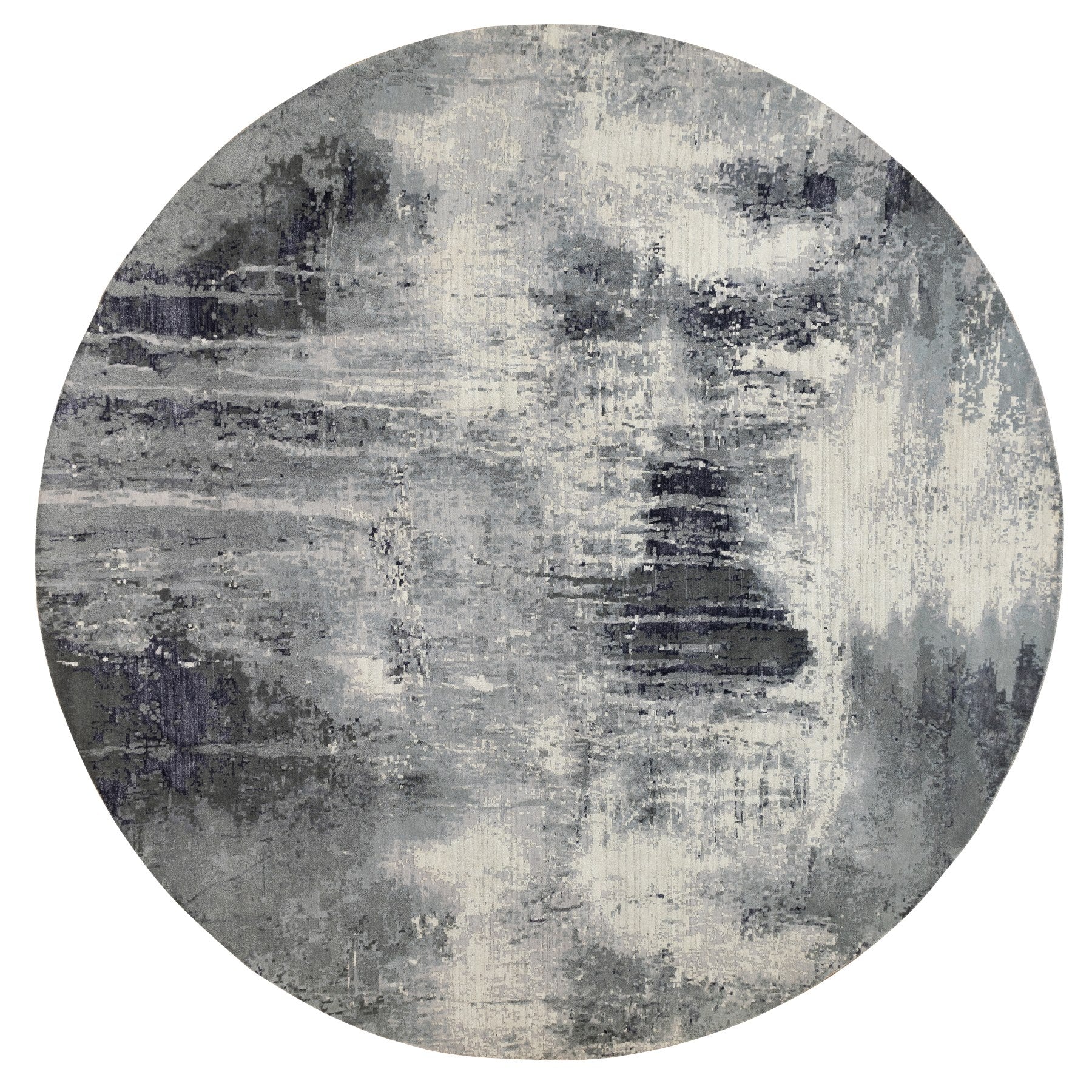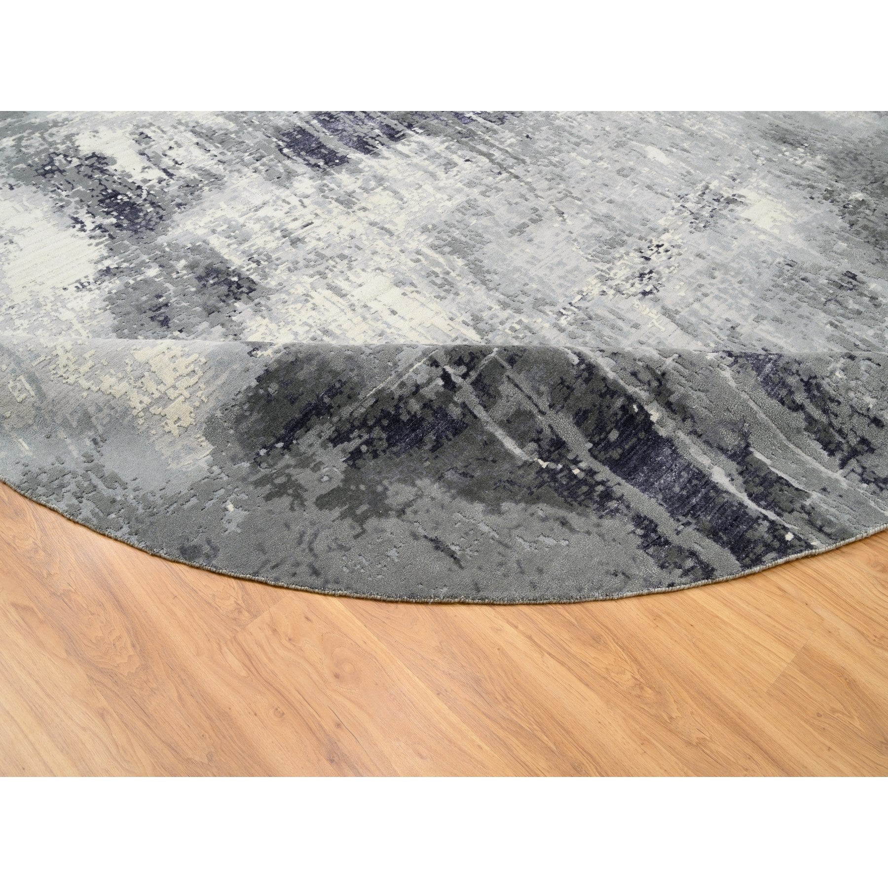 12'x12' Charcoal Black With Gray Abstract Design Wool And Silk Hand Knotted Oriental Round Rug FWR372600