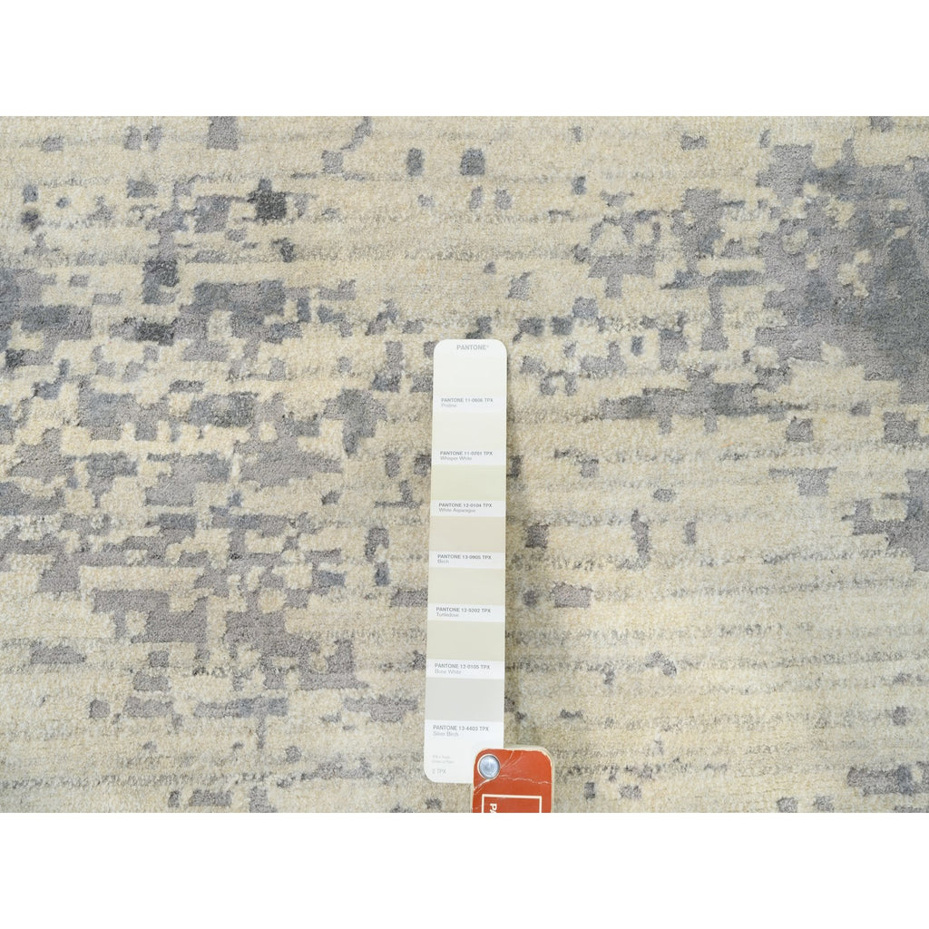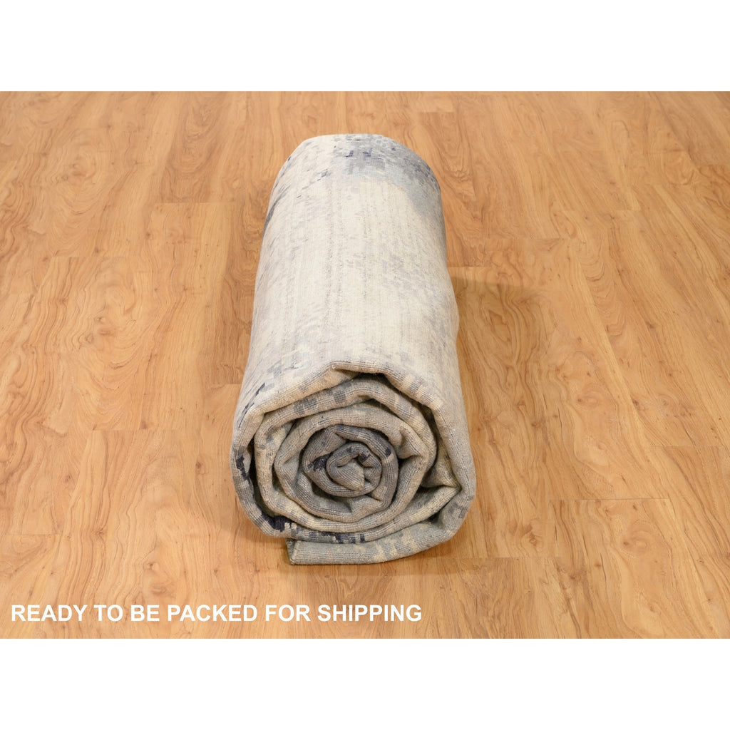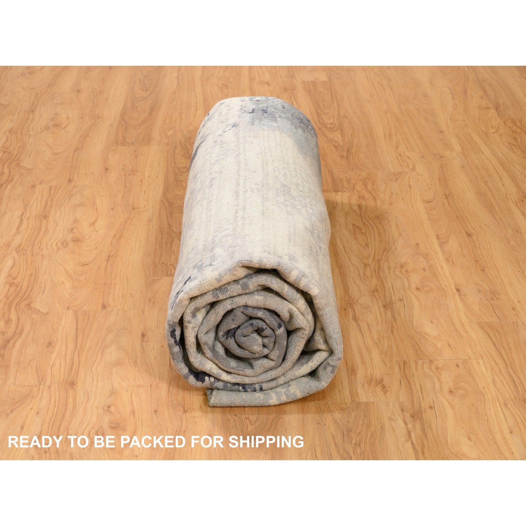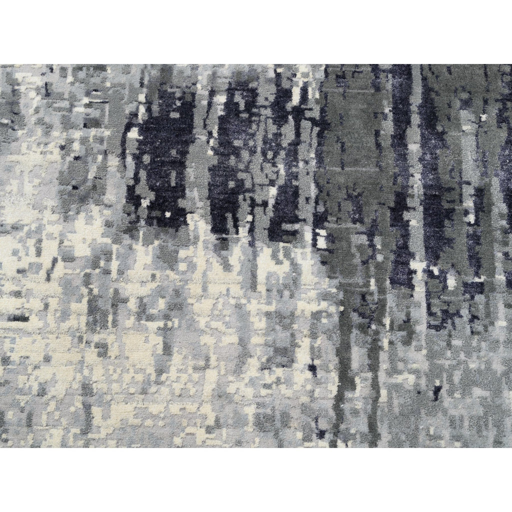 12'x12' Charcoal Black With Gray Abstract Design Wool And Silk Hand Knotted Oriental Round Rug FWR372600